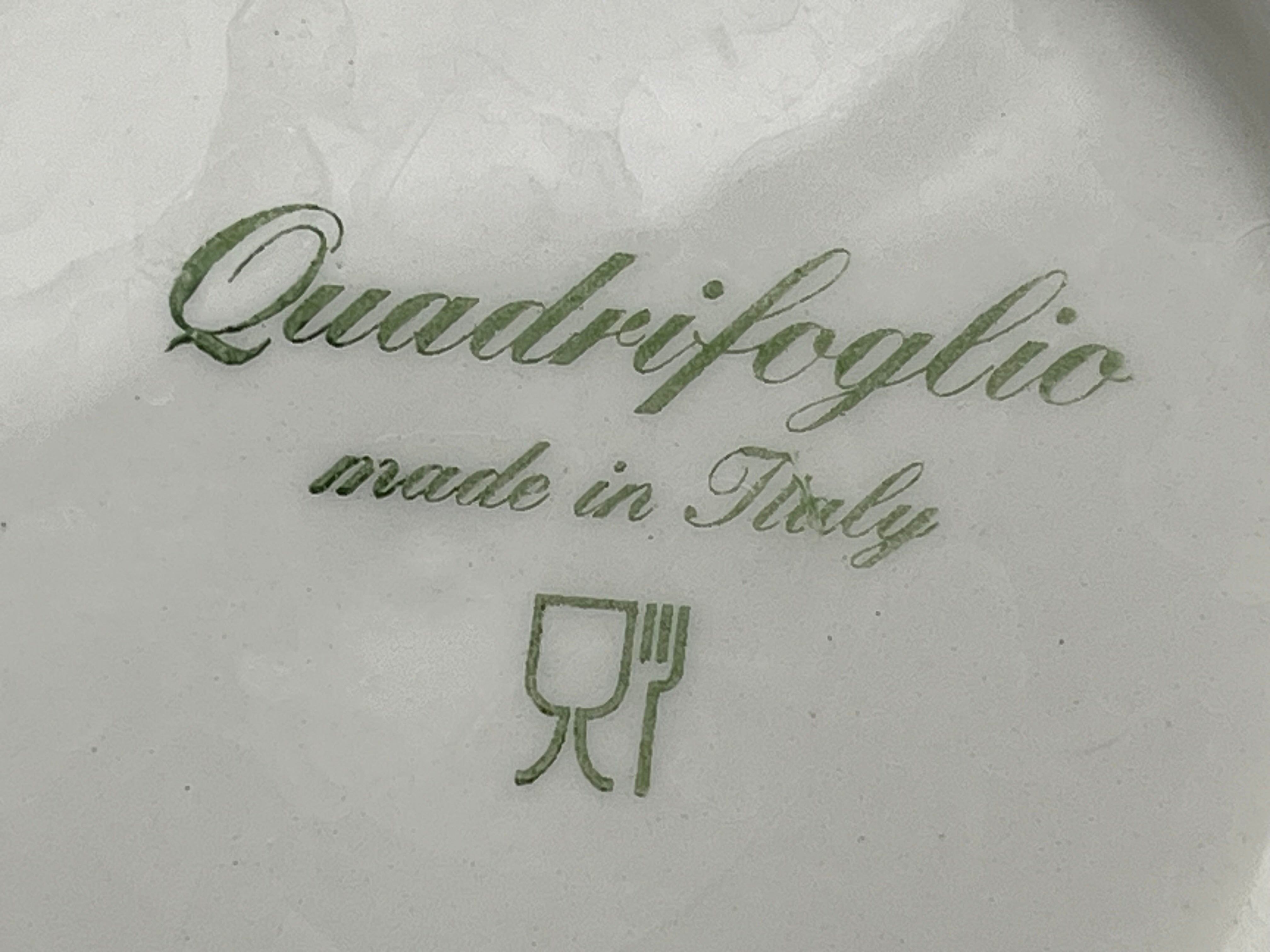 裏面には「Quadrifoglio made in Italy」のバックスタンプと食器マークがあり、イタリア製の正規品であることが確認できます。カフェ風の食卓演出や、撮影用スタイリング、店舗ディスプレイにも相性の良いデザインです。