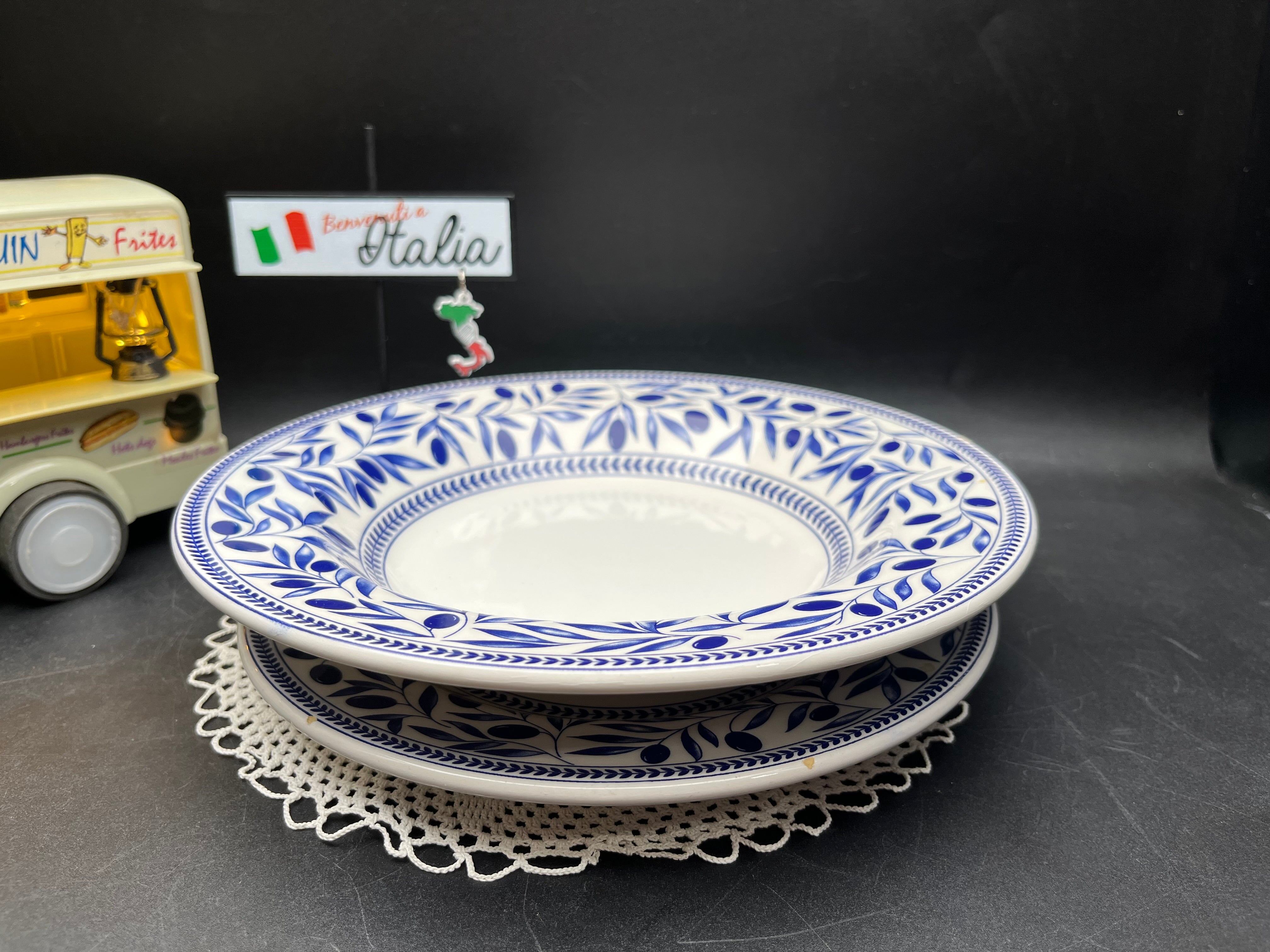 白磁に深いブルーで描かれたオリーブリーフと実のデザインは、地中海らしい爽やかさと上品さを兼ね備えており、テーブルを一気に華やかに演出してくれます。パスタ・メイン料理・ワンプレート・前菜・デザートまで幅広く使えるサイズ感で、日常使いにも非常に実用的です。