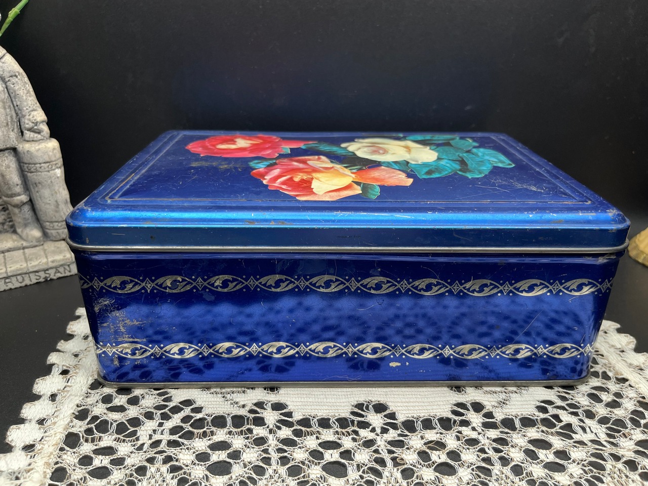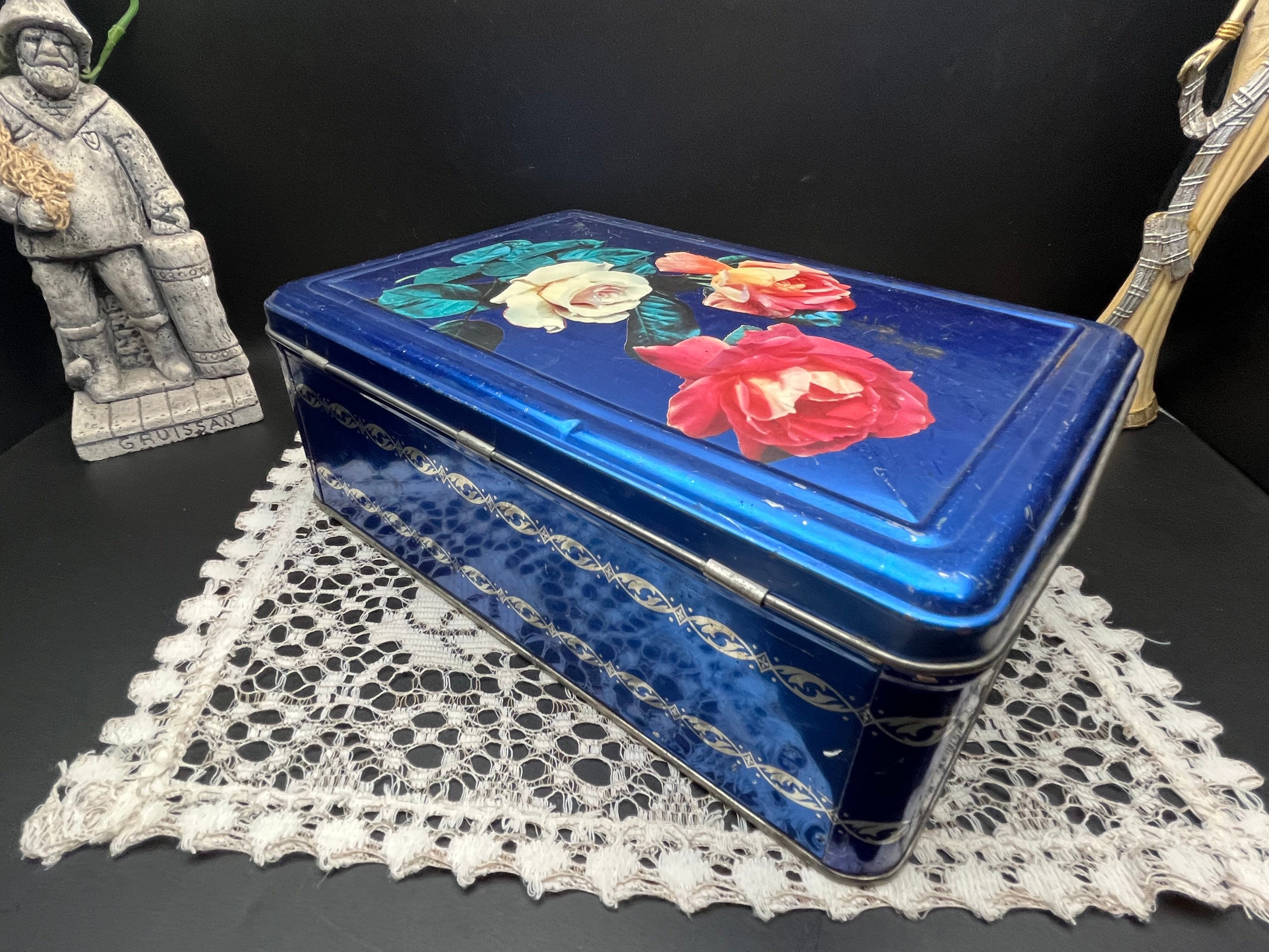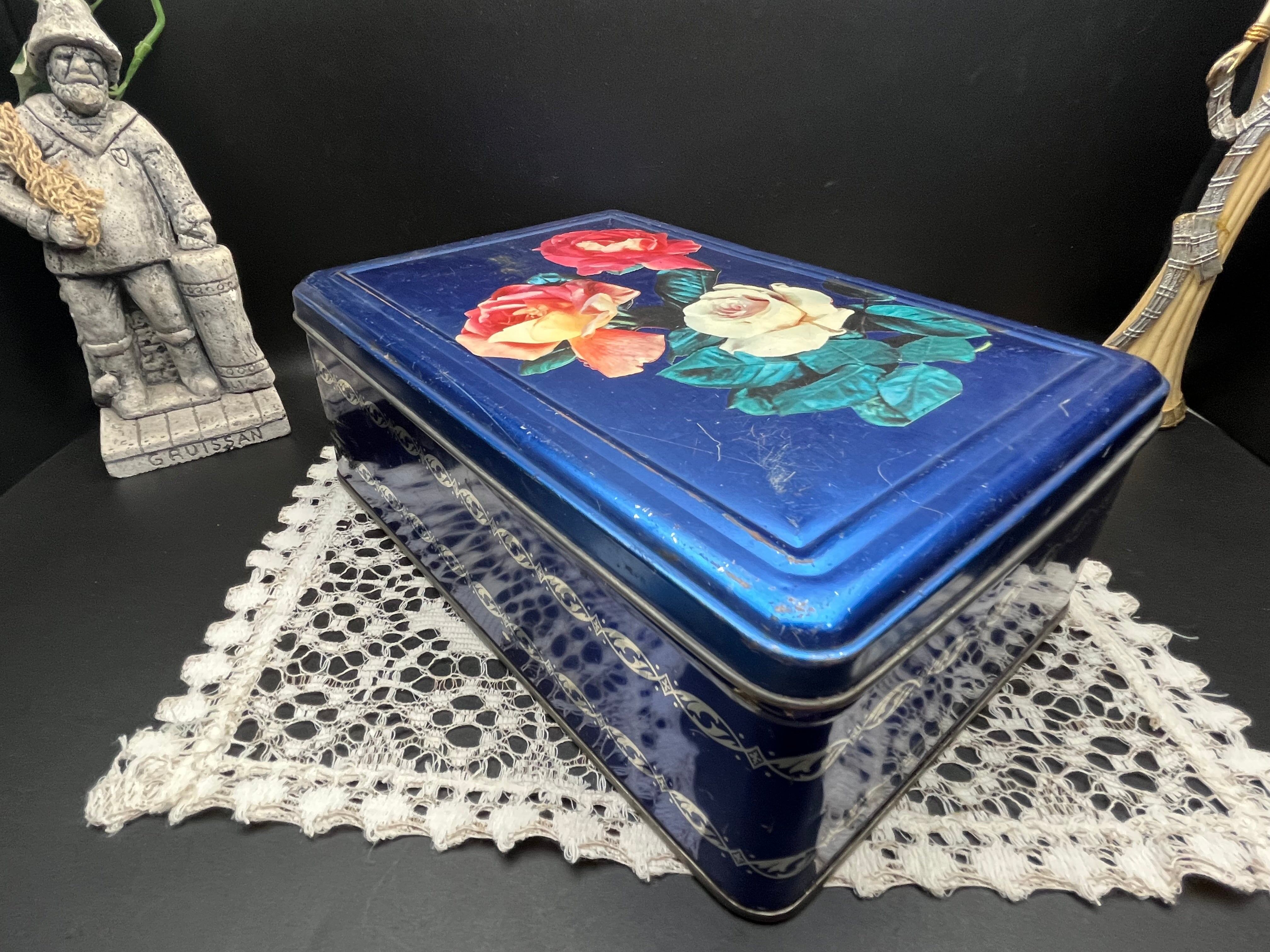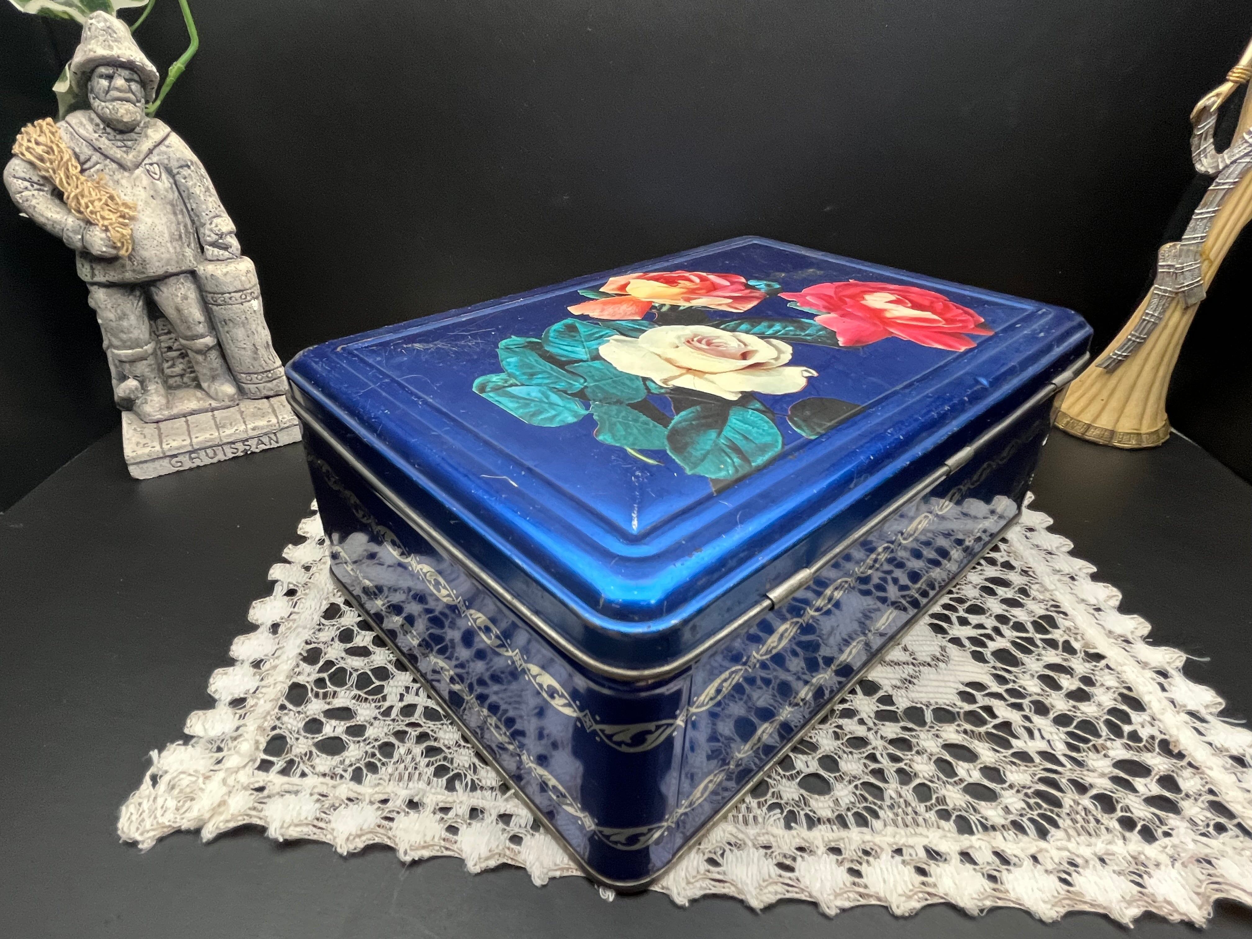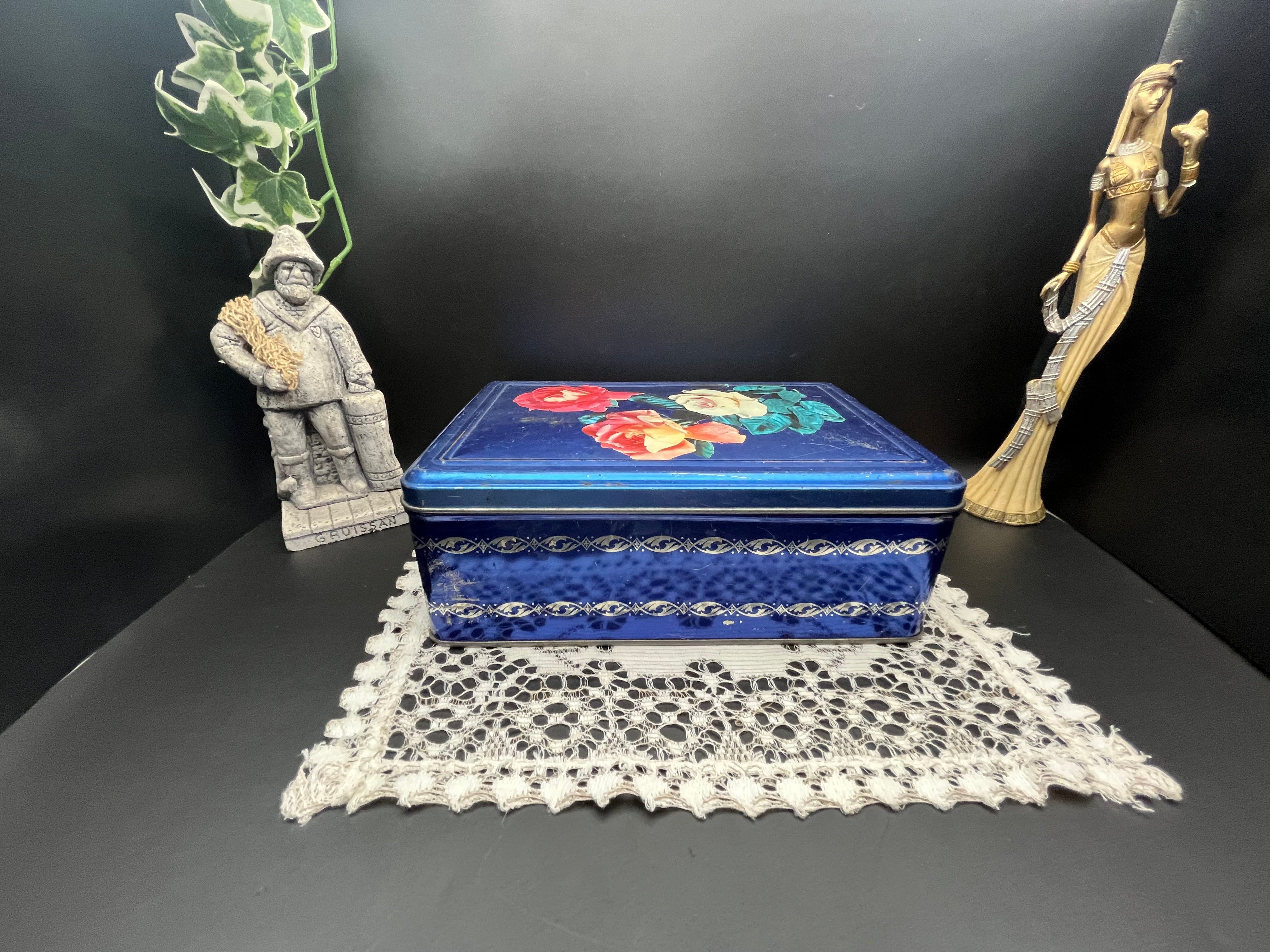 フランスアンティーク缶|ブルーローズティンボックス