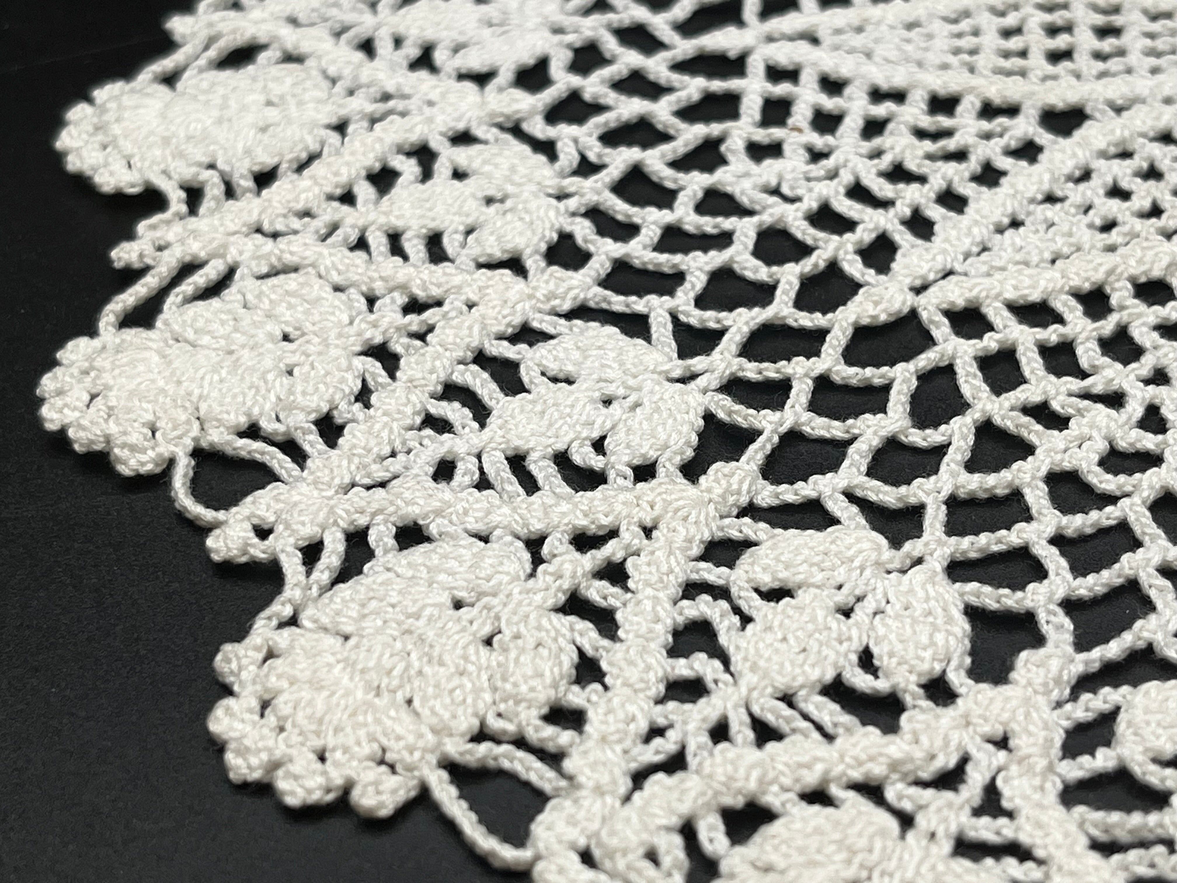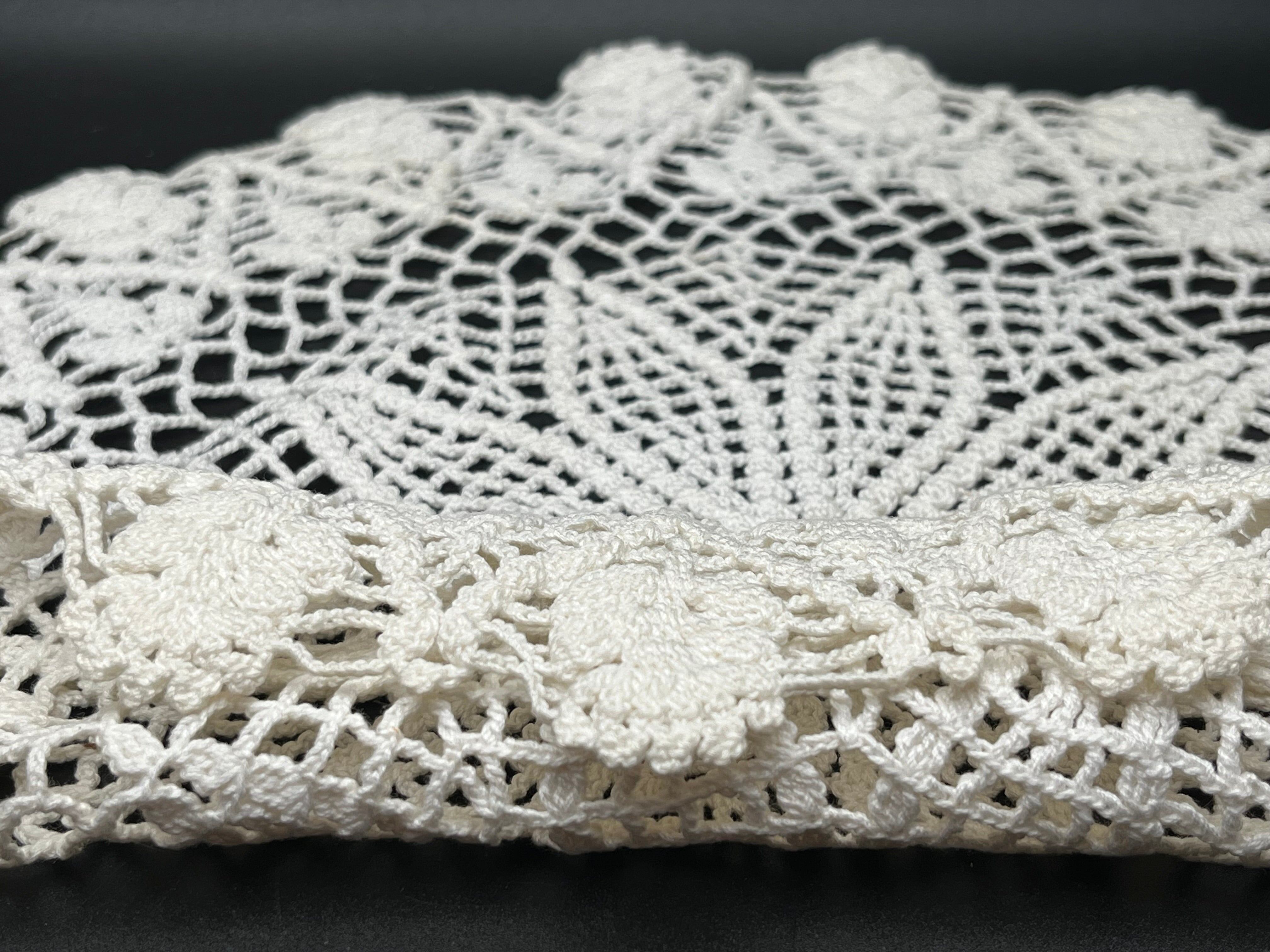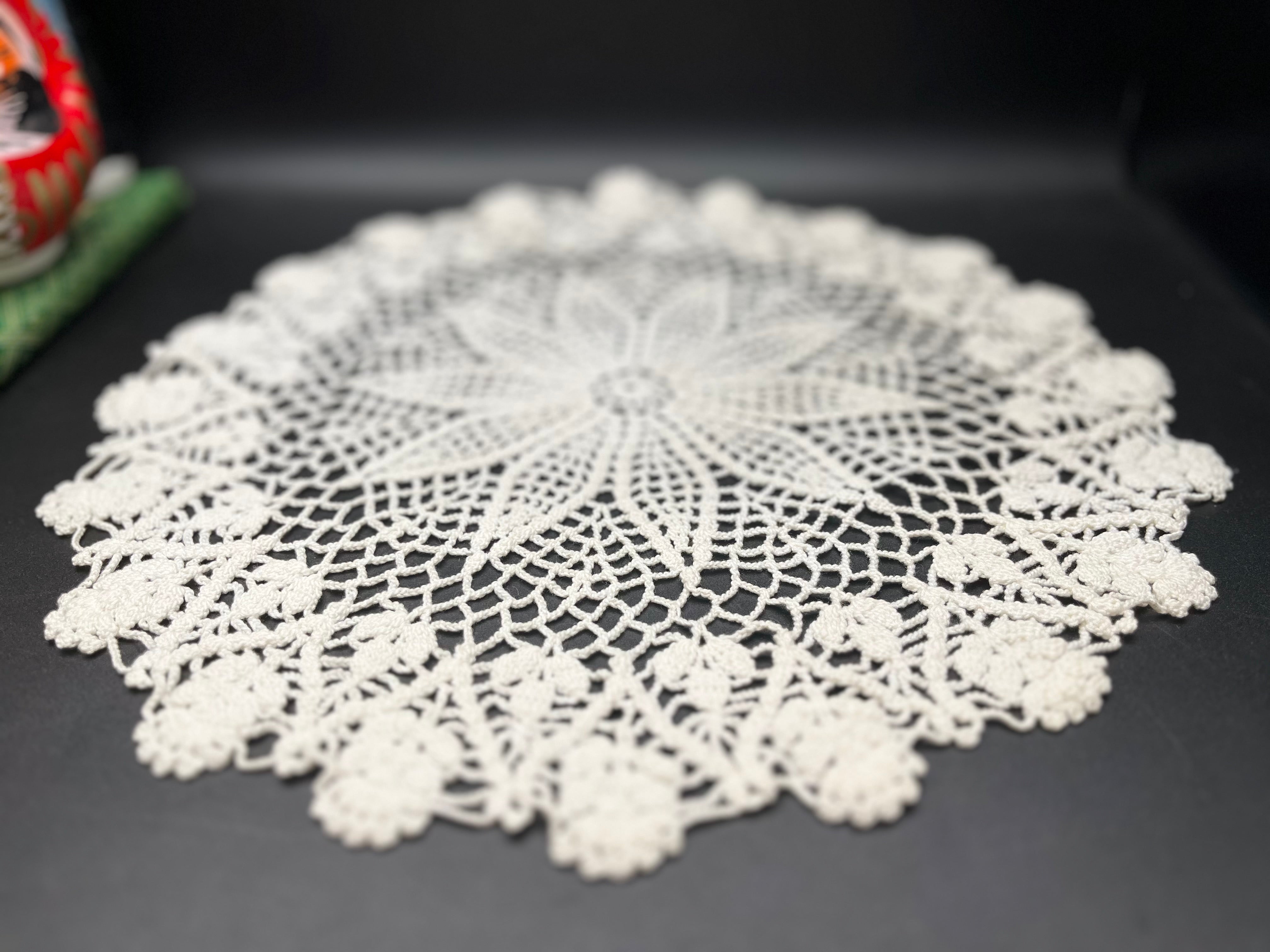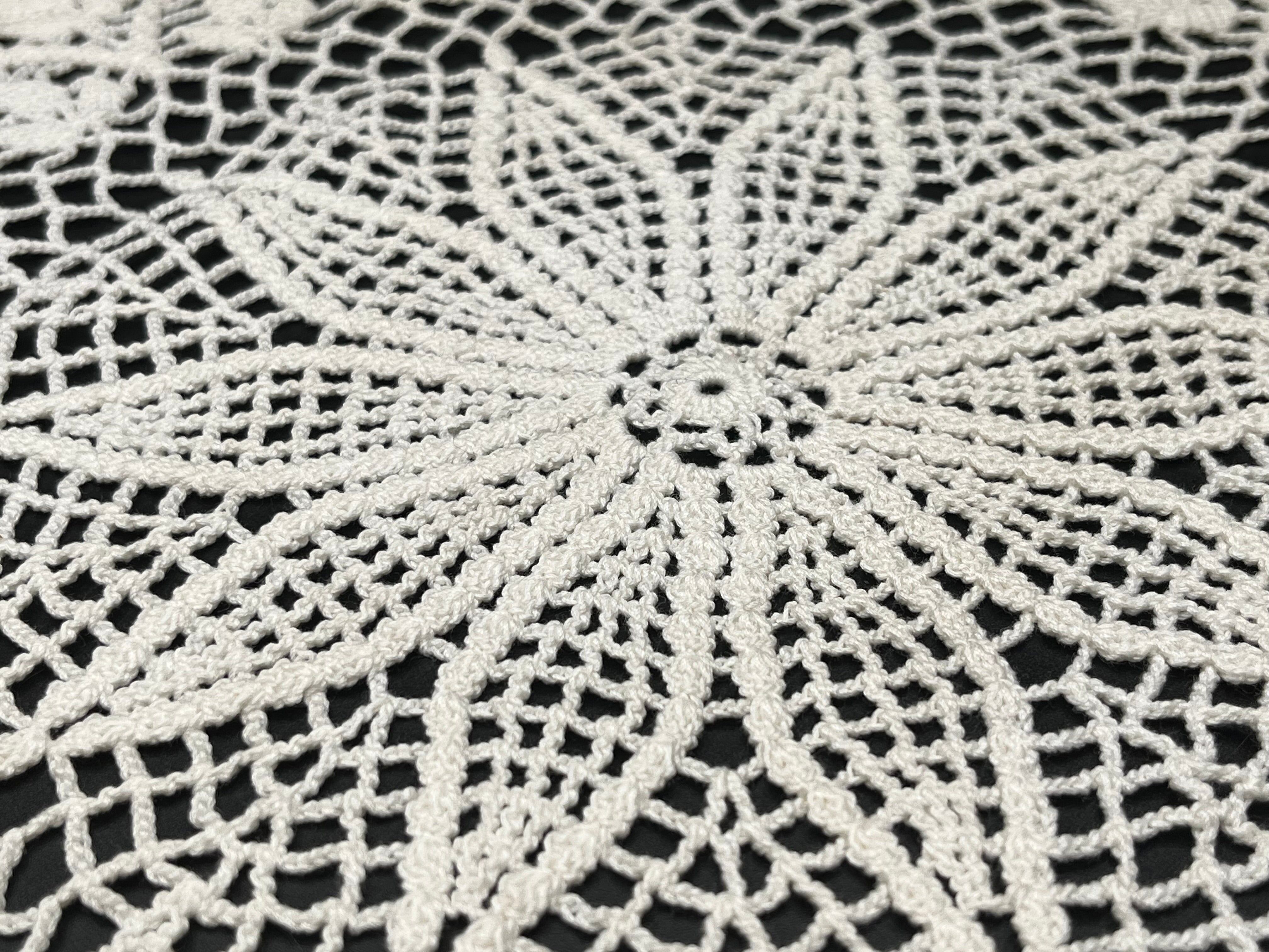 美しい手編みのクロッシェレースドイリーです。 パイナップル編みの伝統的なデザインが特徴です。