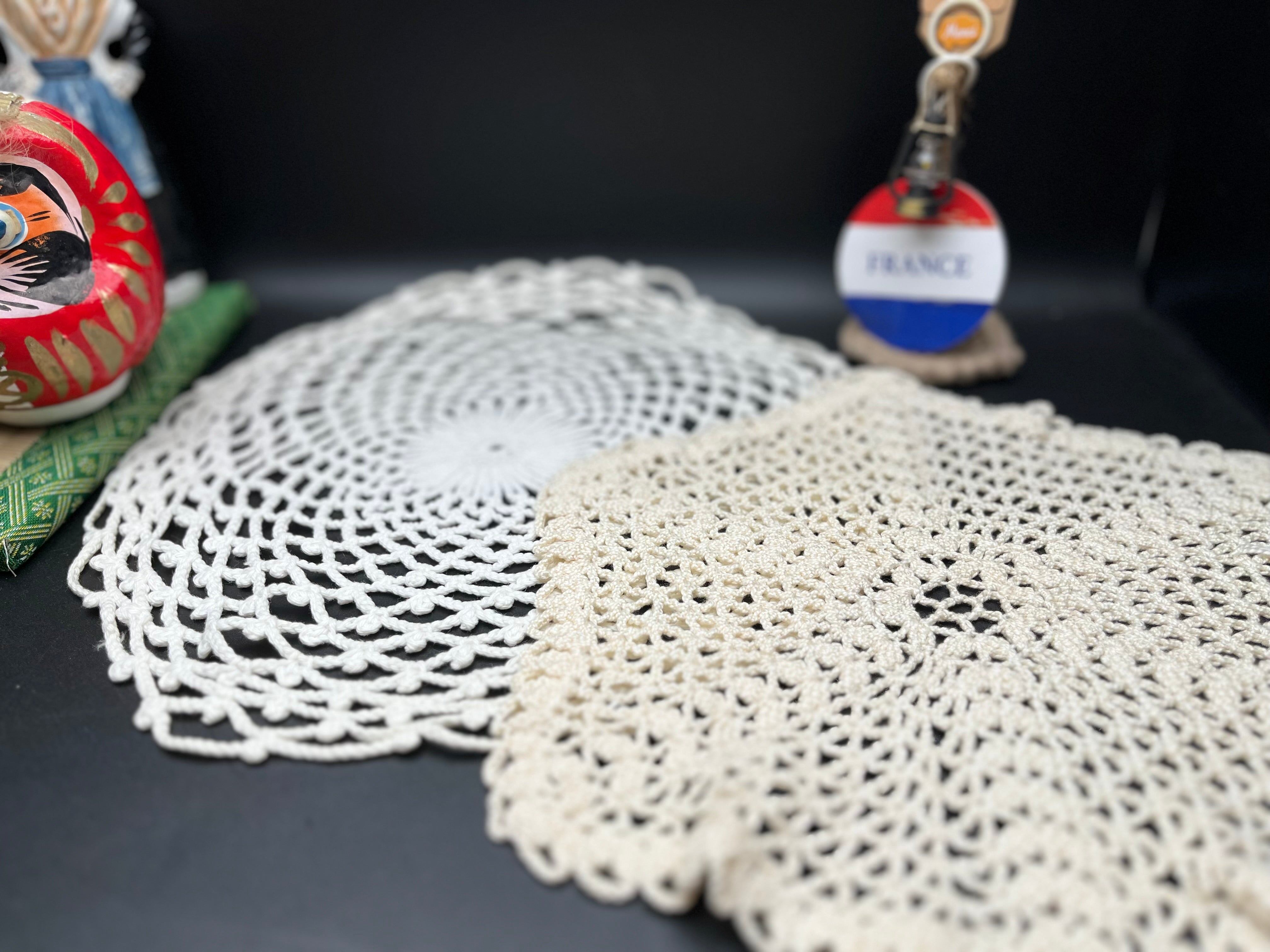 フランスアンティーク 手編みクロシェレース2枚セット