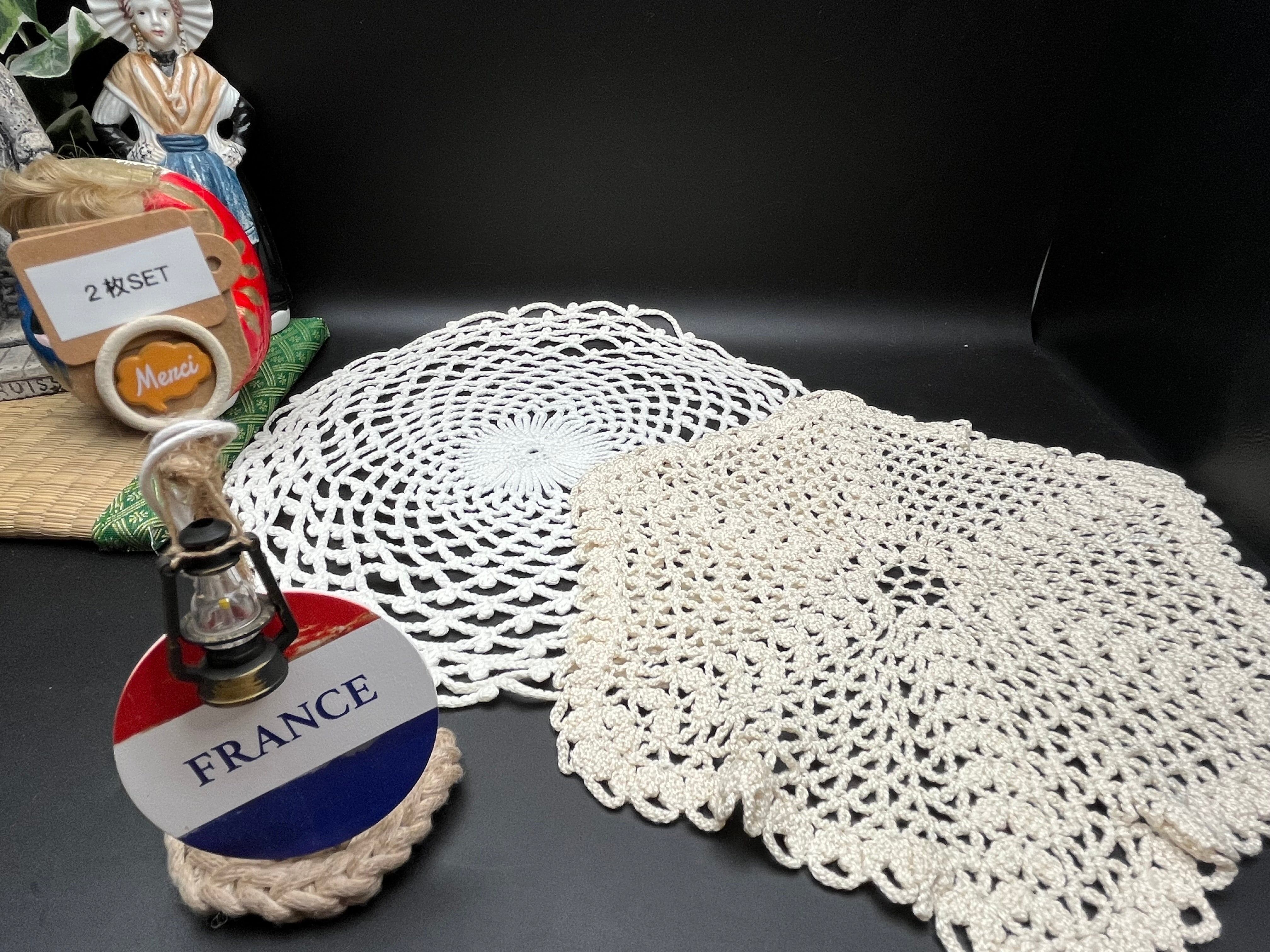 フランスらしい軽やかなネット編みが特徴のラウンドドイリー。