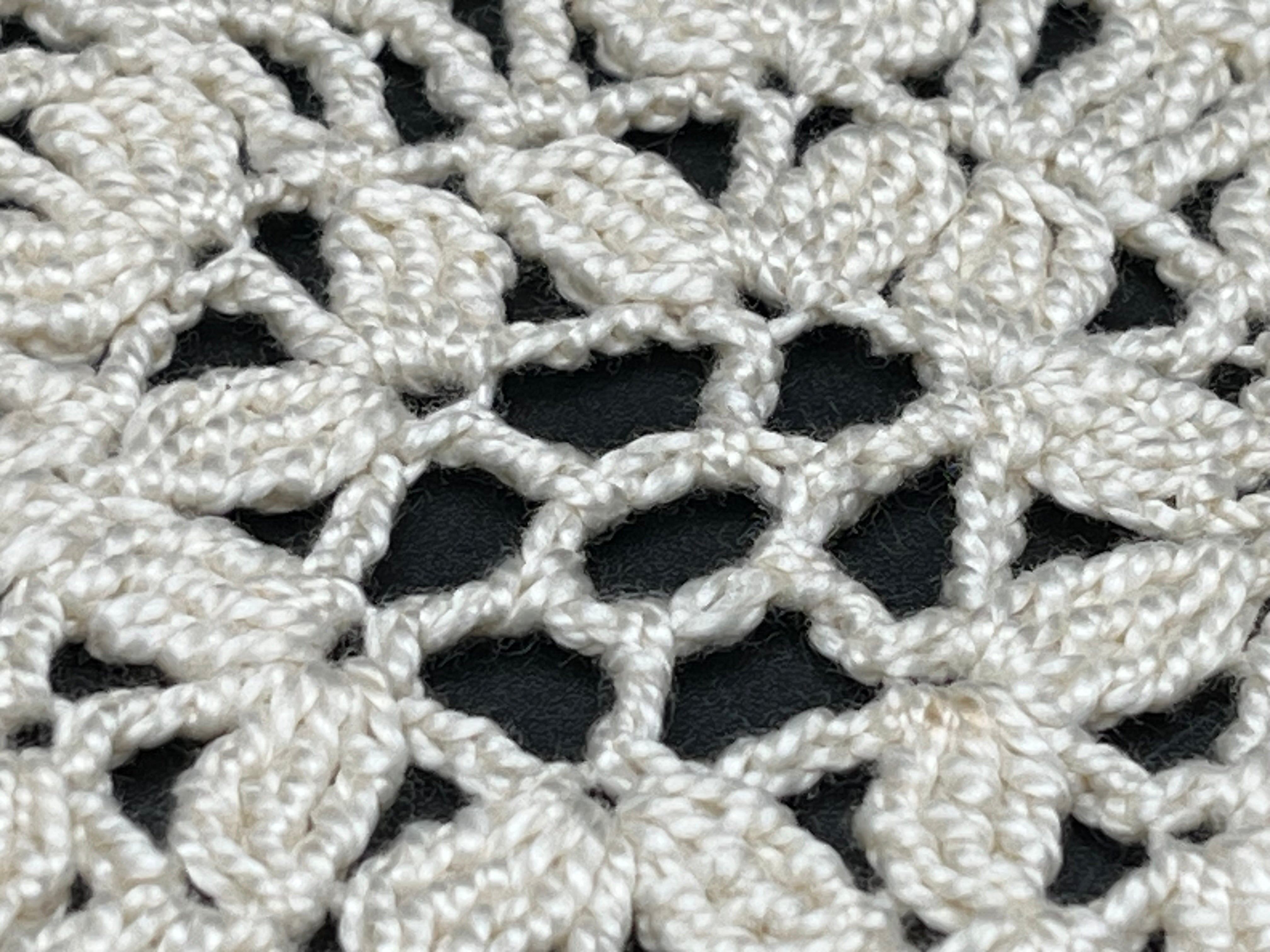 ホワイトの大判レースは、太めのコットン糸で網目が大きく、
