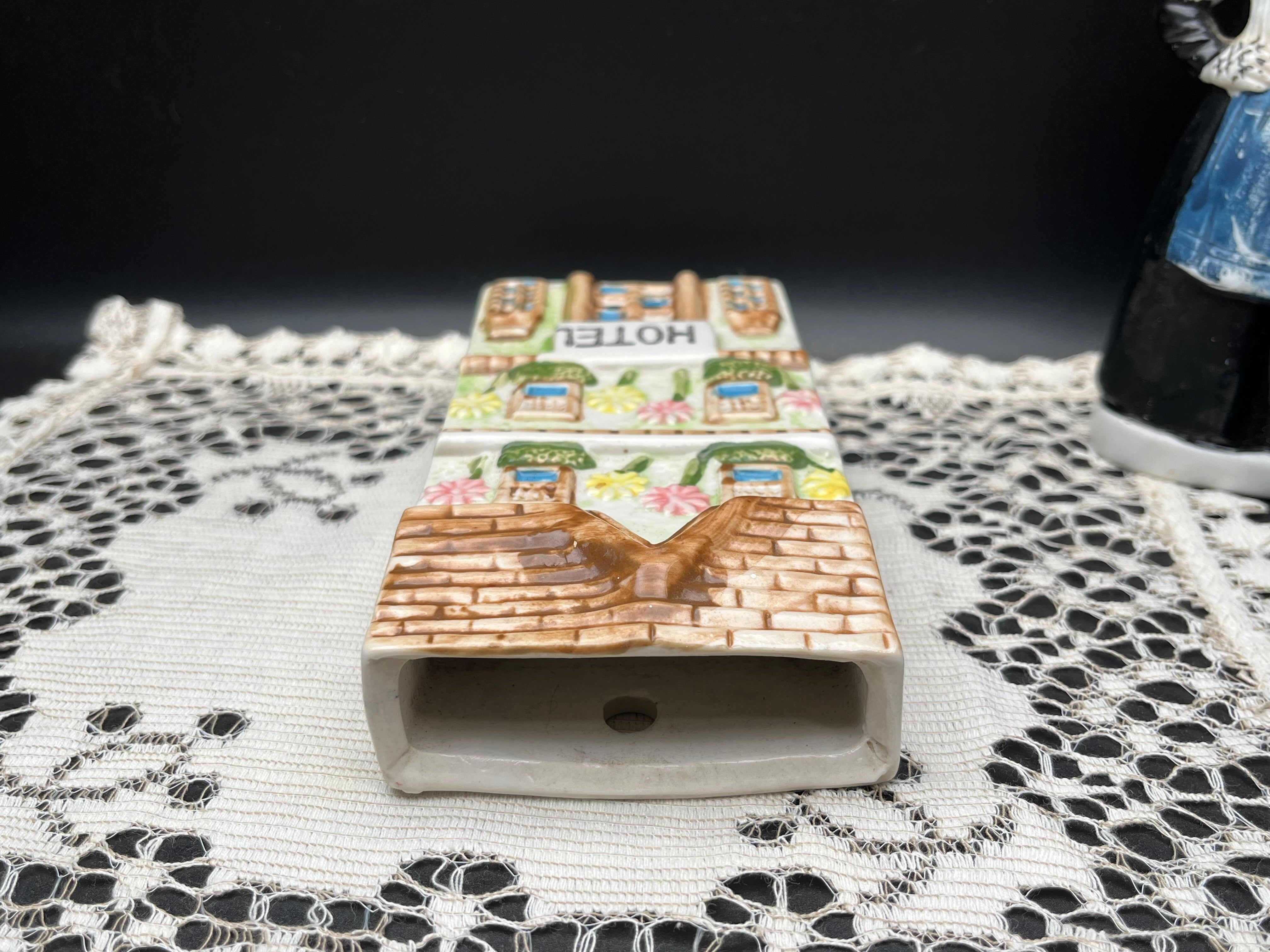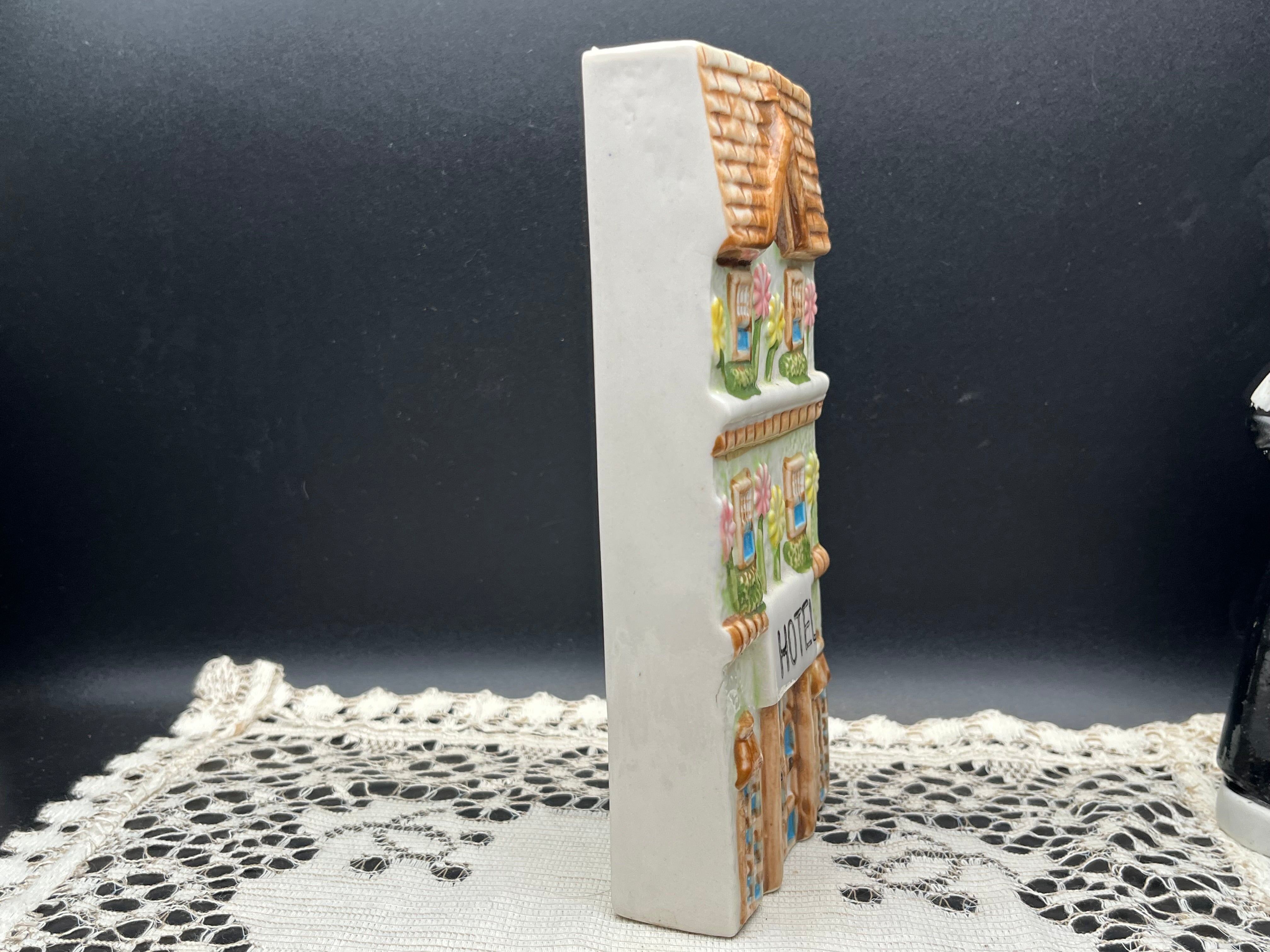 西洋のホテル建物をモチーフにした、陶器製のアンティークオブジェです。