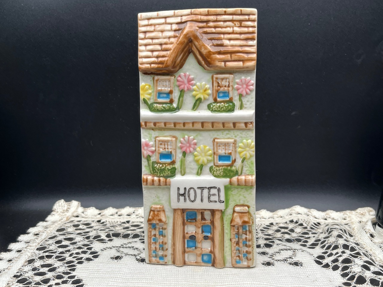 · デザイン:3階建てのホテルを模した立体造形、壁掛け穴あり