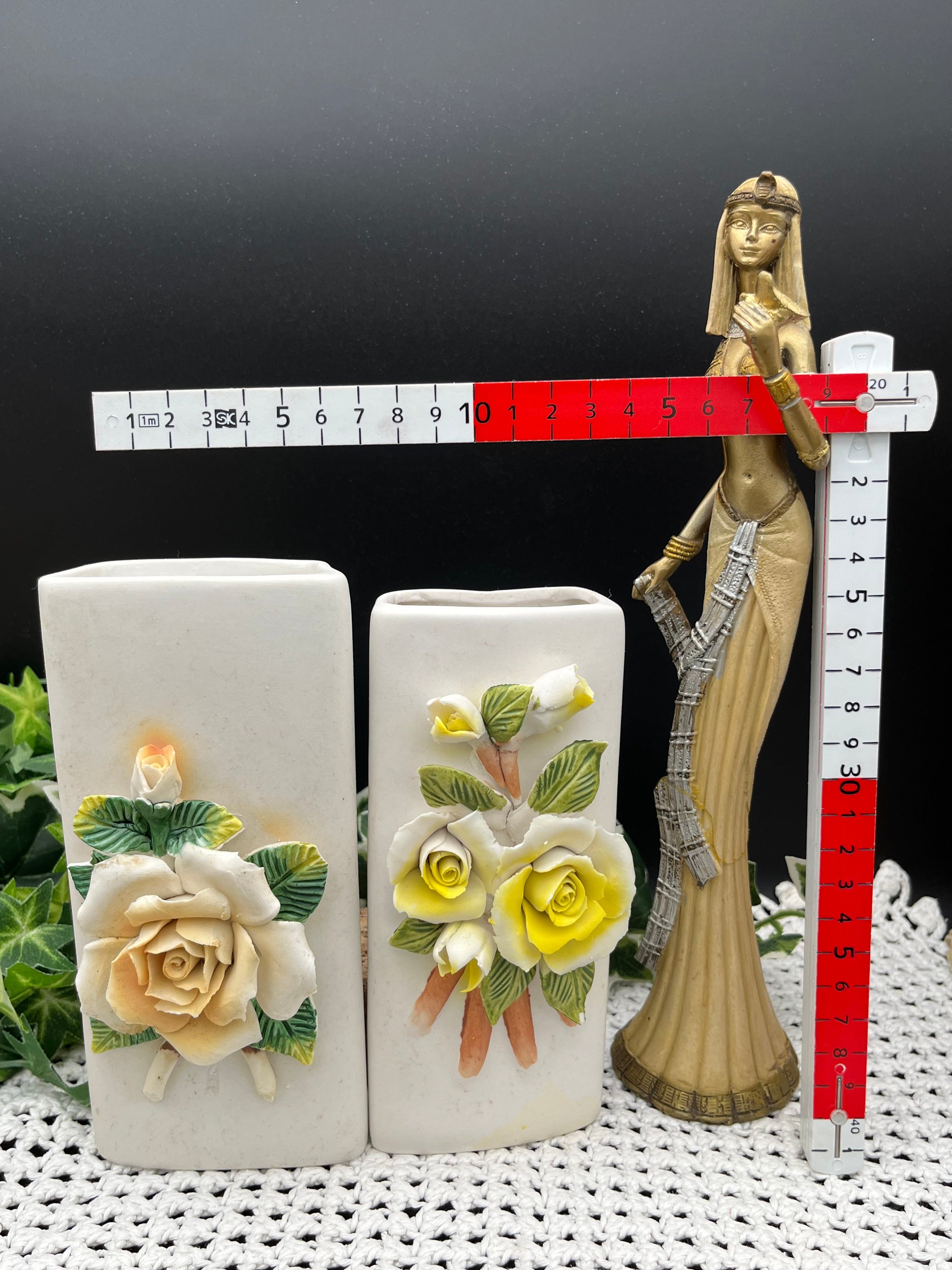 陶器製 薔薇レリーフ フラワーベース 2点セット