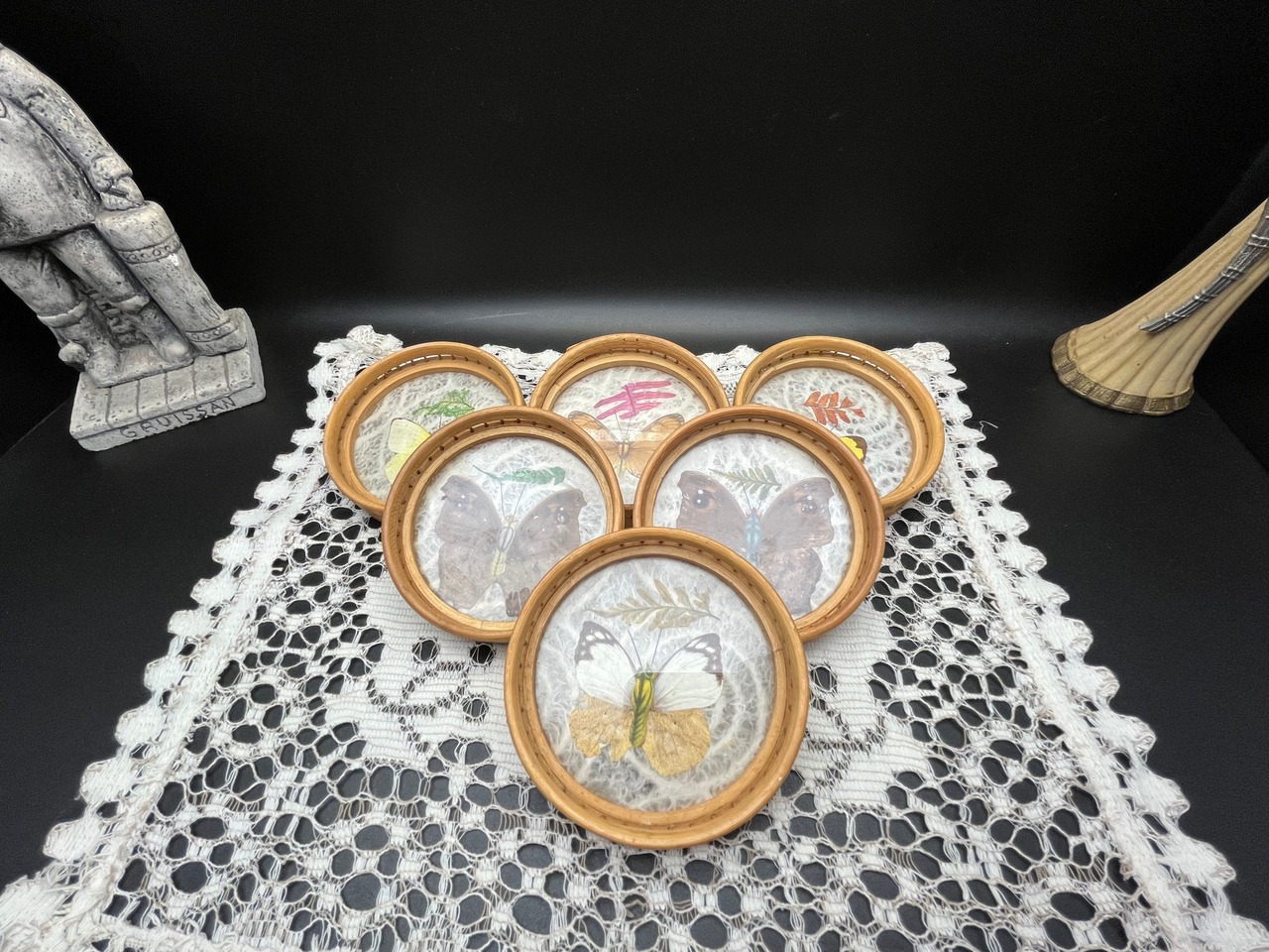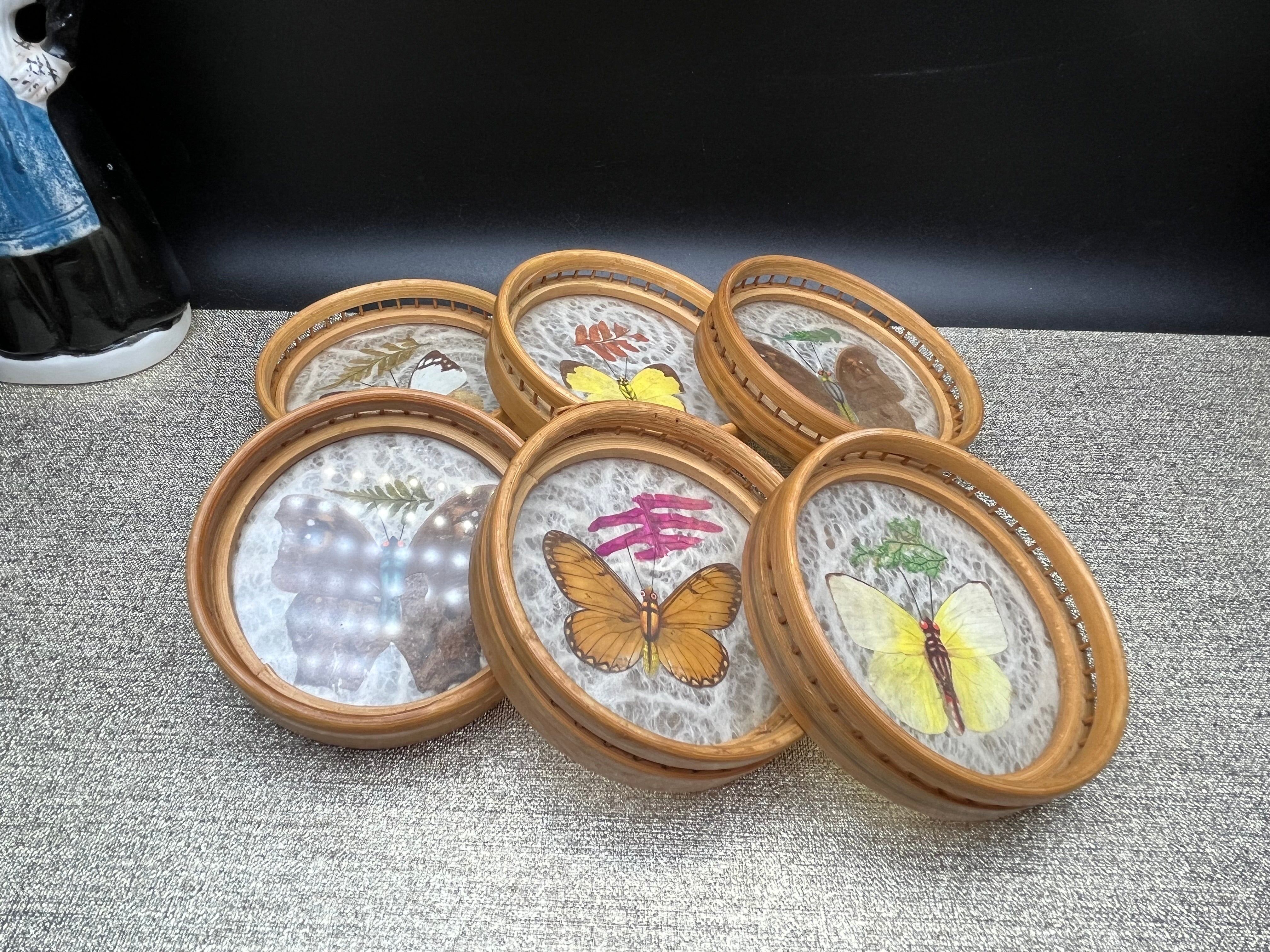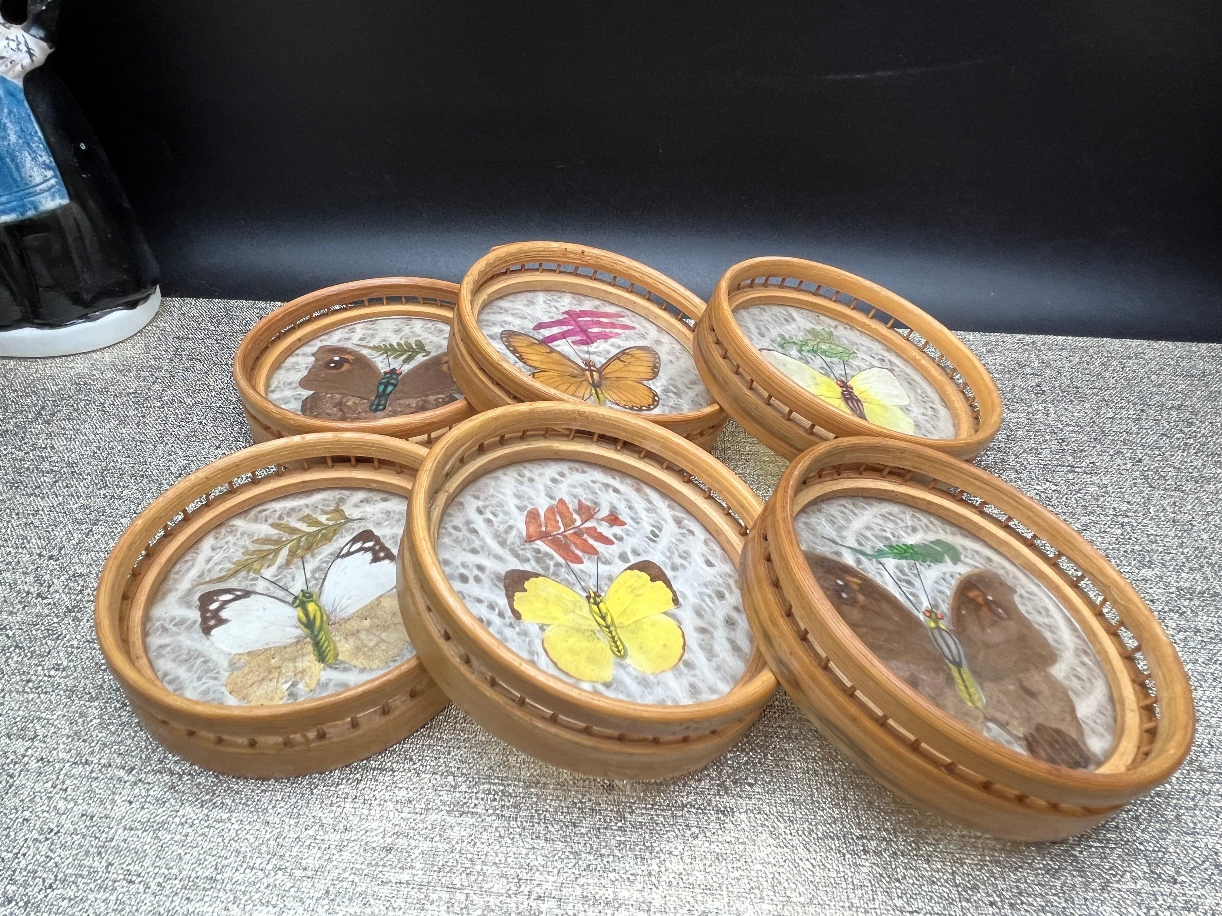 西洋アンティーク 蝶モチーフ竹製コースター 6枚セット