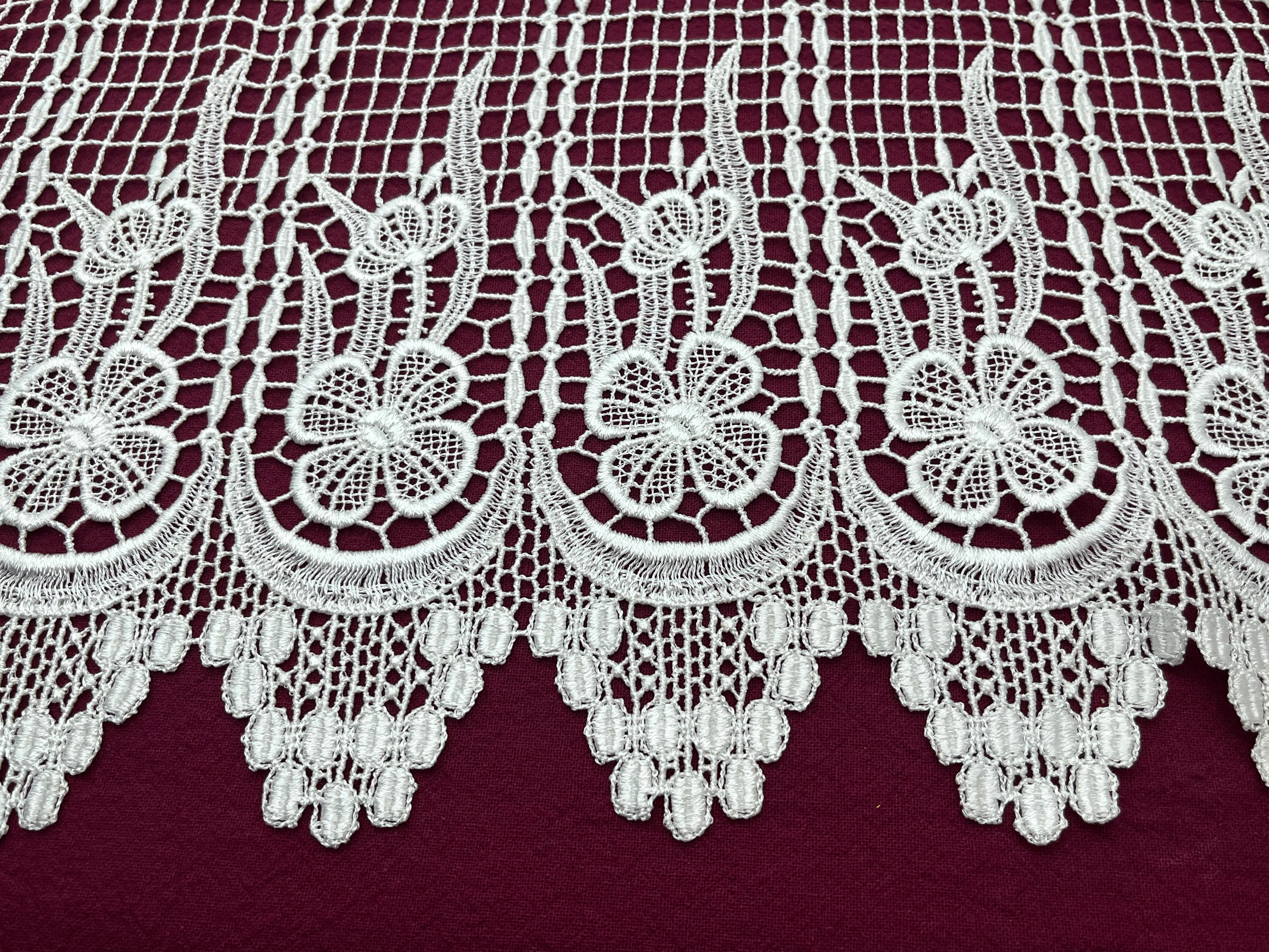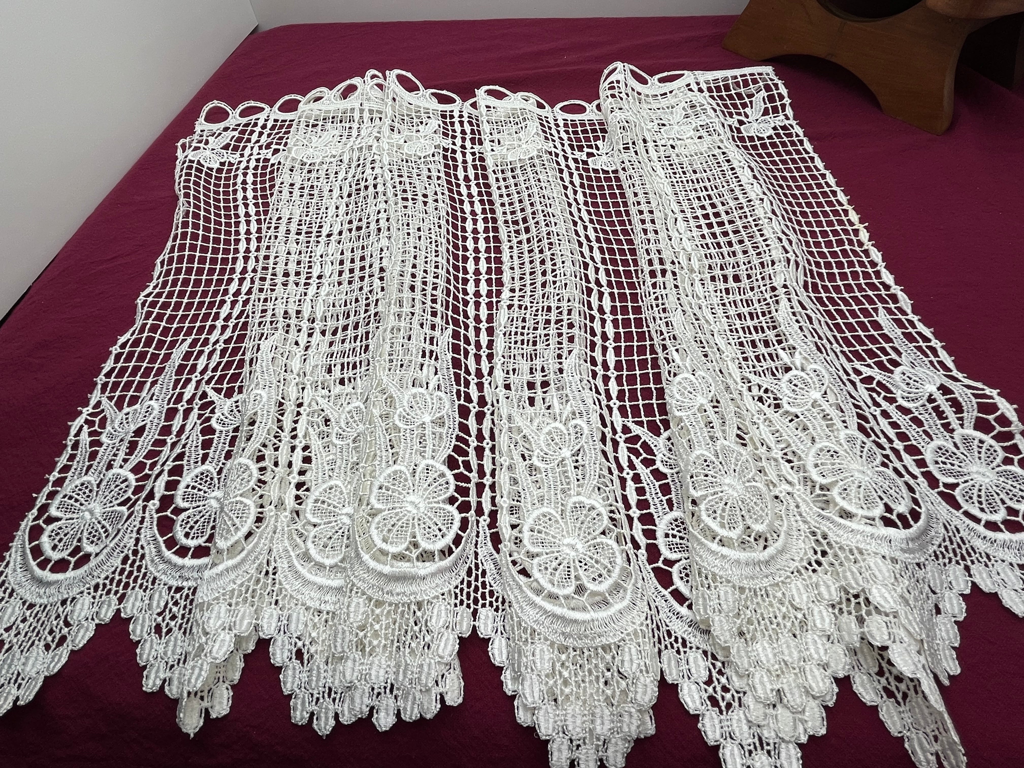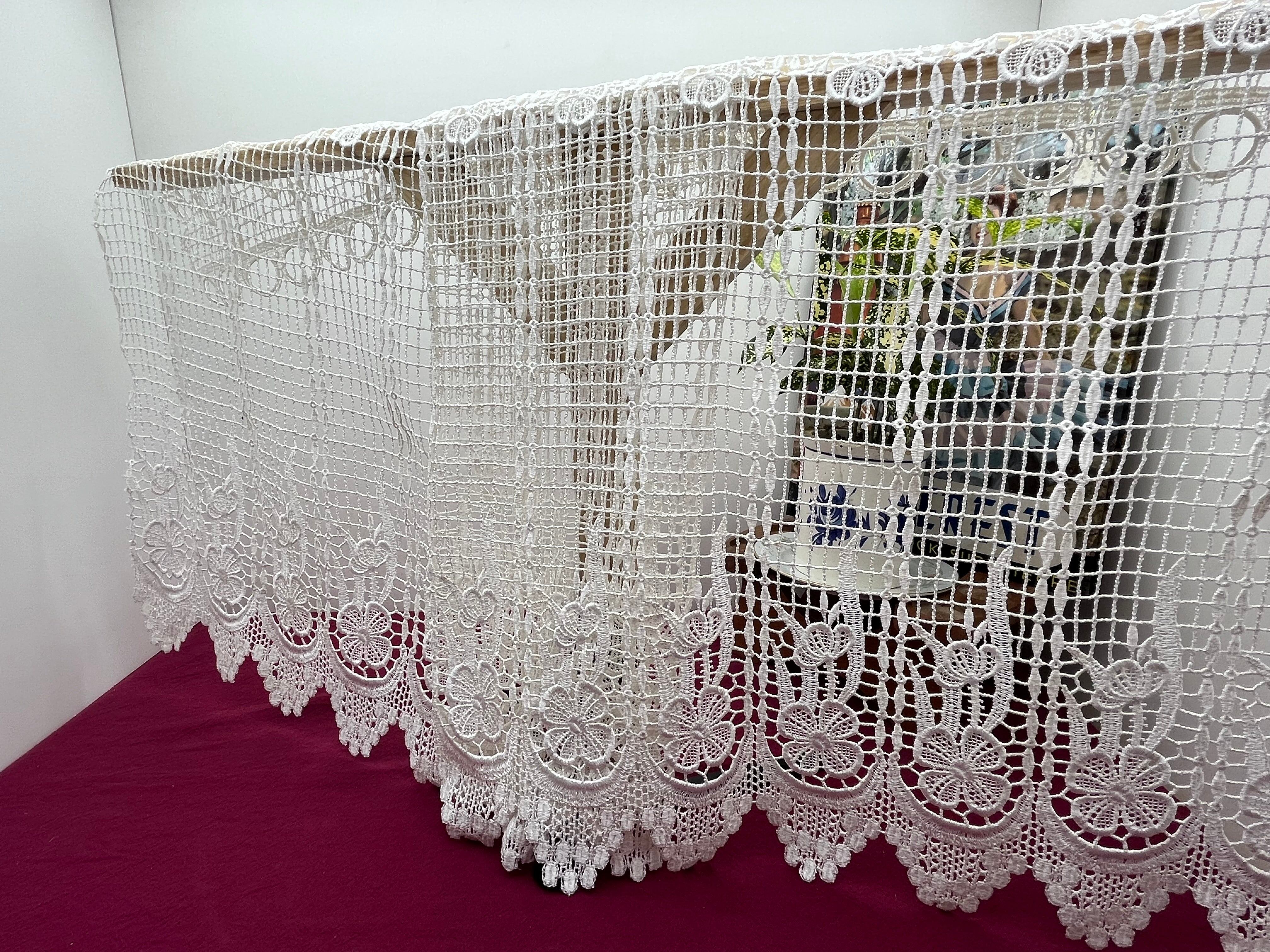 フランスアンティーク フィレレース 花柄刺繍 リネン風カフェカーテン