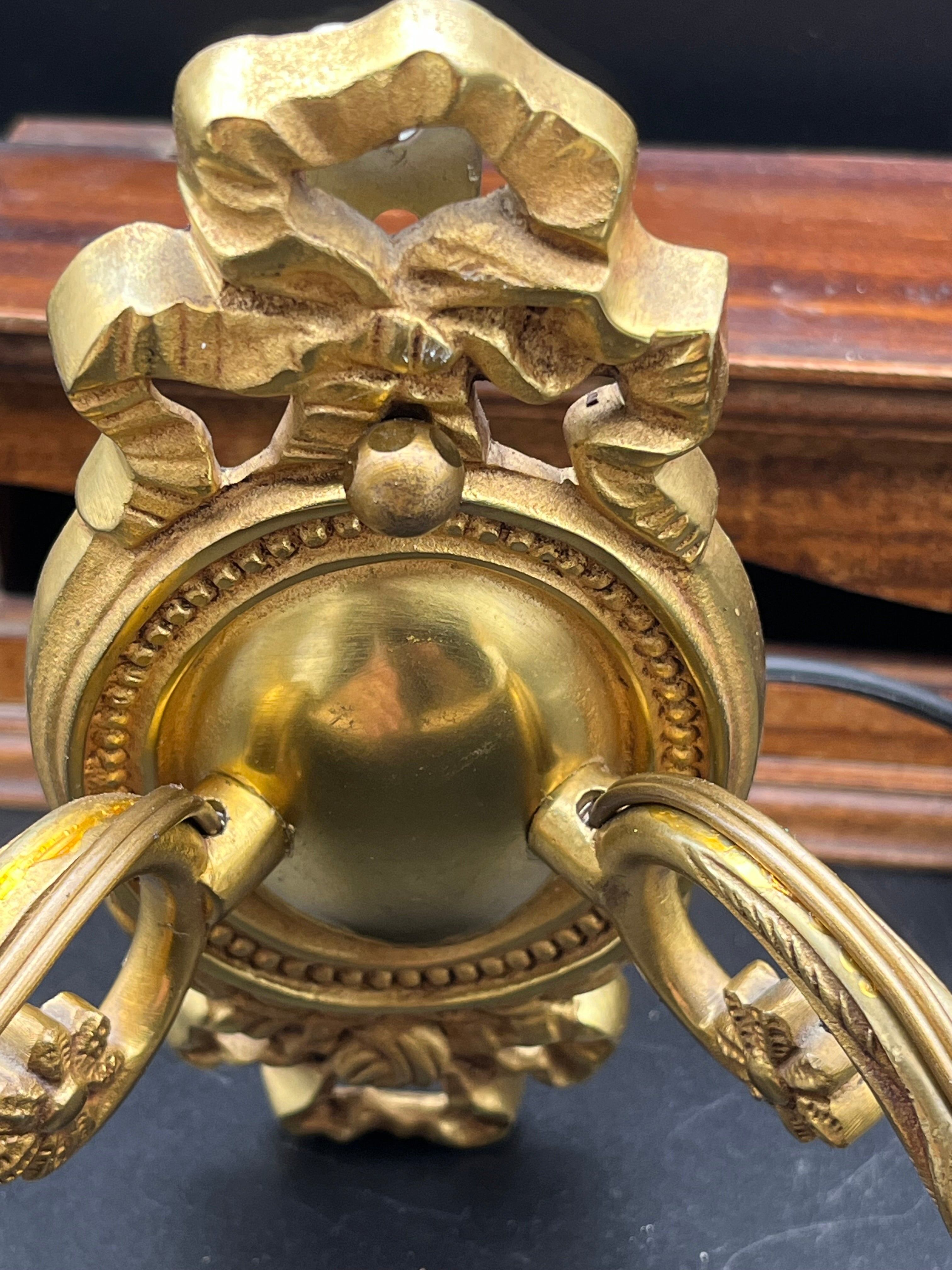 優雅な曲線とリボンモチーフが印象的な、真鍮製のアンティークウォールランプ(ブラケットライト)です。