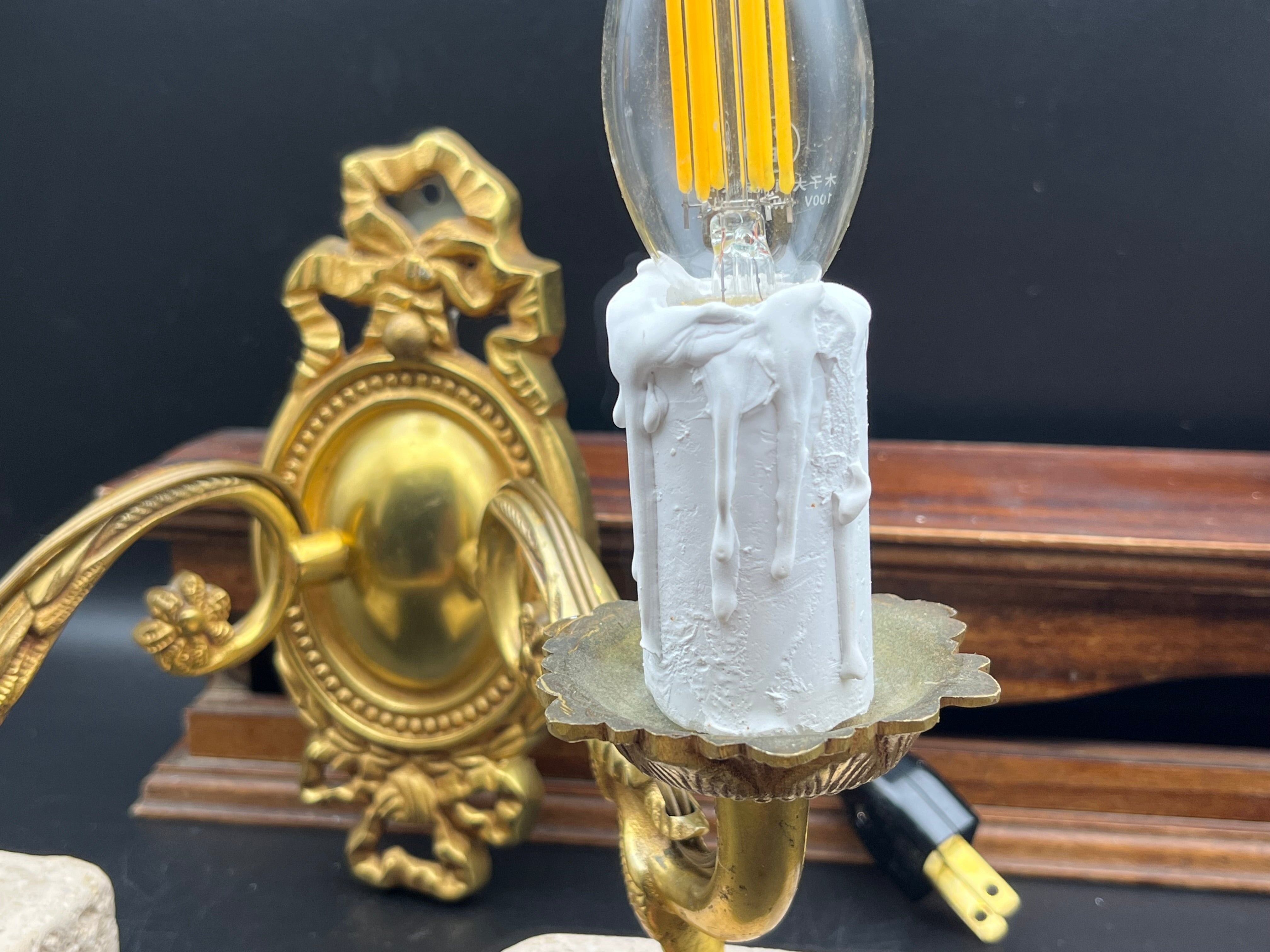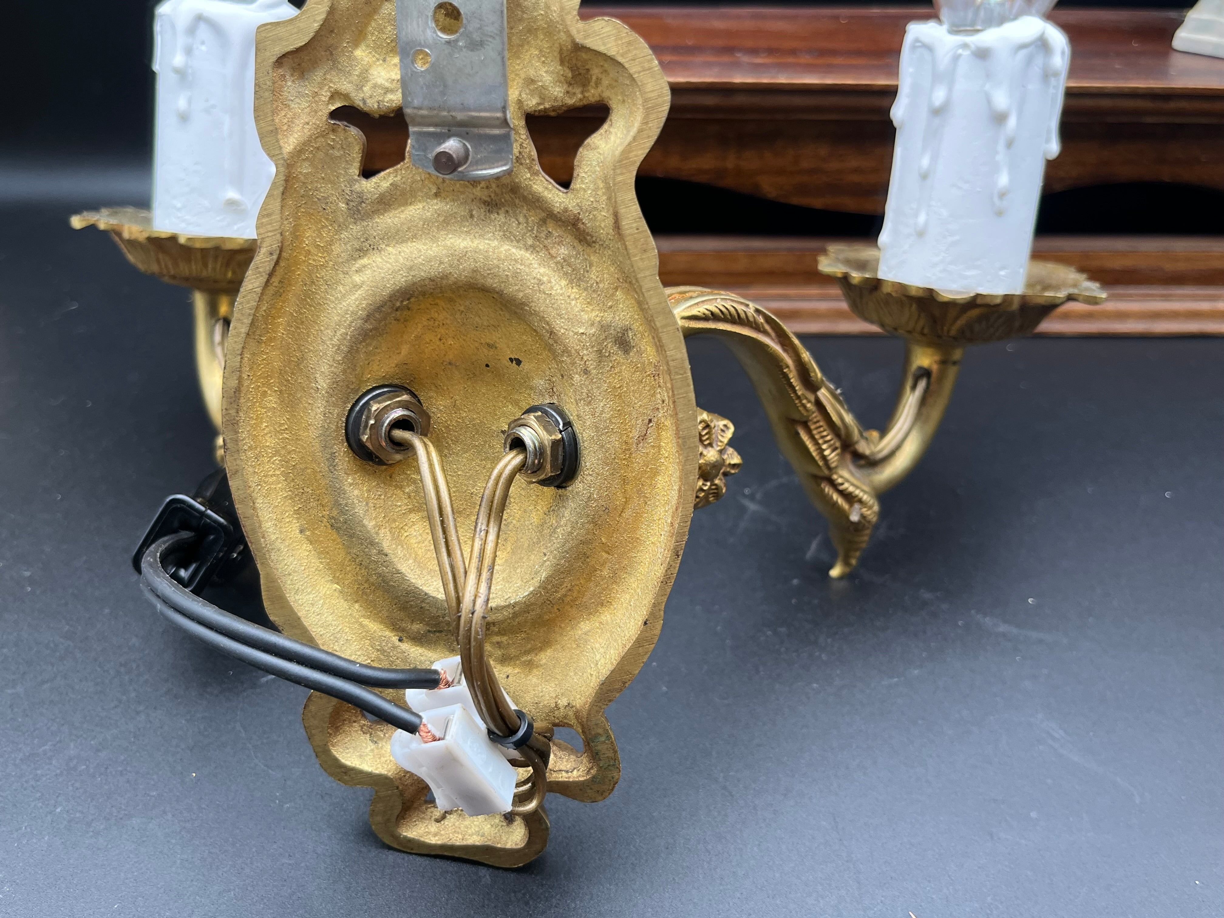 フランスアンティーク 真鍮製キャンドル装飾2灯ブラケットライト
