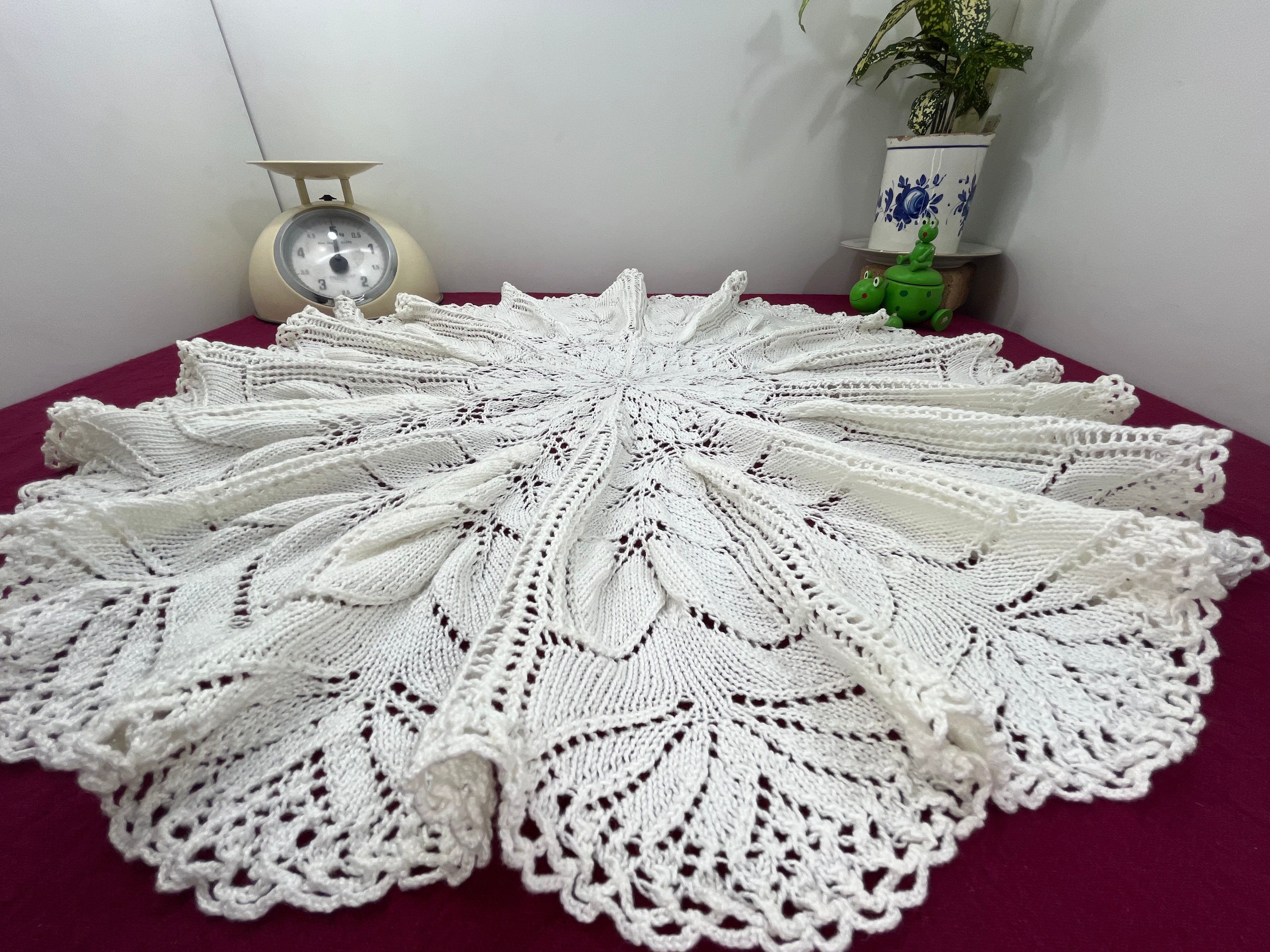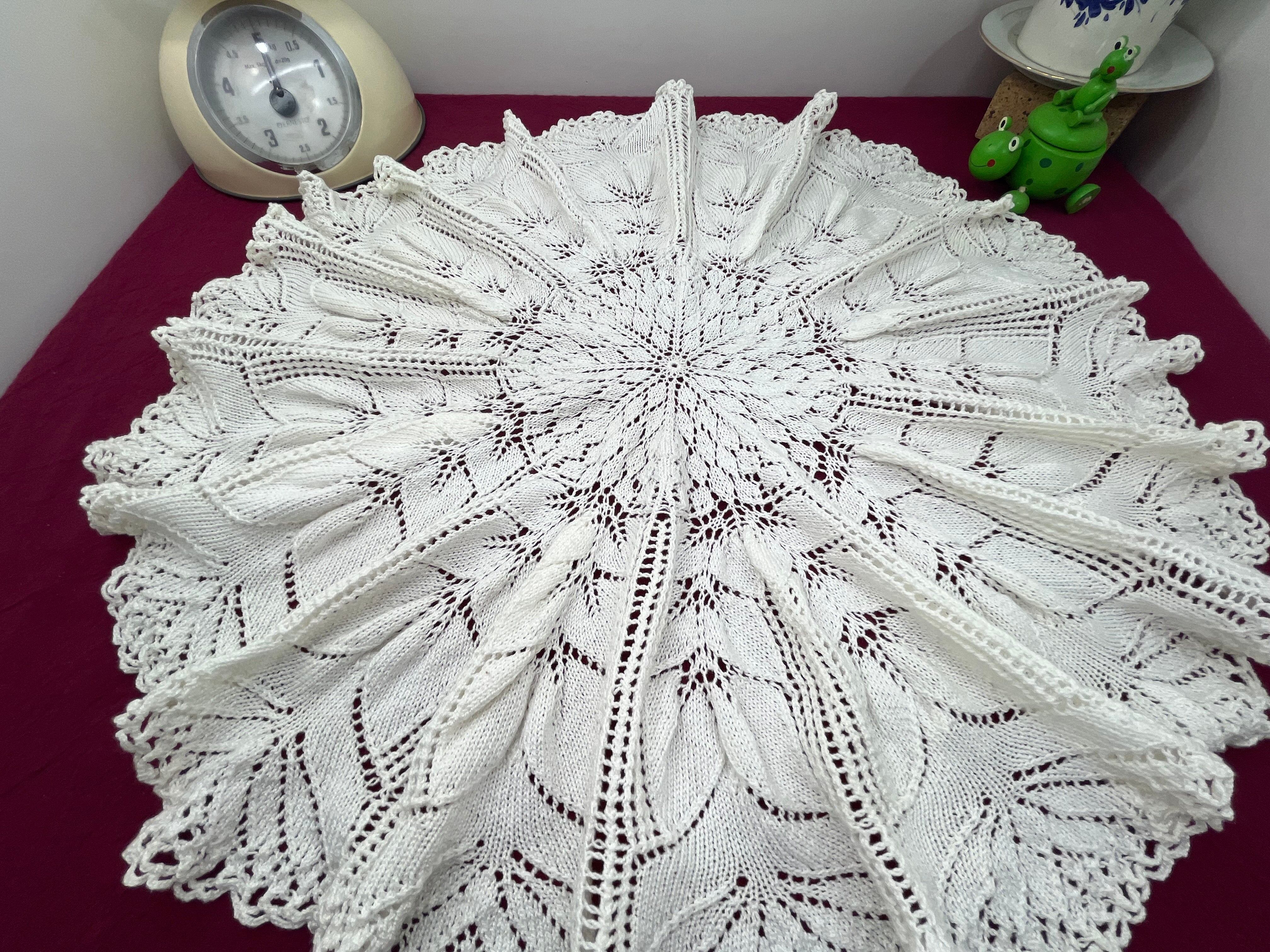 優雅な手編みアンティークレース 円形ドイリー