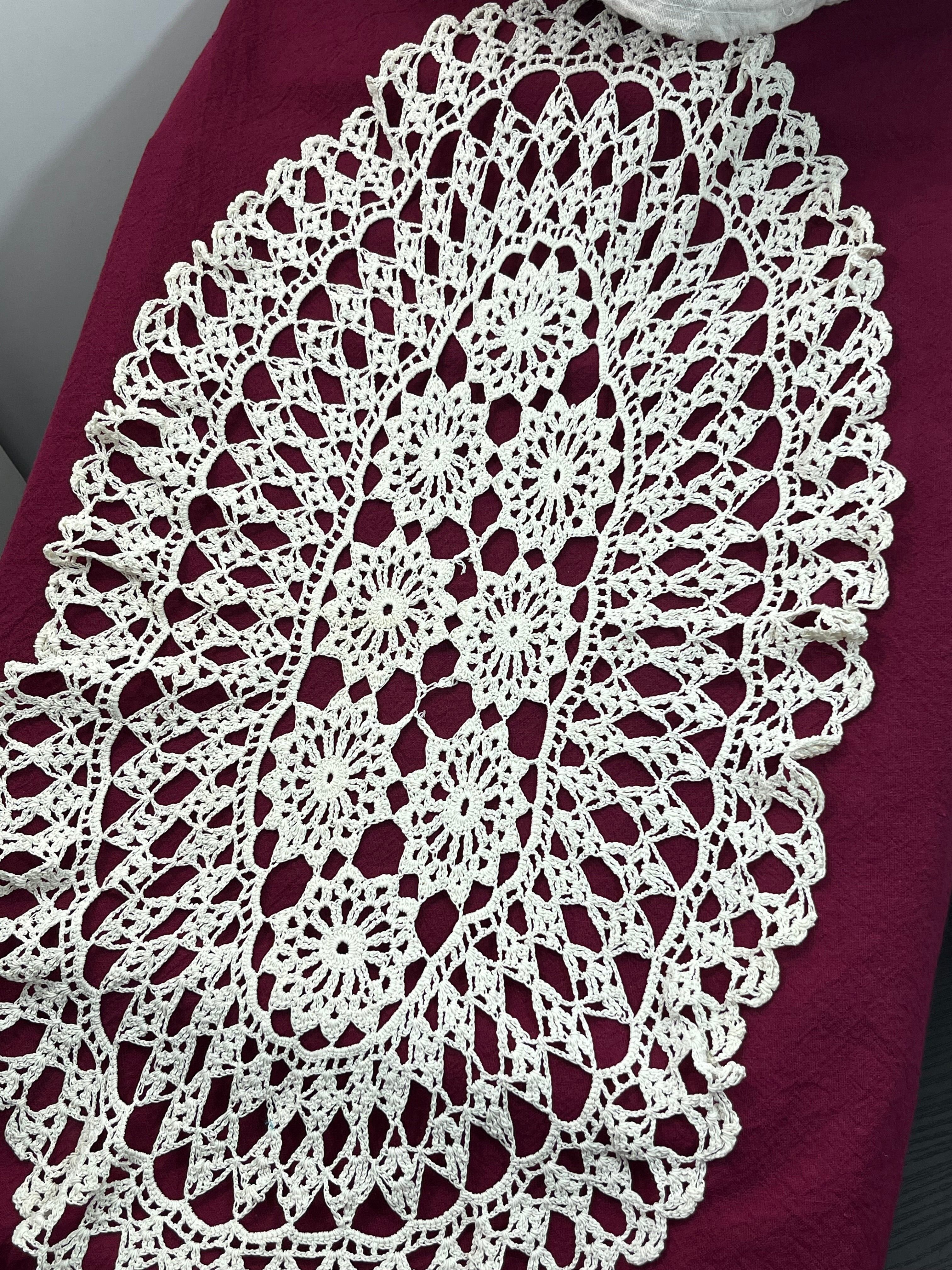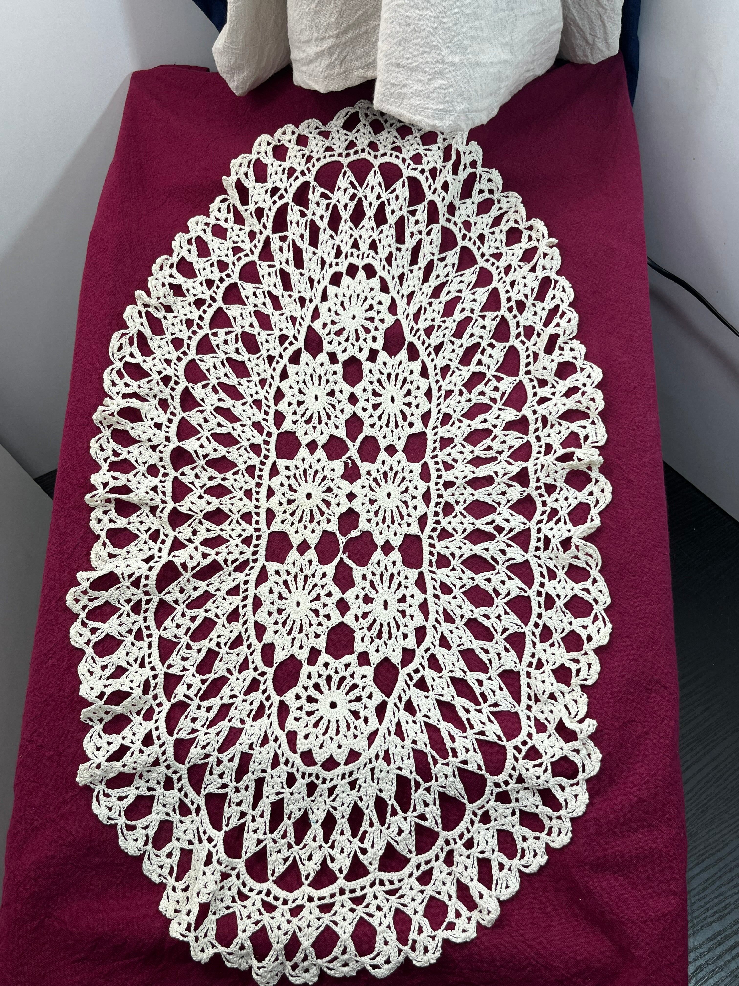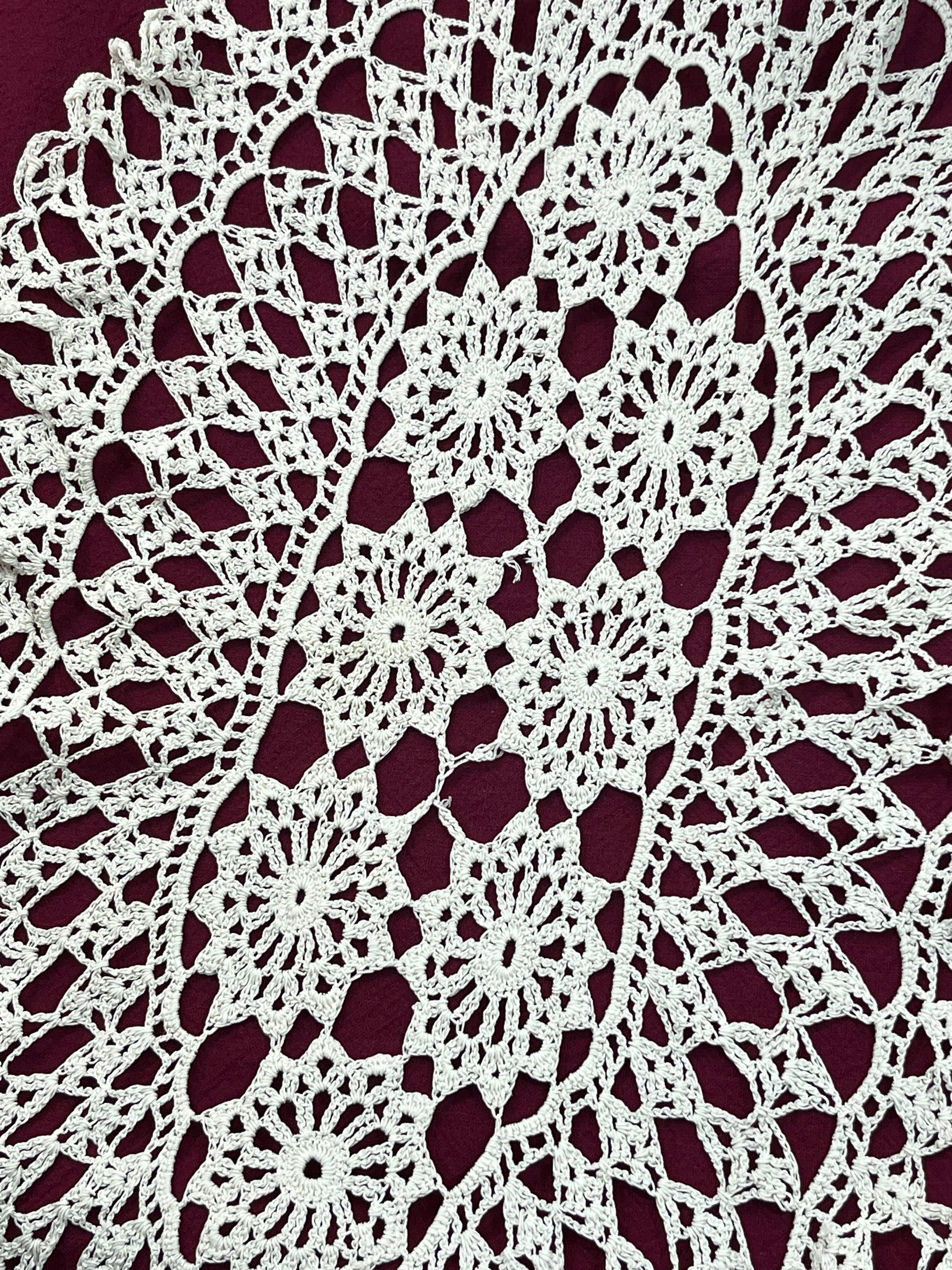 フランス製アンティーク 大判手編みレースドイリー 楕円形