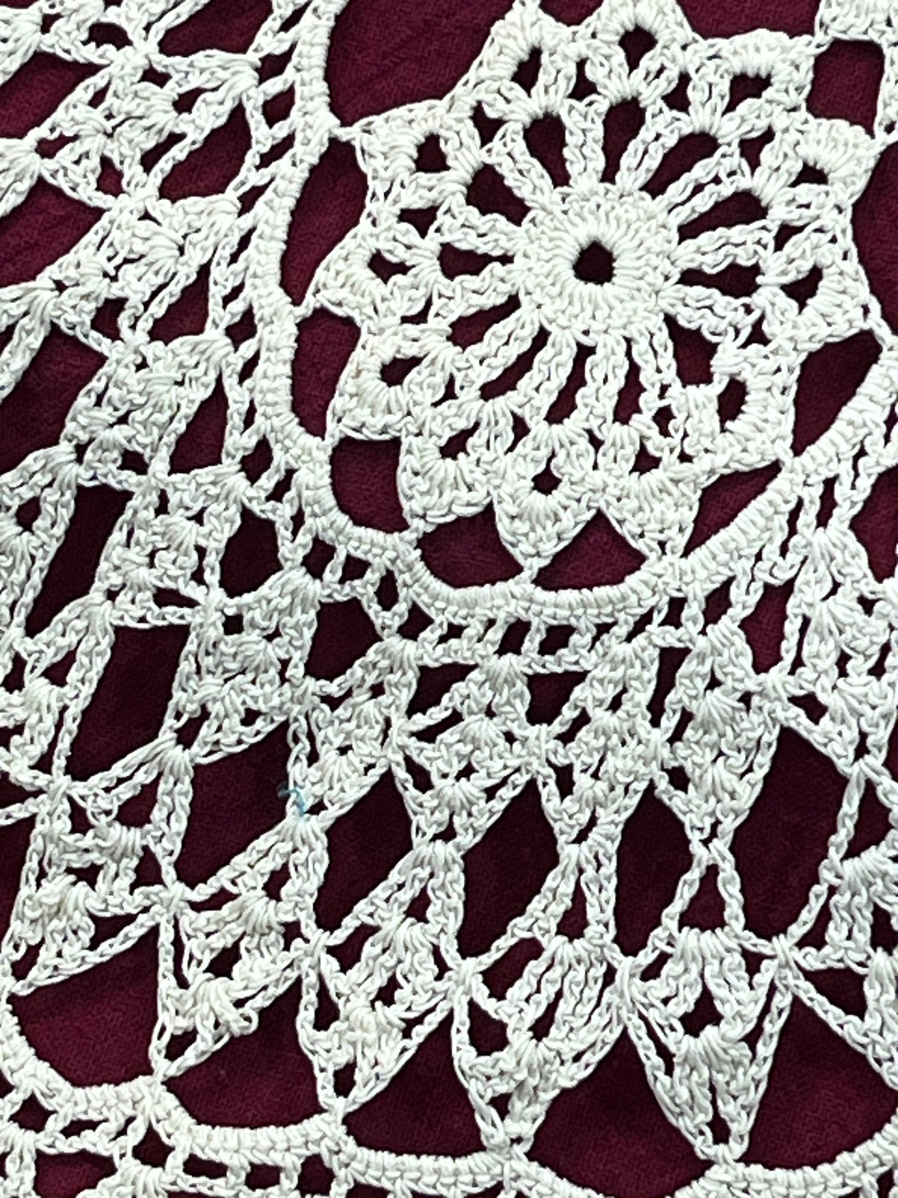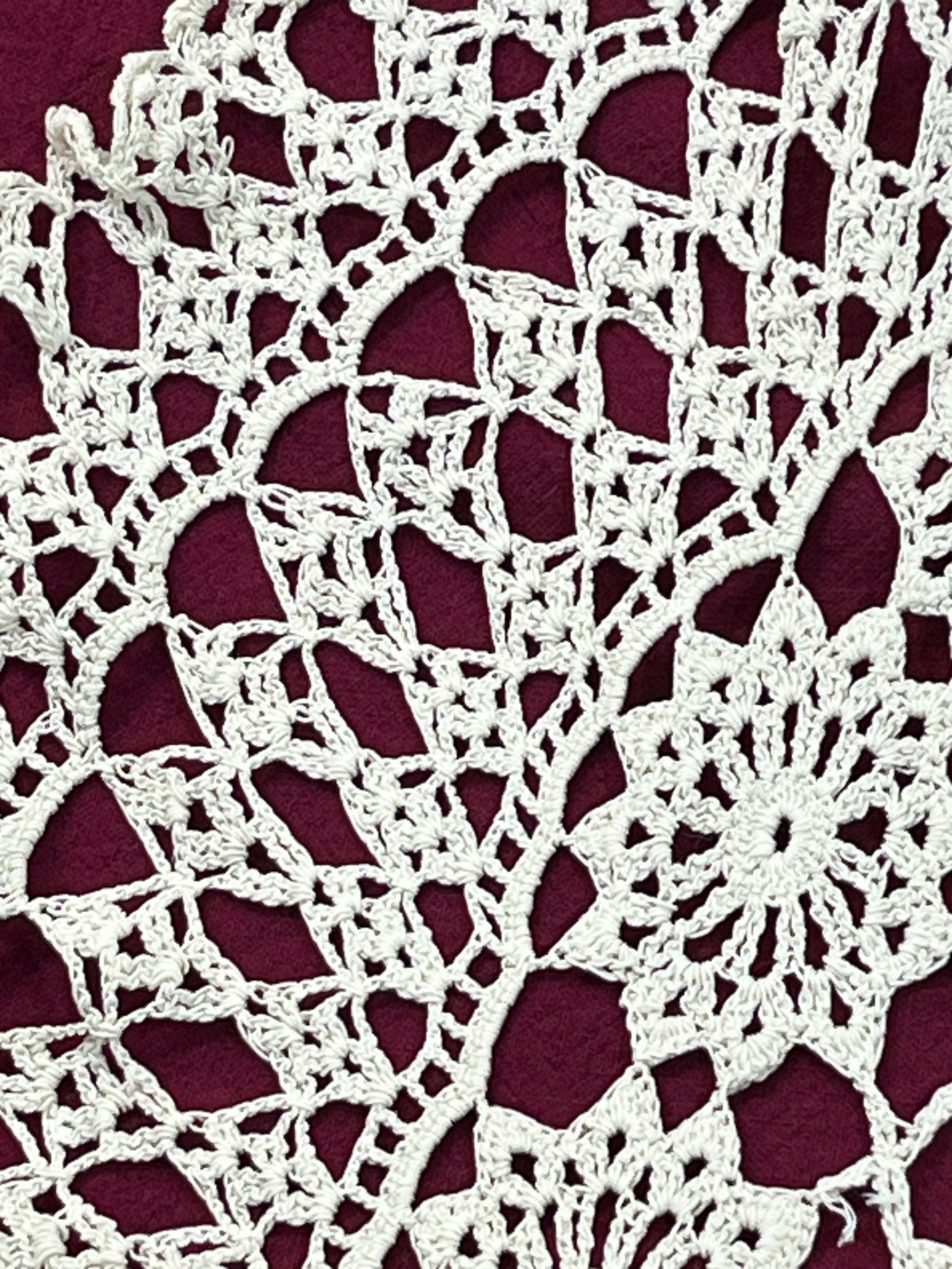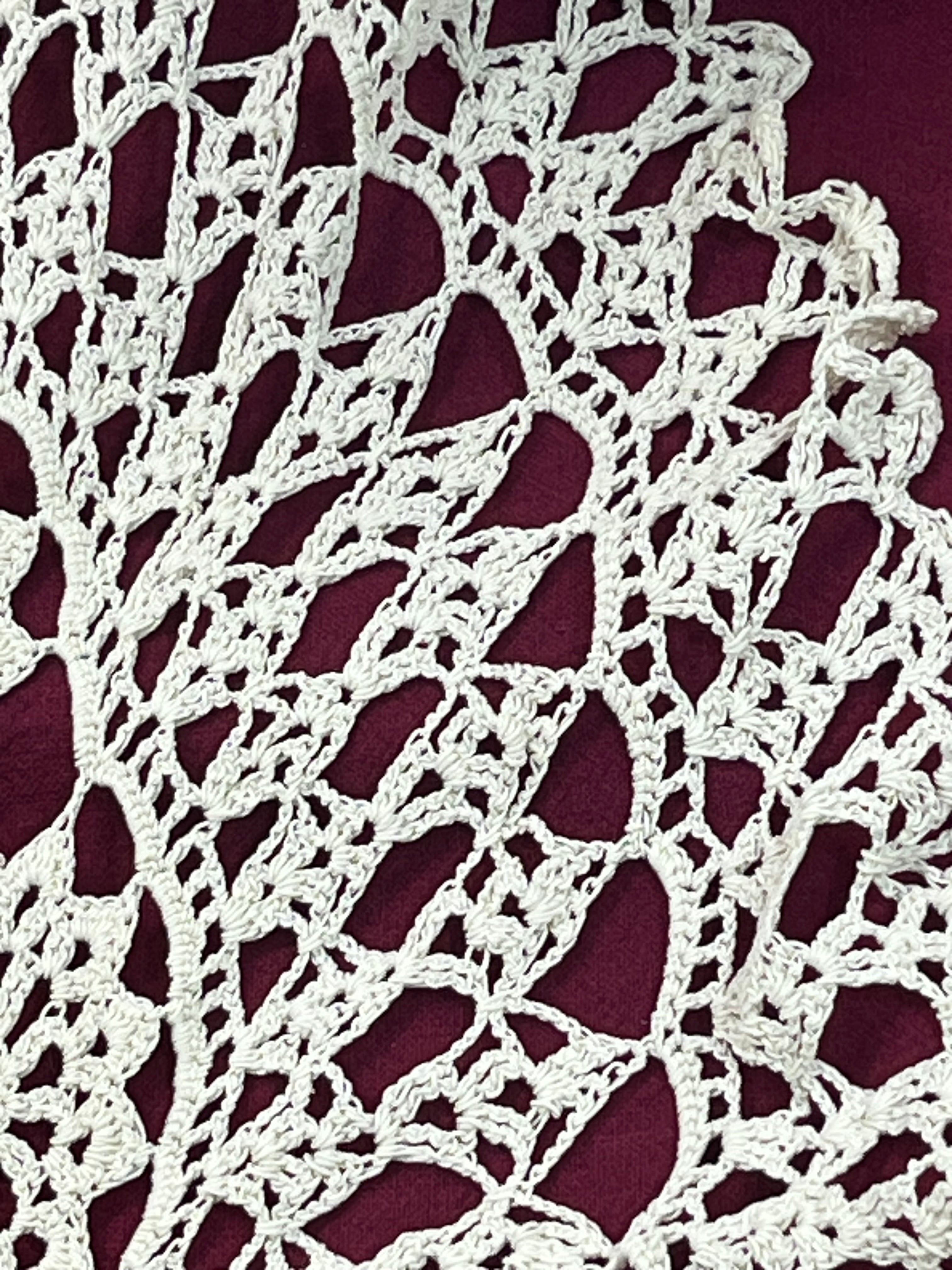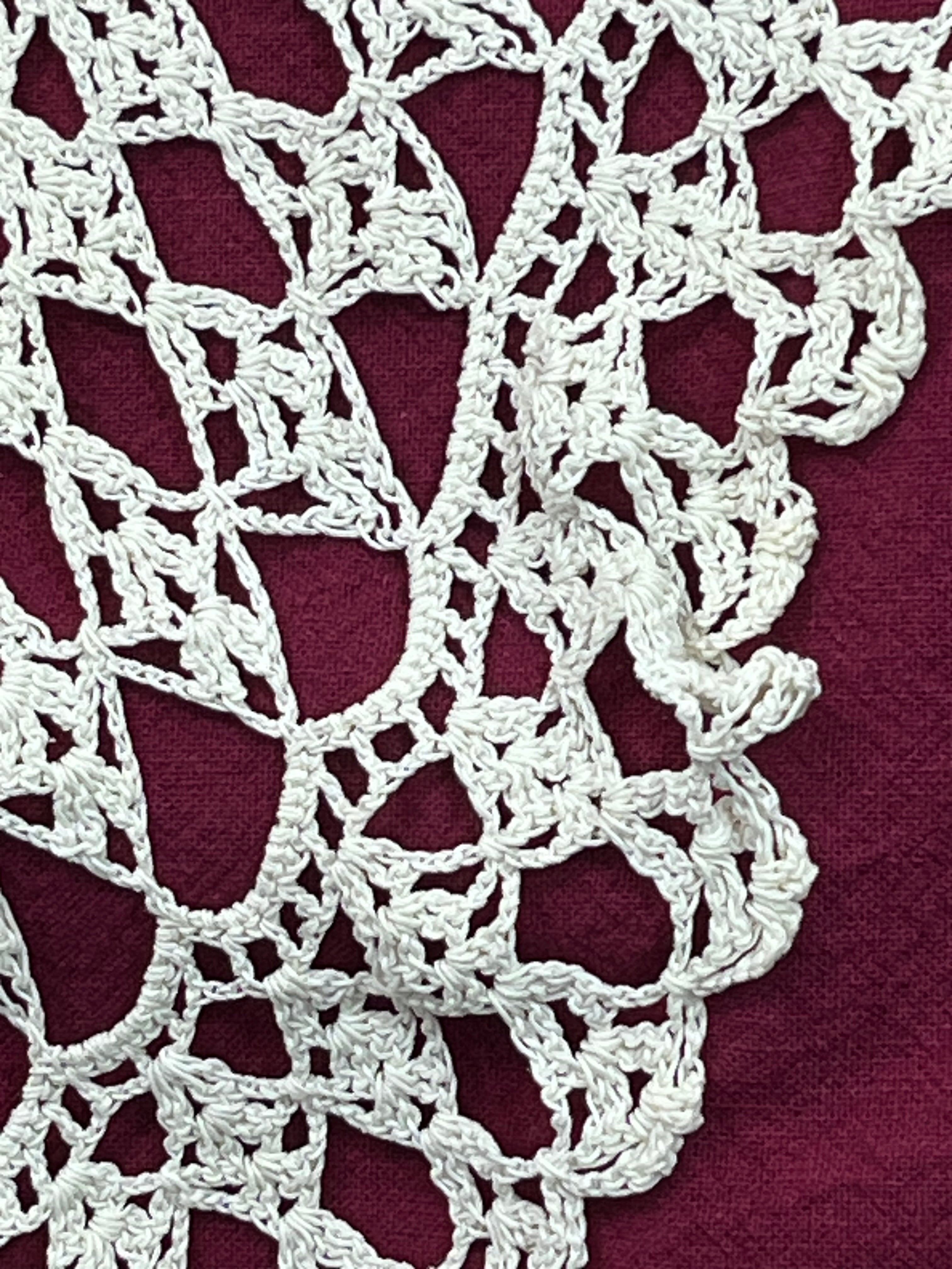 フランス製アンティーク 大判手編みレースドイリー 楕円形