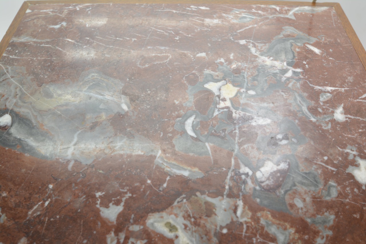 特徴的なのは、天板に使用された天然大理石(マーブル)。濃淡のある赤褐色とグレーのマーブル模様が美しく、クラシカルな空間に高級感を与えます。