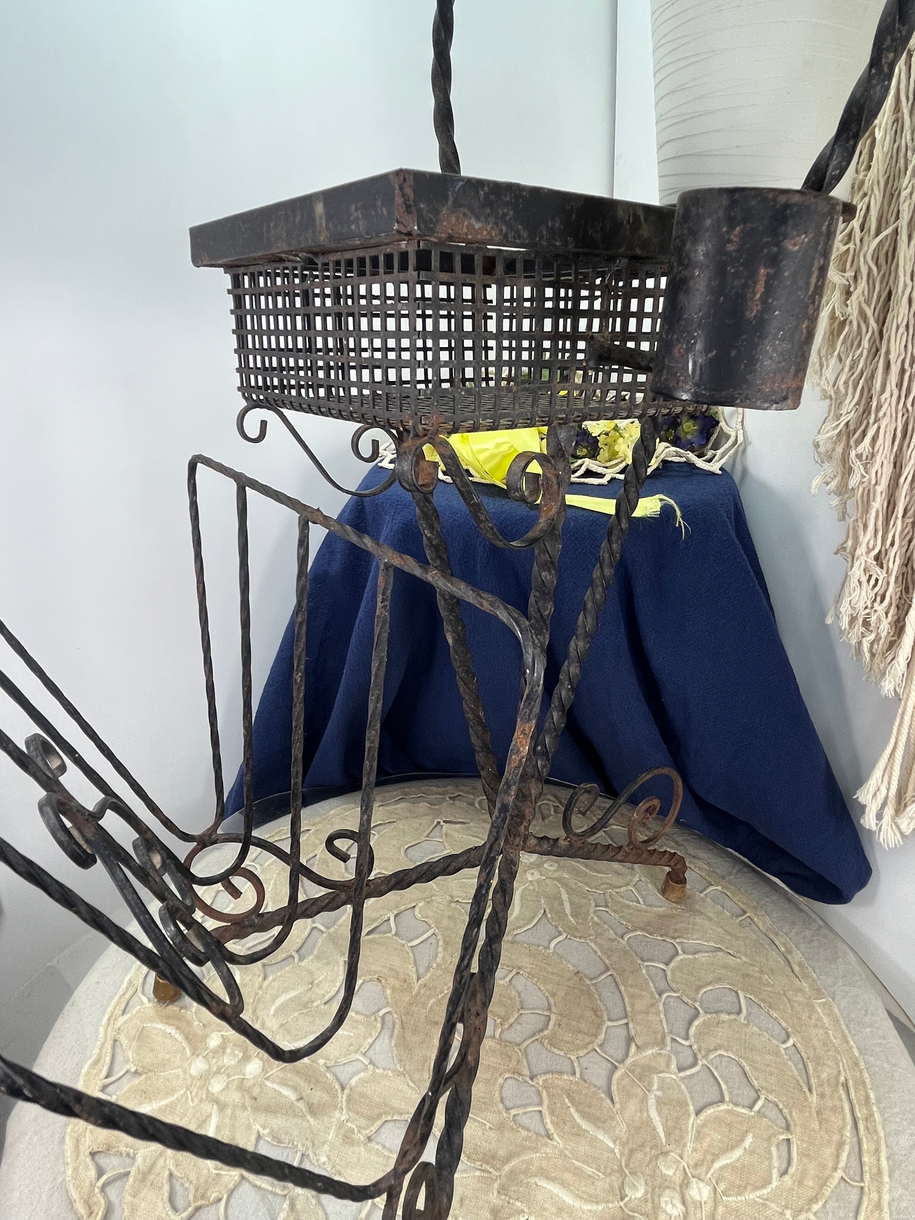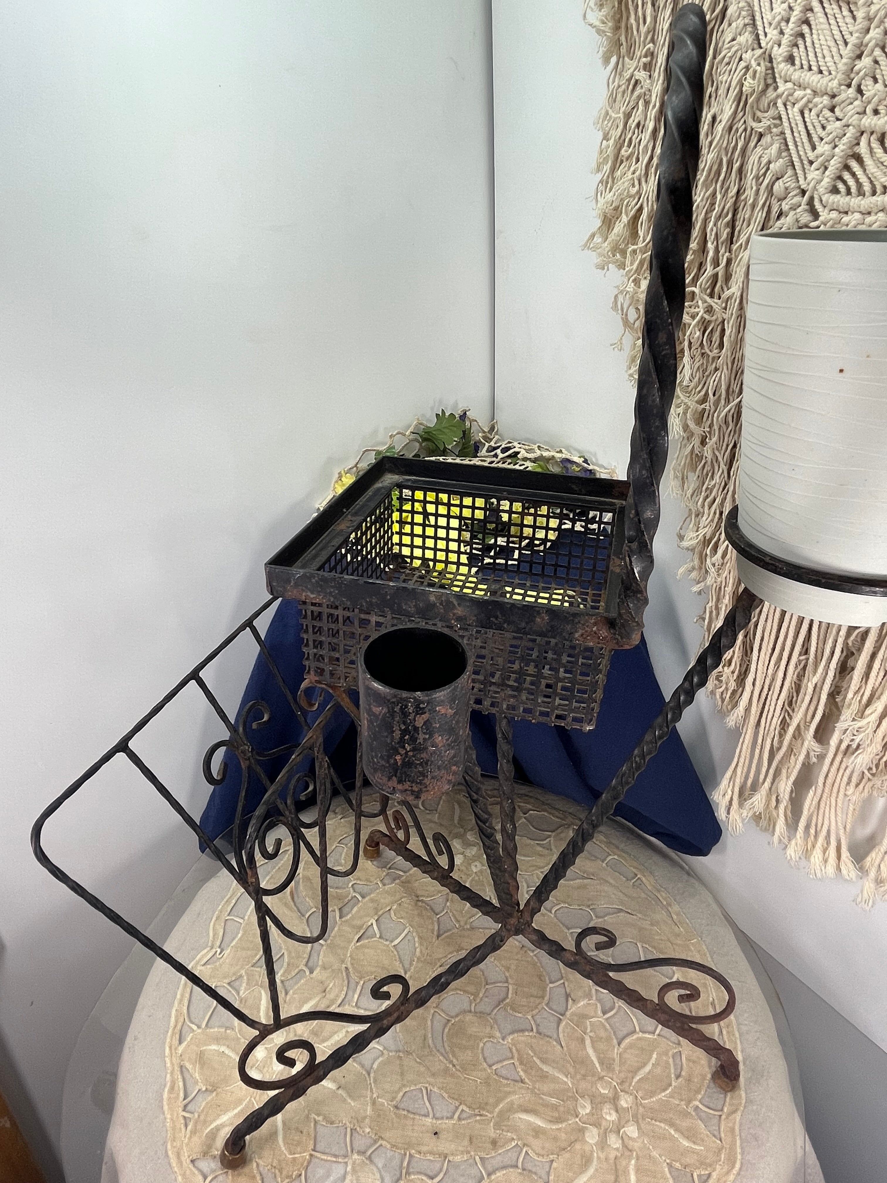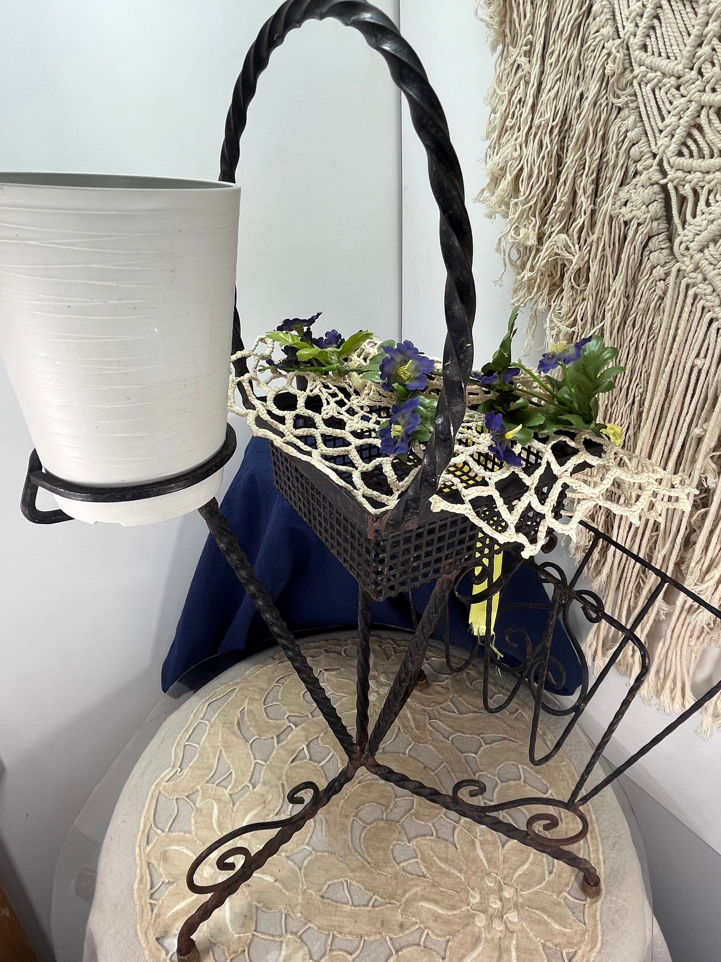 美しいツイストアイアンで丁寧に仕上げられた、フランスアンティークの2段式マガジンラックです。下段は新聞や雑誌を立てて収納できるクラシックなラック、上段はプランターや雑貨のディスプレイに最適なバスケット型の収納スペースとなっています。