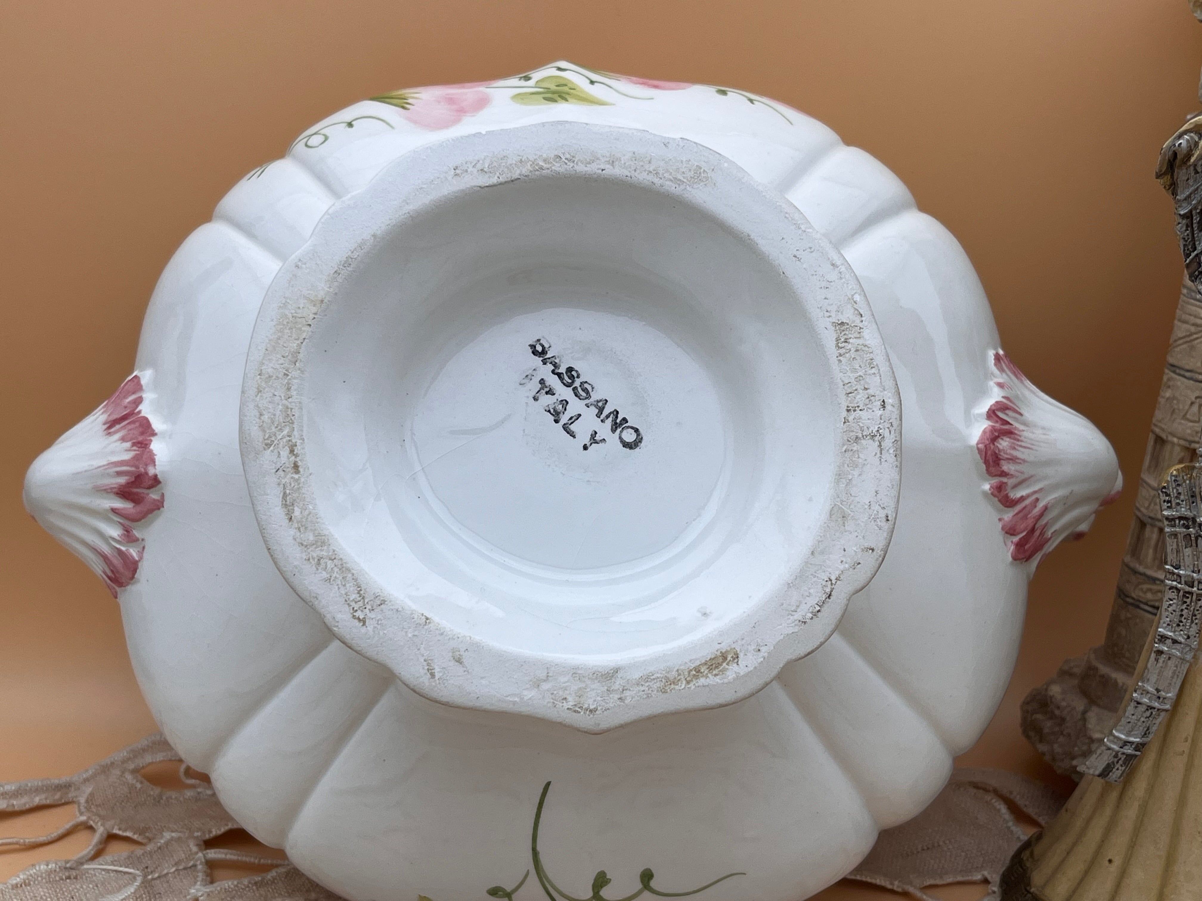 イタリア製ヴィンテージBassano花柄陶器エンボス装飾蓋付きボウル