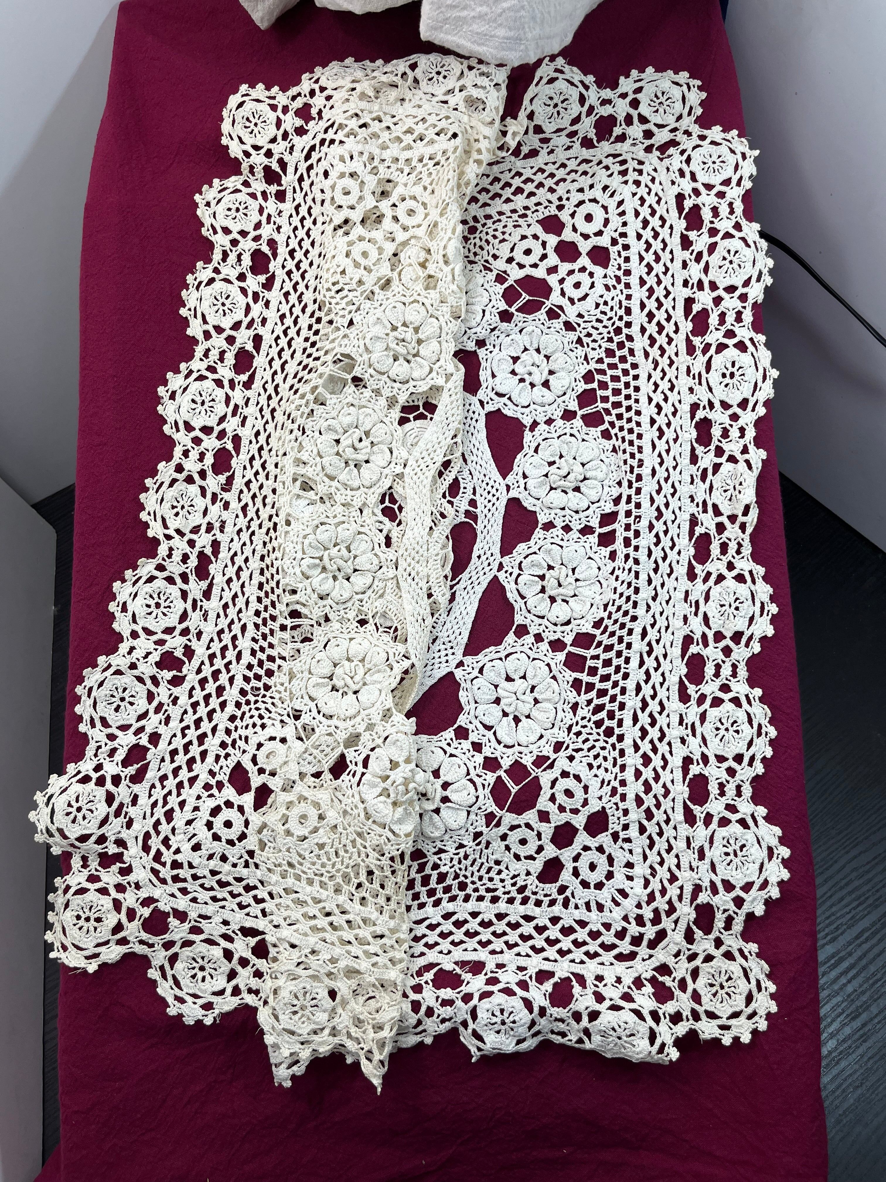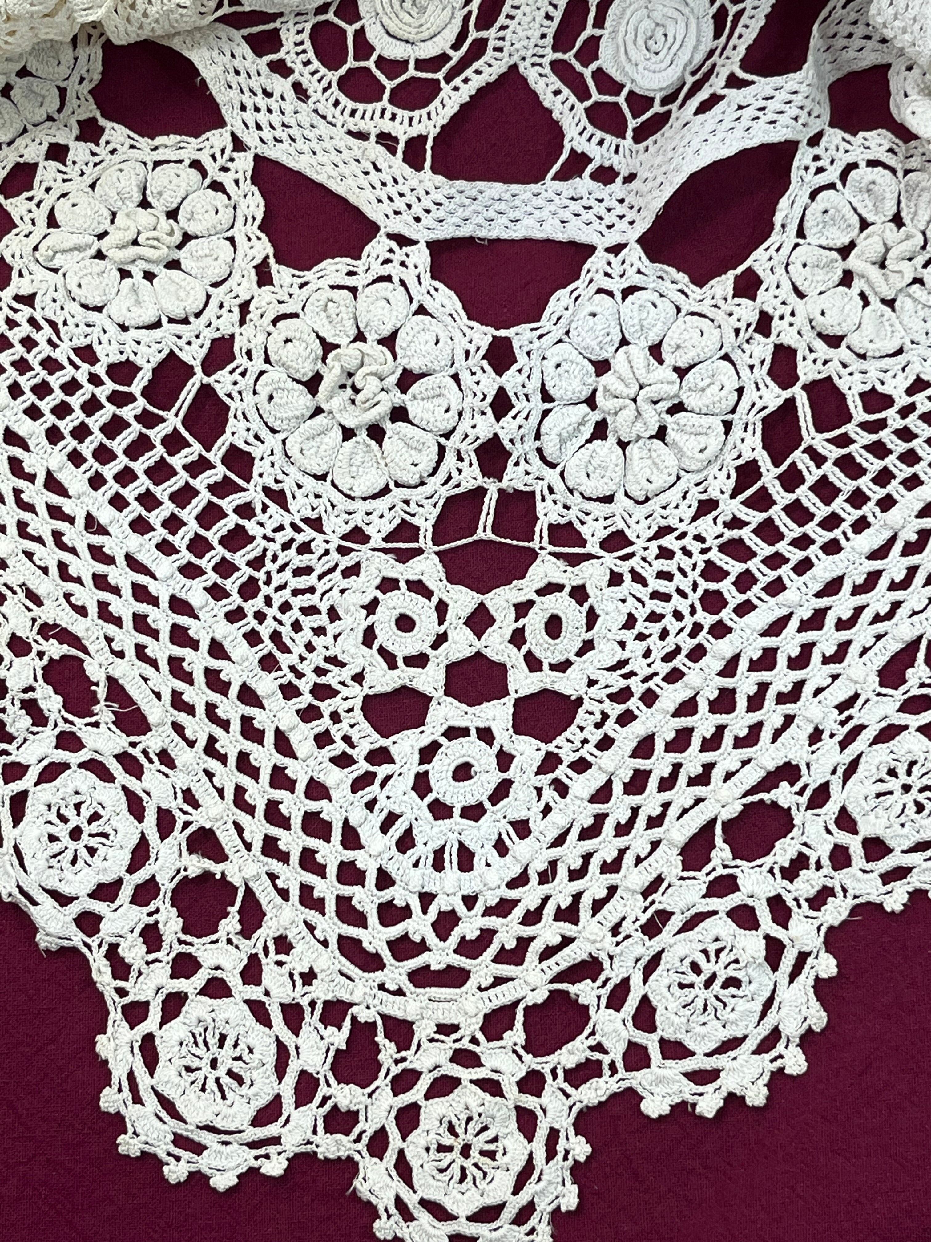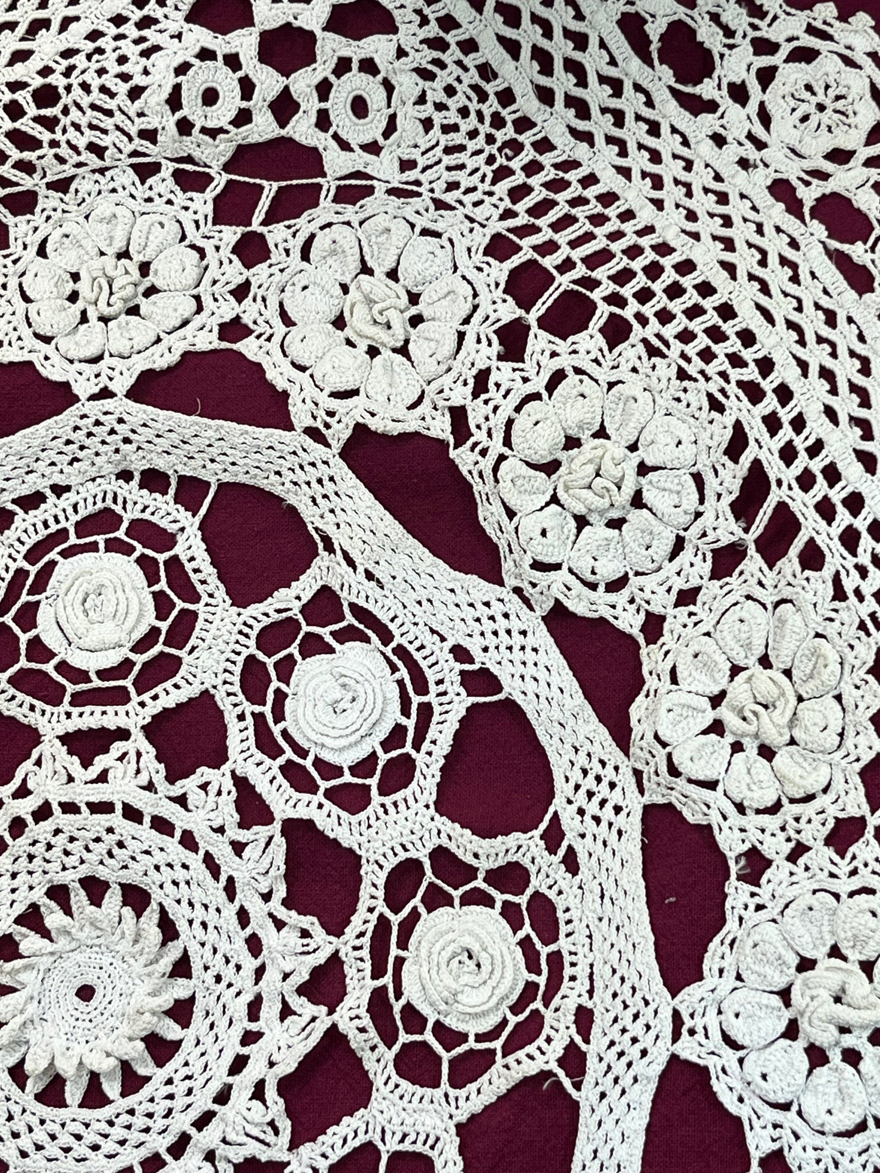 大判ドイリー花模様モチーフ 手編みクロシェレース