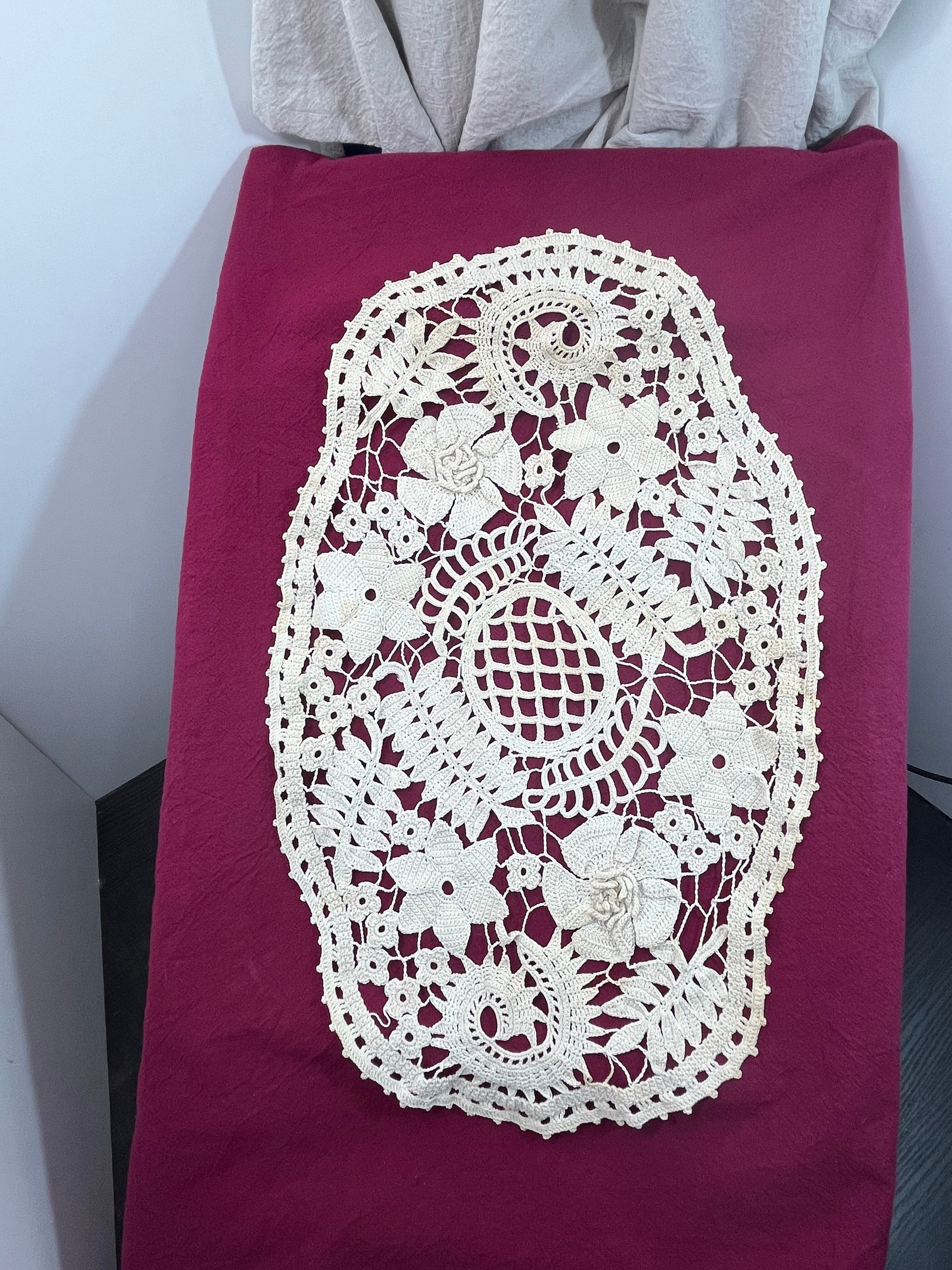職人の手によって丁寧に編み上げられた、ヨーロッパ製のアンティークレースマット。