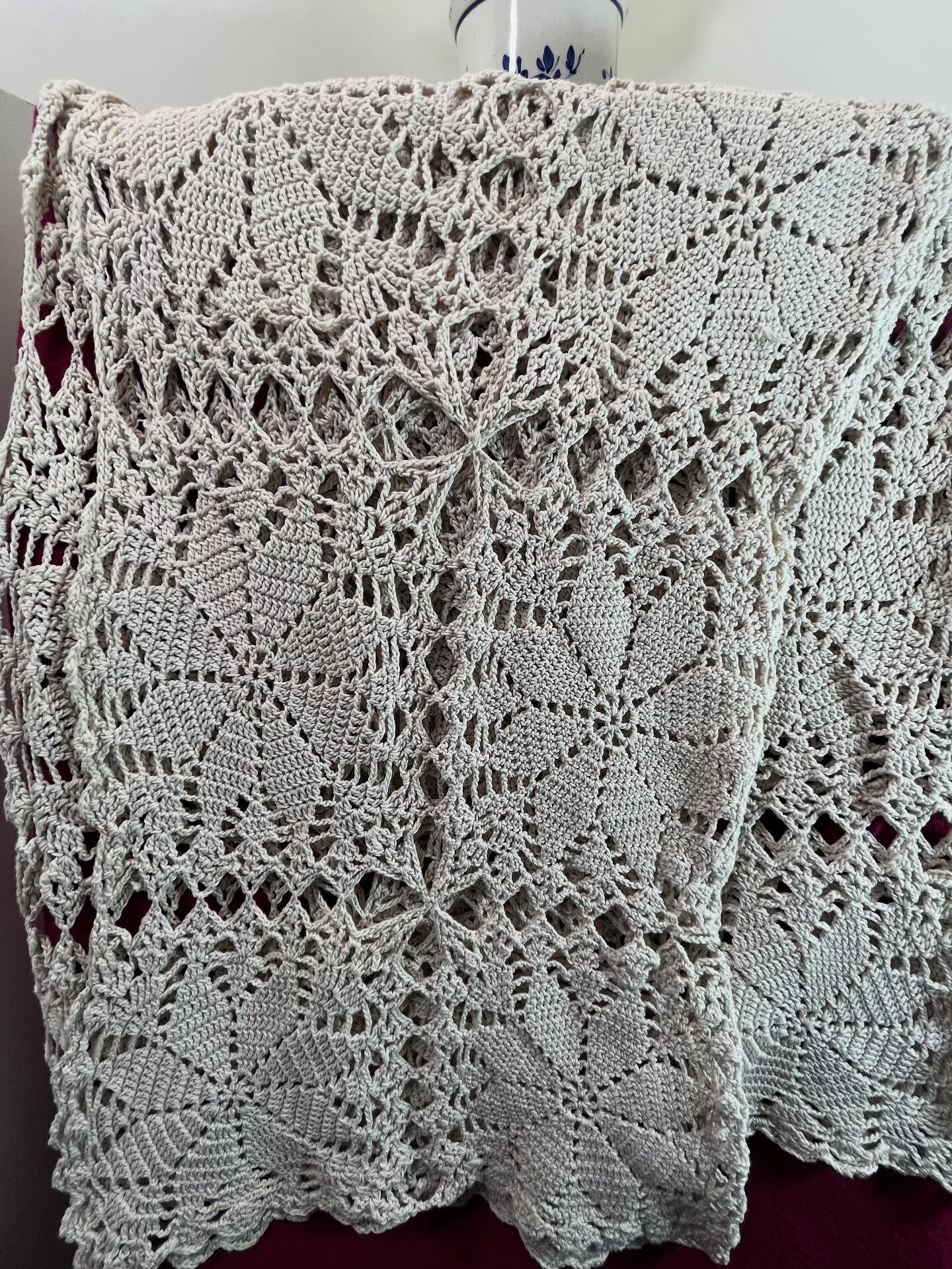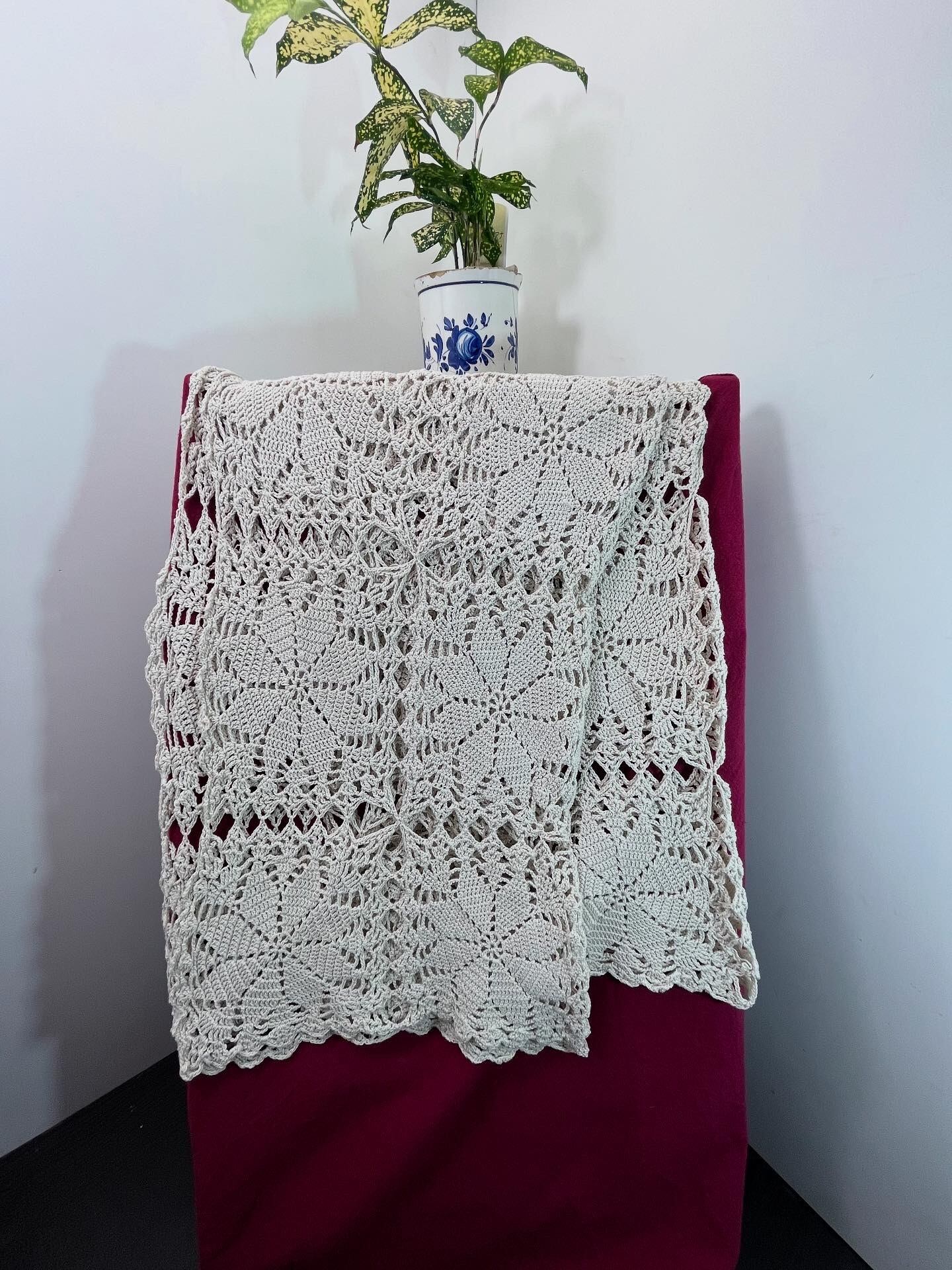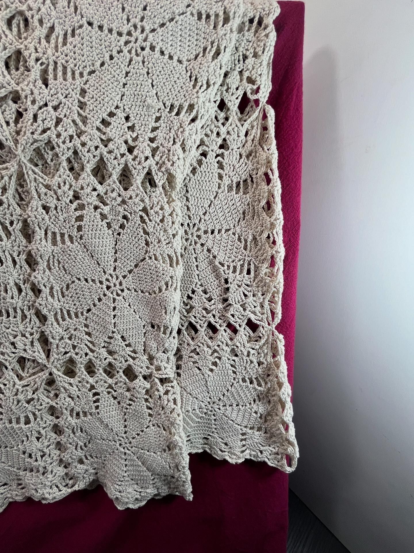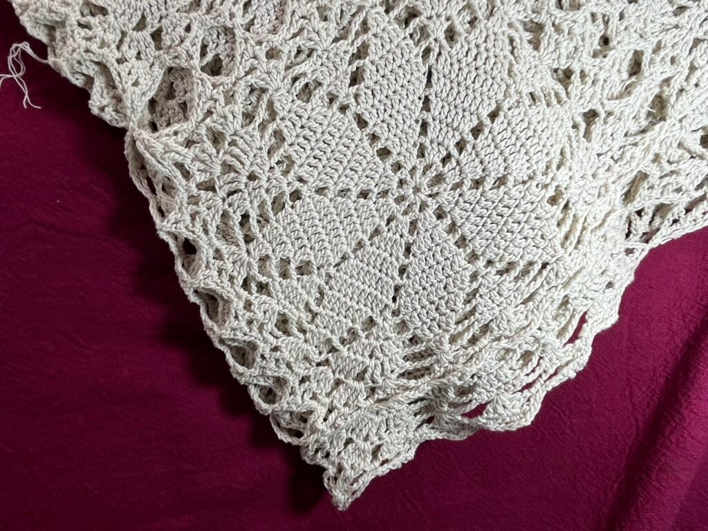 手編みヴィンテージ テーブルカバー/花模様クロシェレースクロス