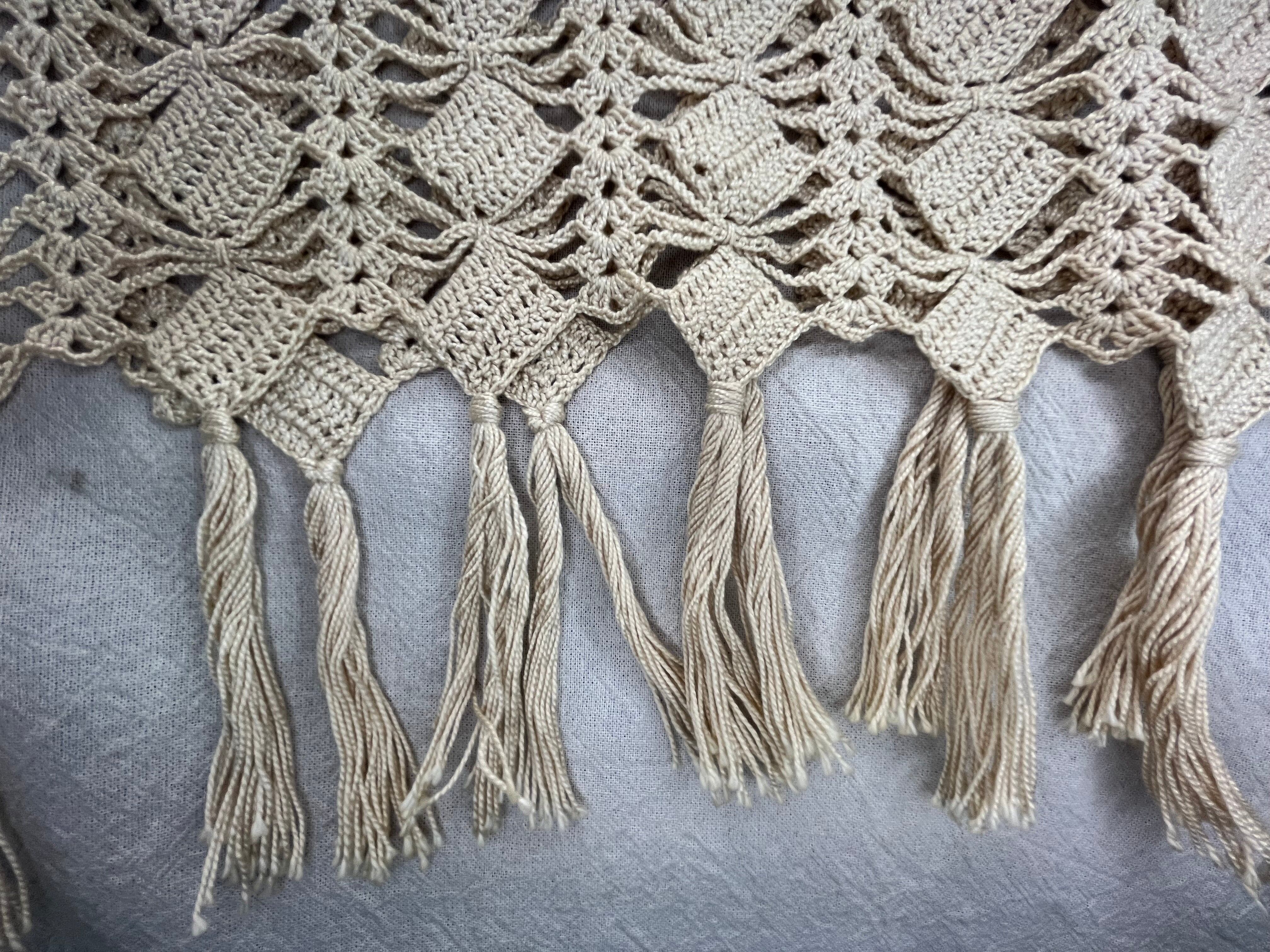 手編みマクラメ風 大判クロス/レース編みタペストリー