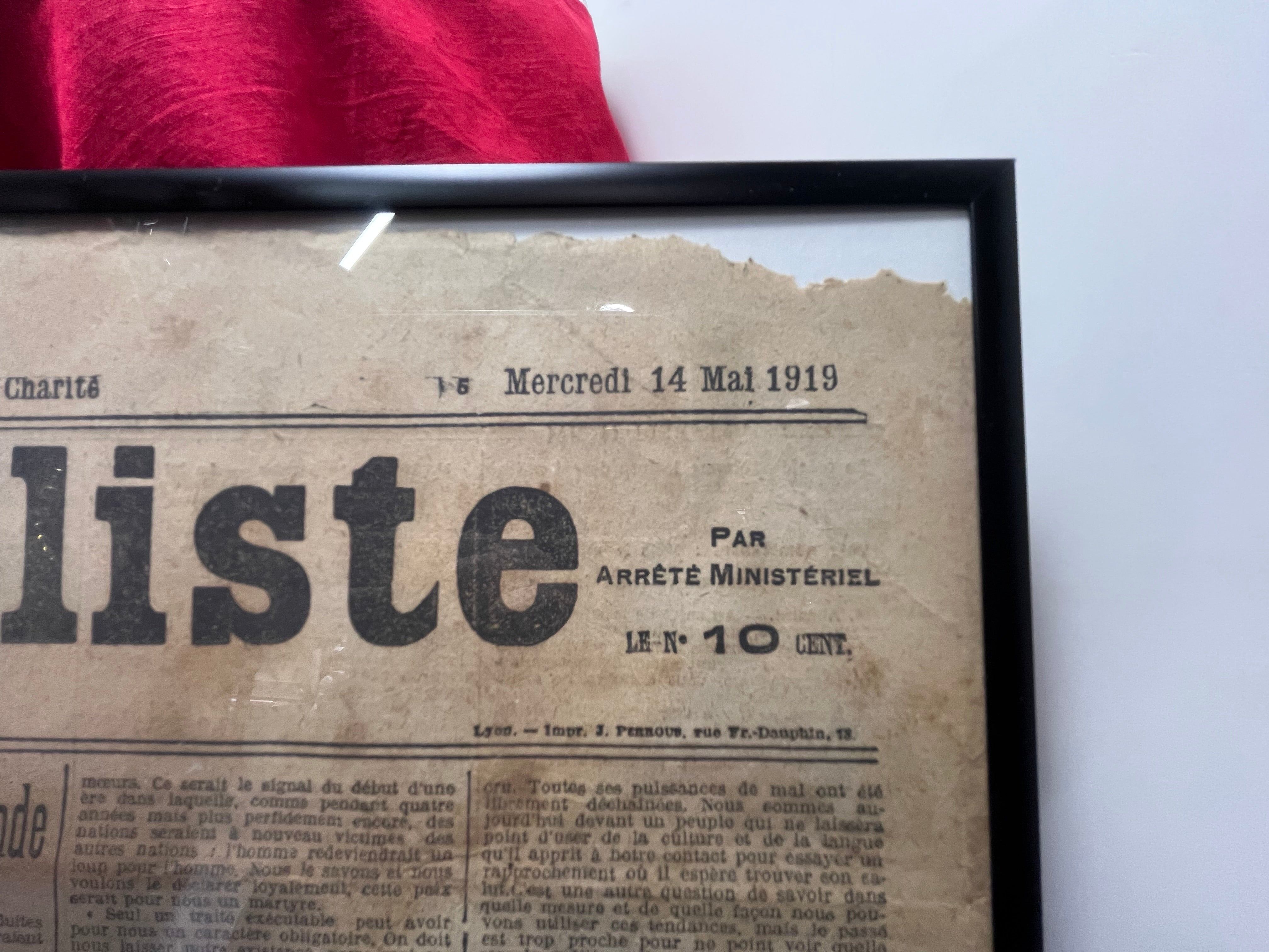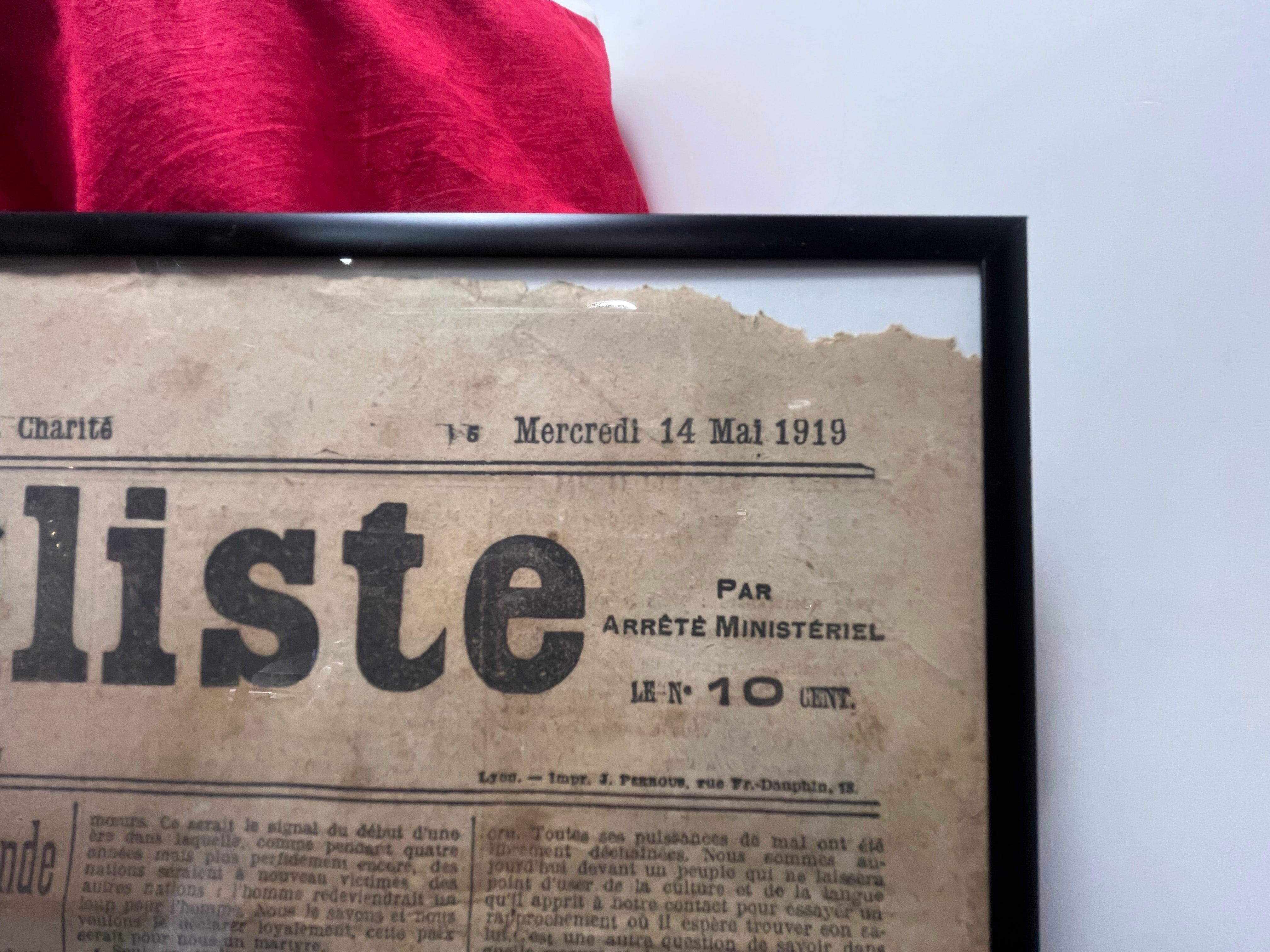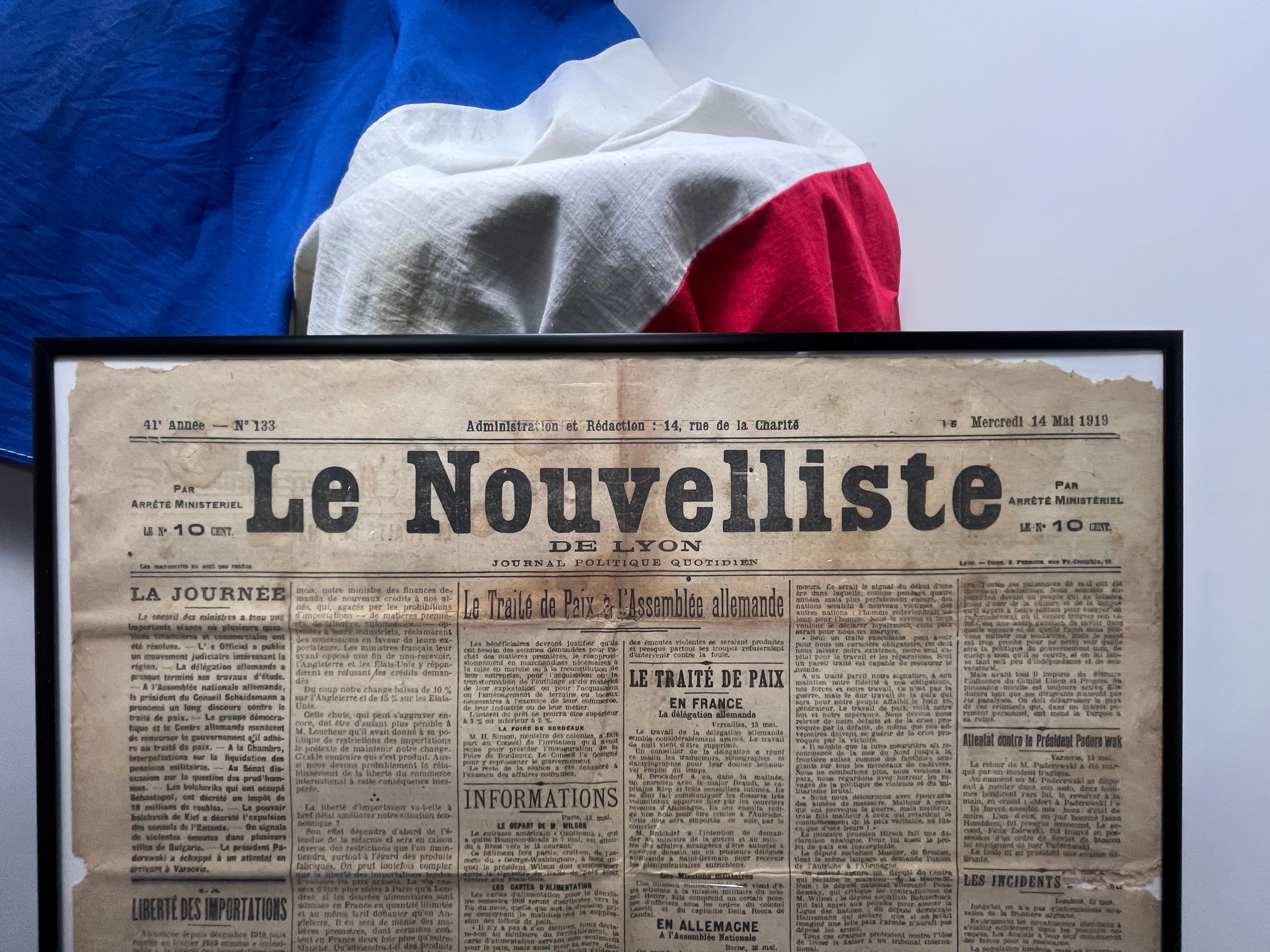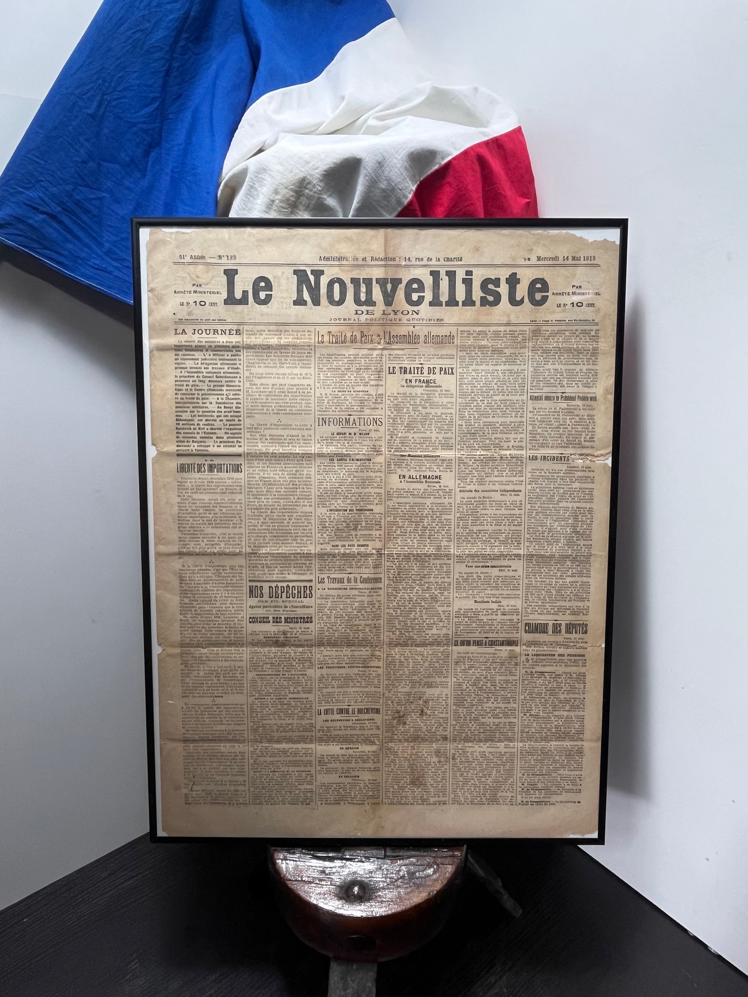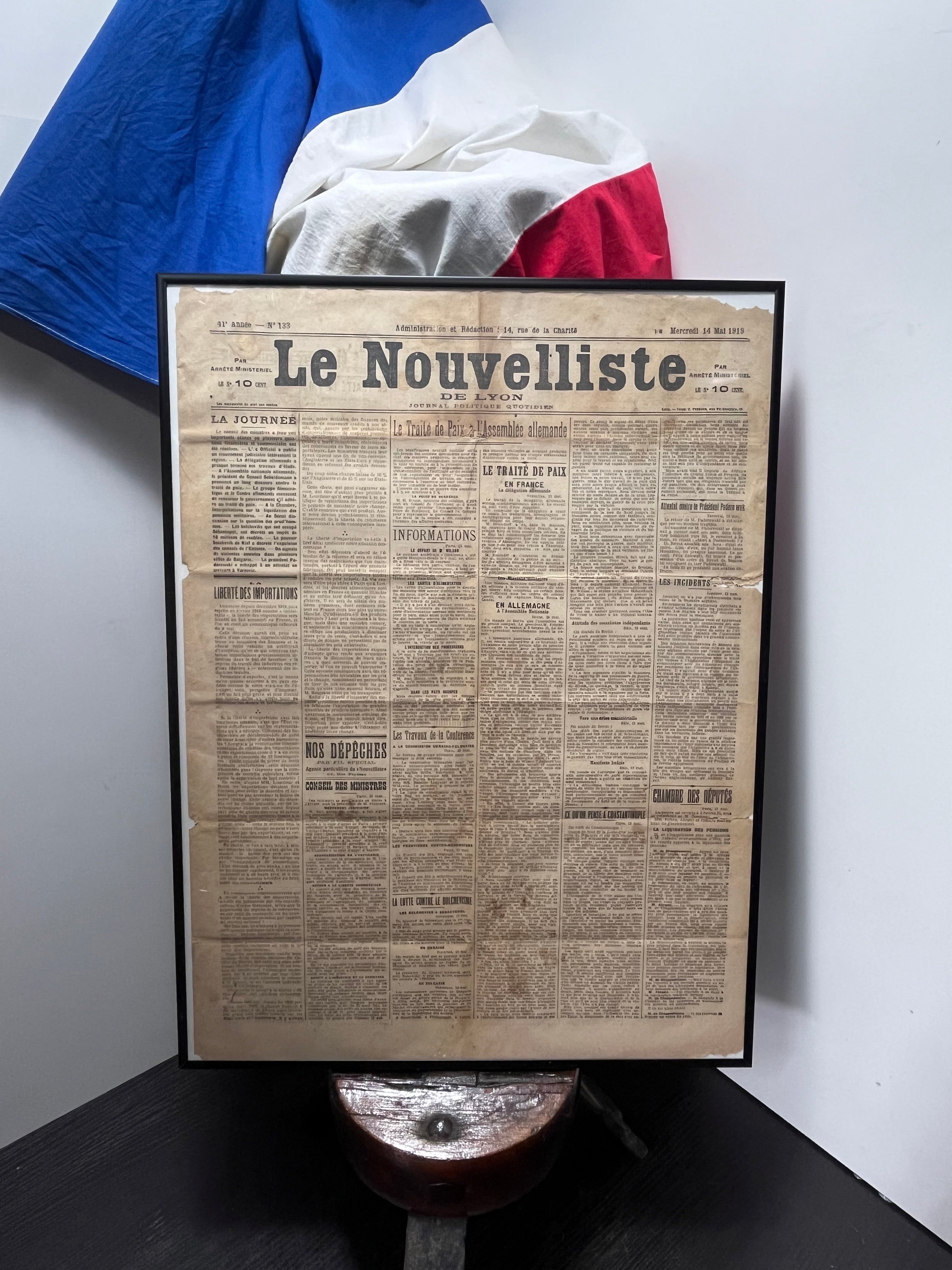 第一次世界大戦の終戦後間もない1919年に発行された、**フランス・リヨンの歴史的新聞「Le Nouvelliste」**のオリジナル紙面です。