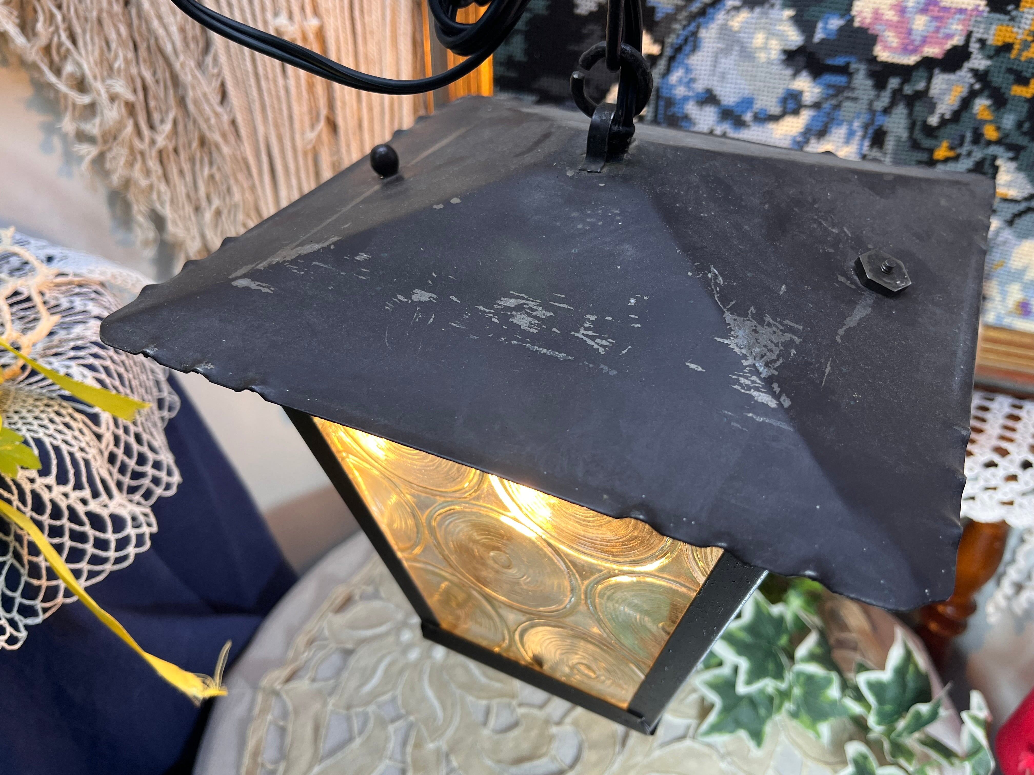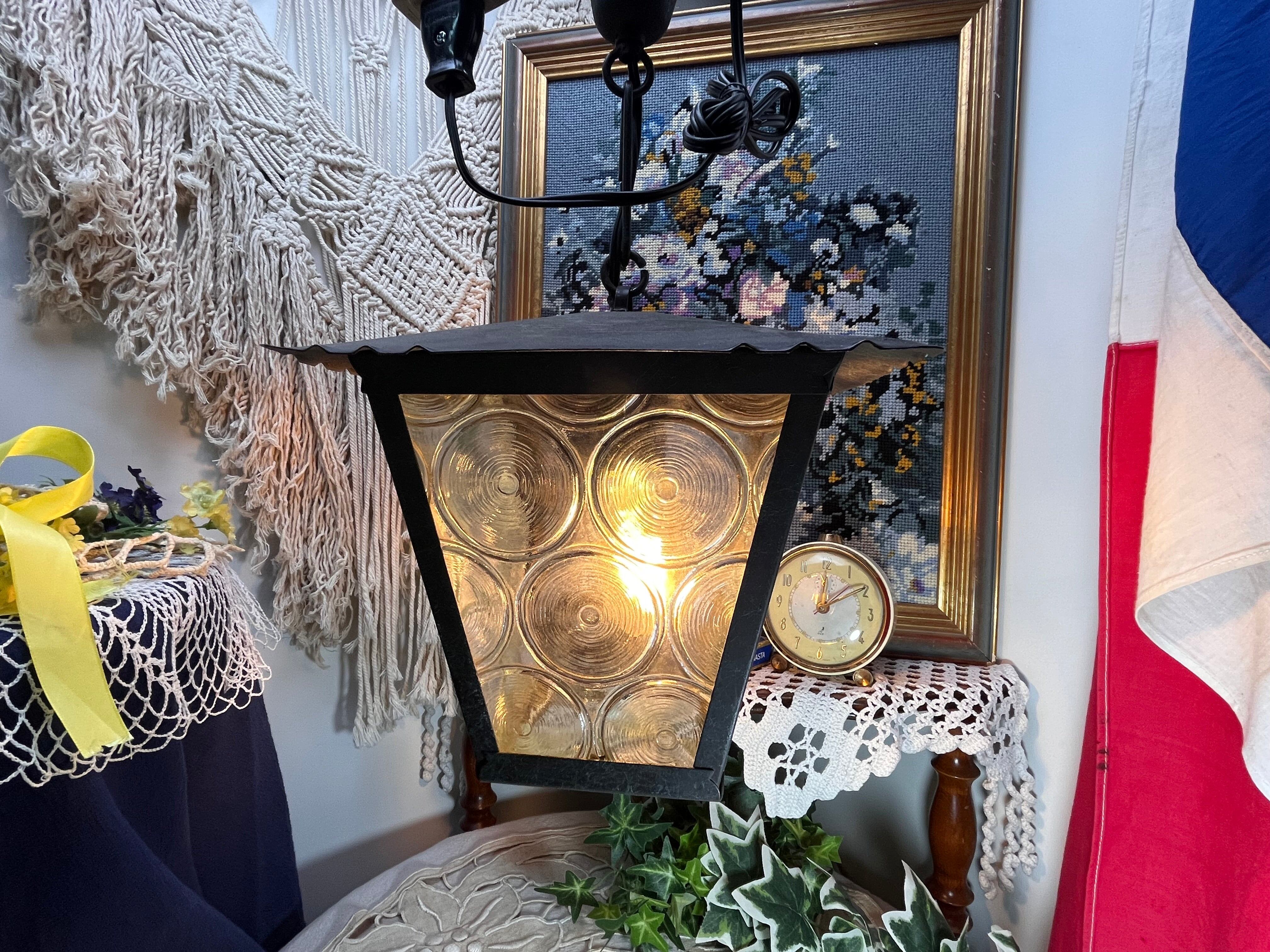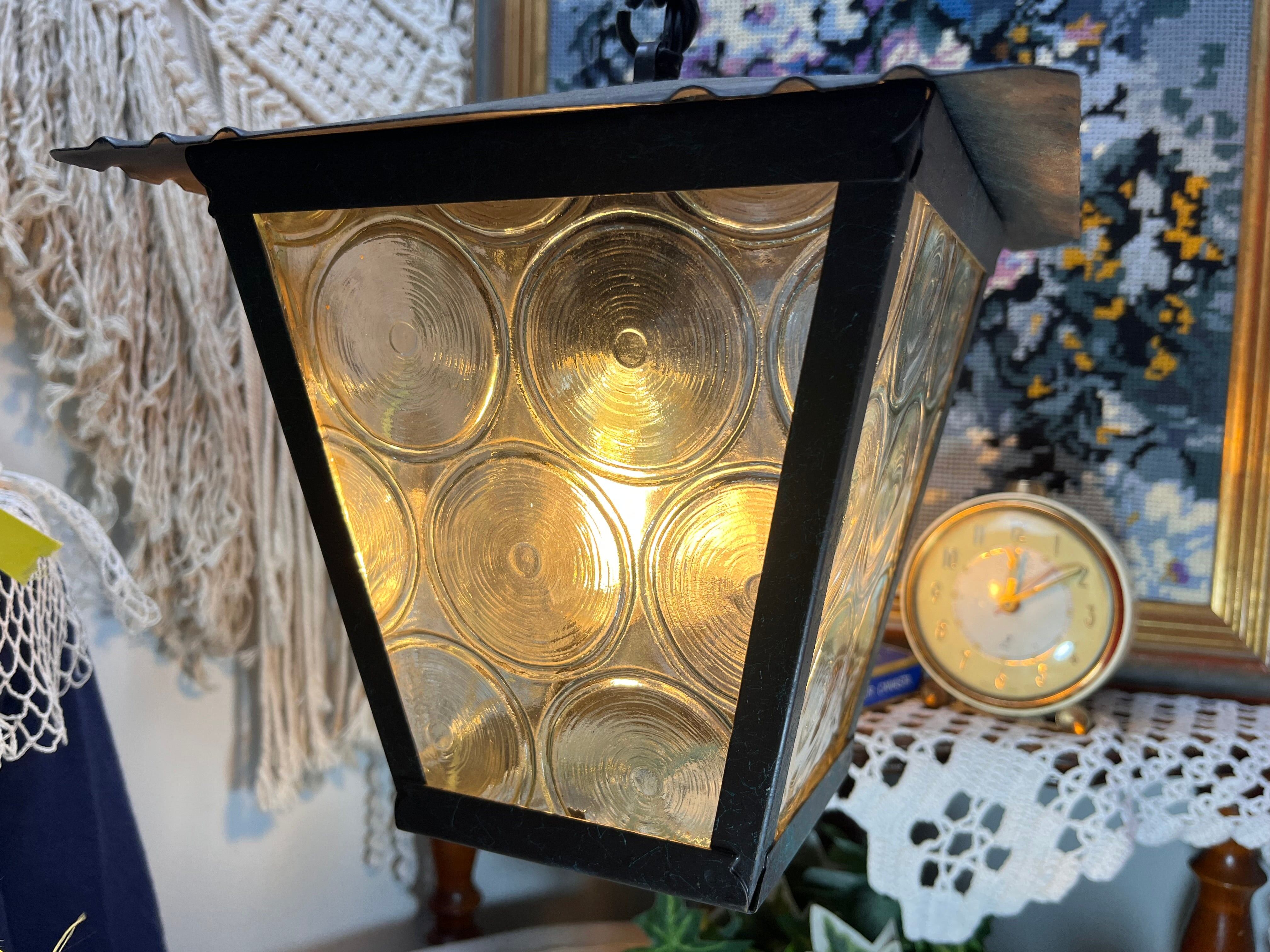 クラシカルなデザインに、ヴィンテージ感あふれる型押しガラスをあしらった吊り下げ式ランタンライト。
