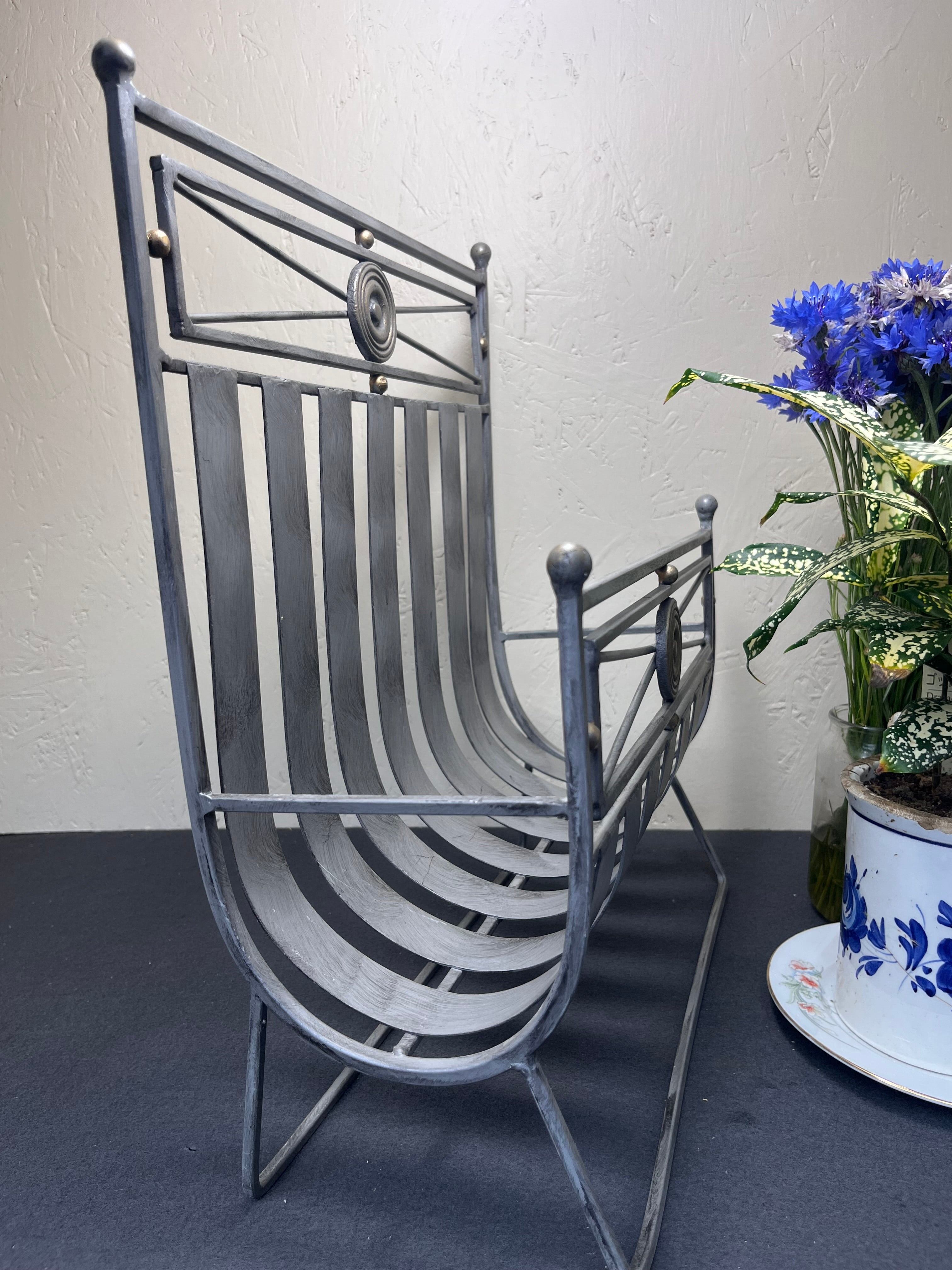 デザイン性と実用性を兼ね備えた、アイアン製のマガジンラックです。前後に施された円形の装飾が、シンプルな構造に軽やかなアクセントを添え、空間に洗練された印象を与えます。雑誌や新聞、小物類をすっきり収納しながら、インテリアの一部としても映える万能アイテム。北欧風、モダン、インダストリアルなど、幅広いスタイルに調和します。店舗やオフィスにもおすすめ。