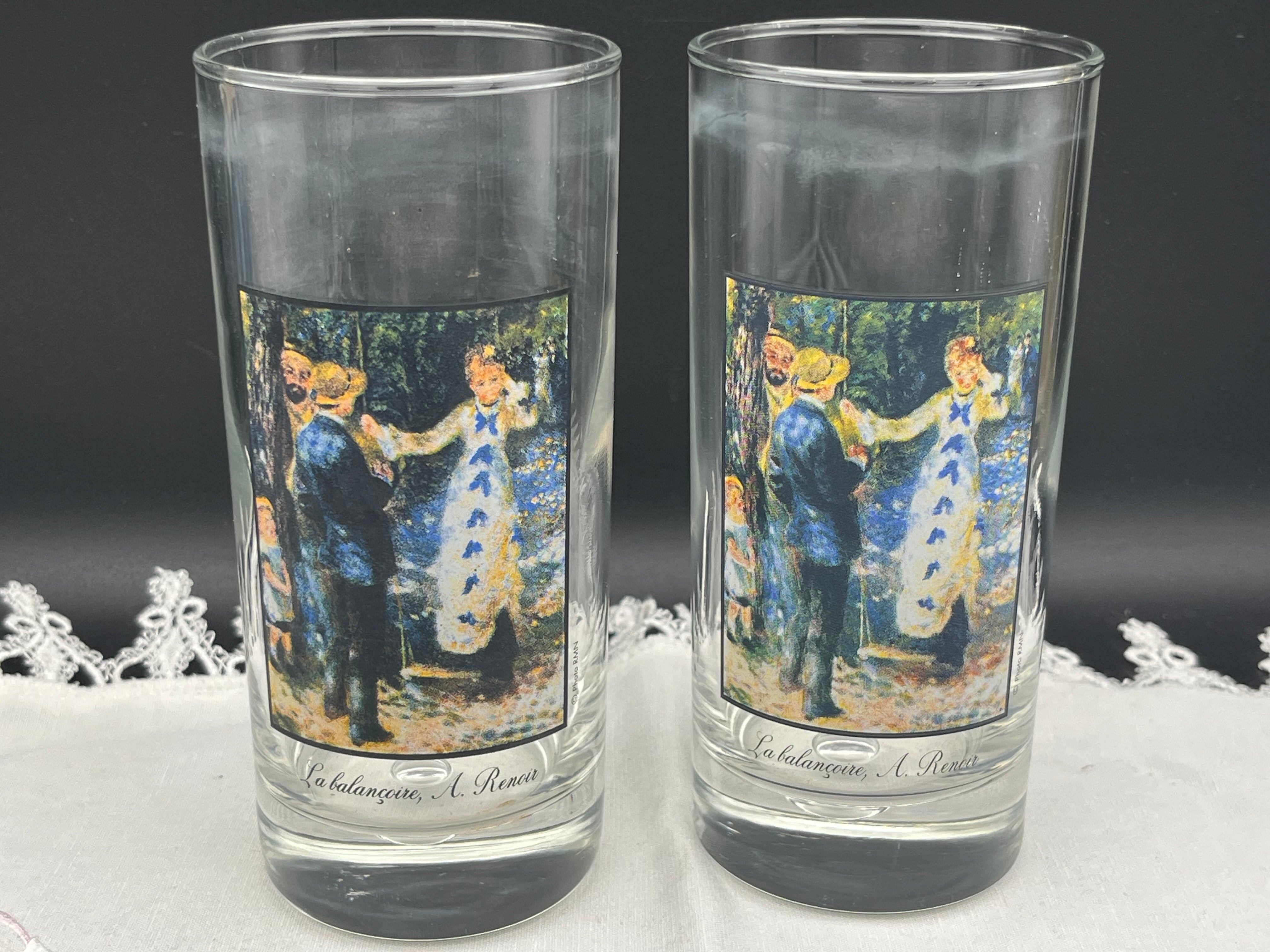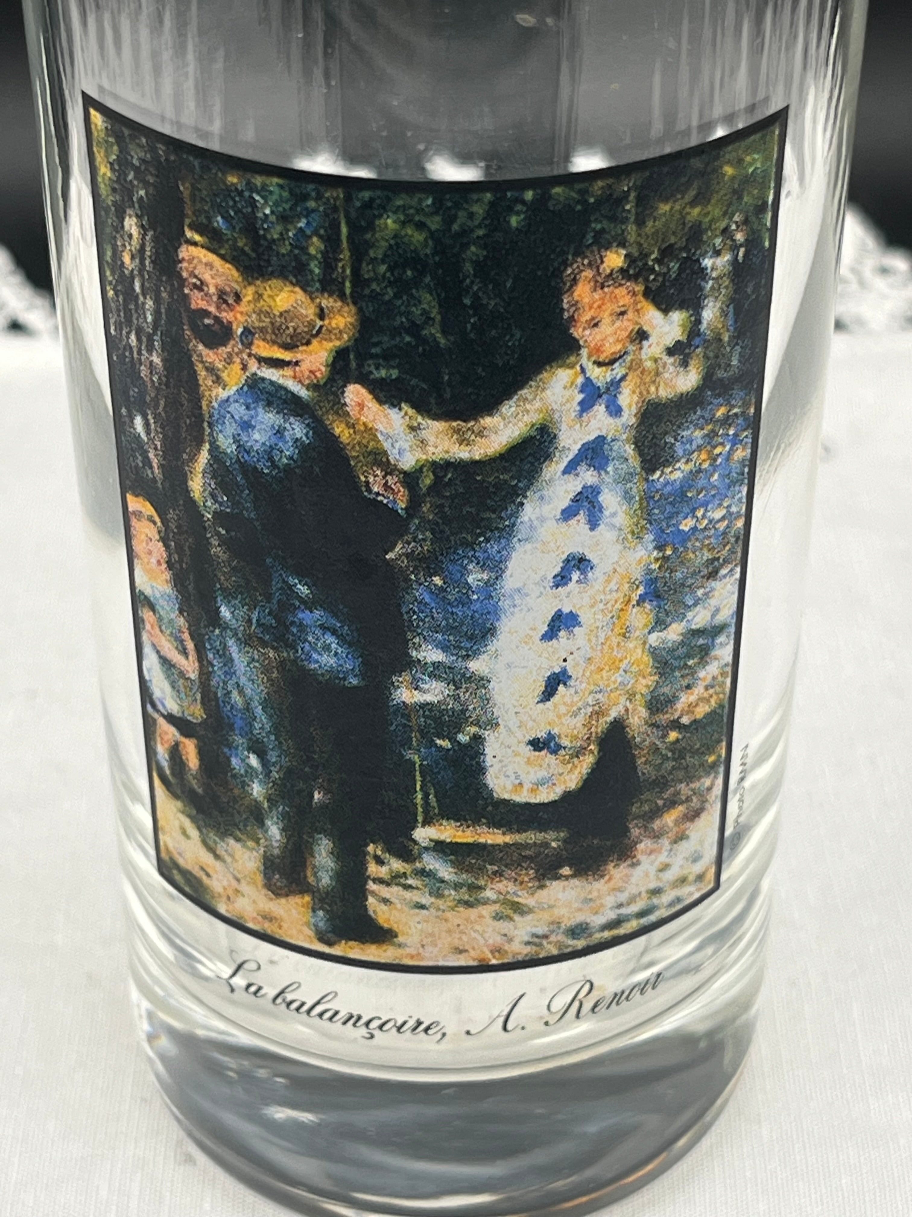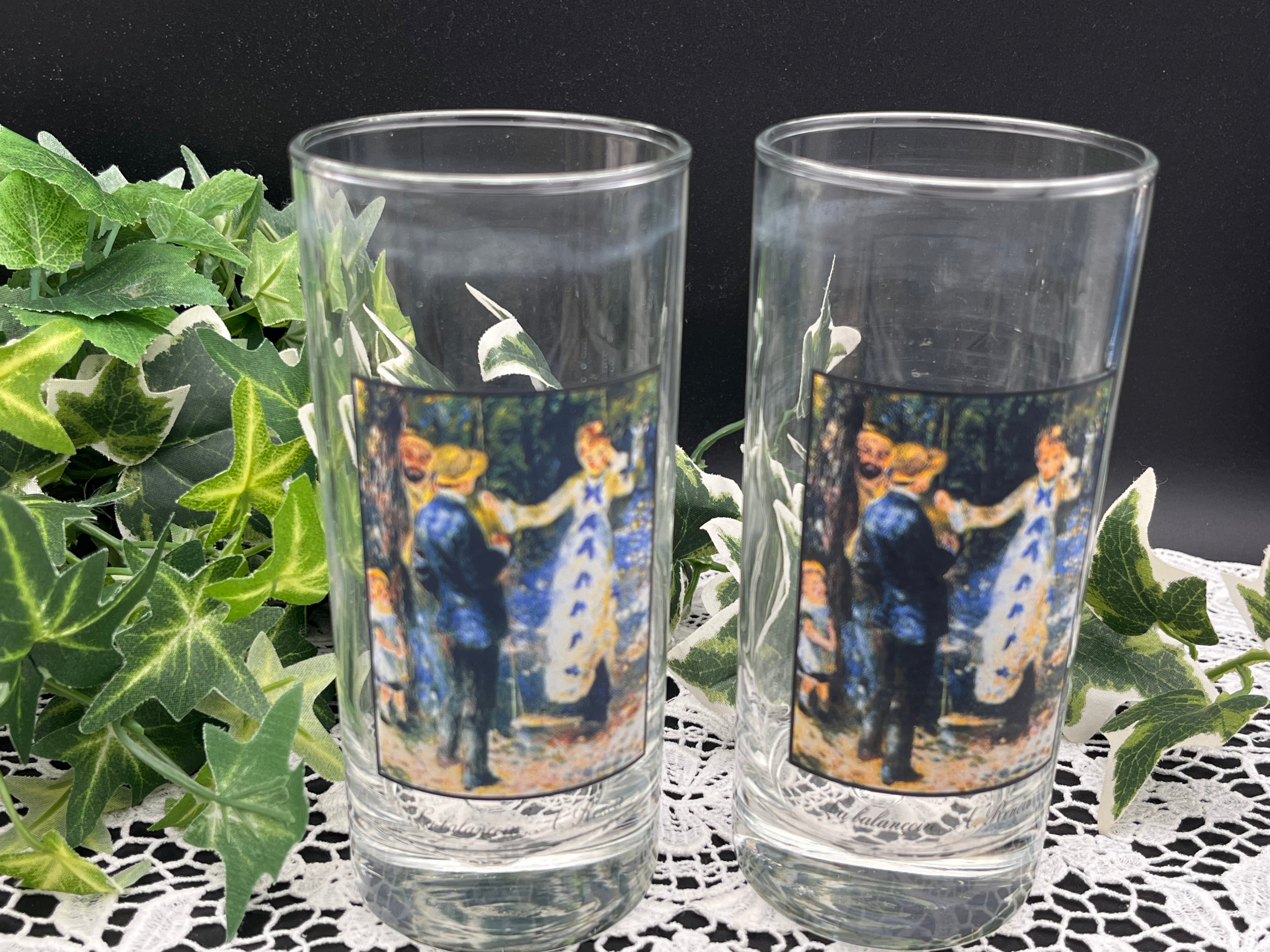 フランス印象派の巨匠ルノワールが描いた名作《ブランコ》がデザインされた、アートと実用性を兼ね備えたヴィンテージグラスです。淡く優しい色使いと、優雅な佇まいは、まるで美術館のワンシーンを食卓に飾るような特別感。コレクターや芸術愛好家の方はもちろん、日常に彩りを添えたい方にもおすすめ。ギフトにも最適な一点です。