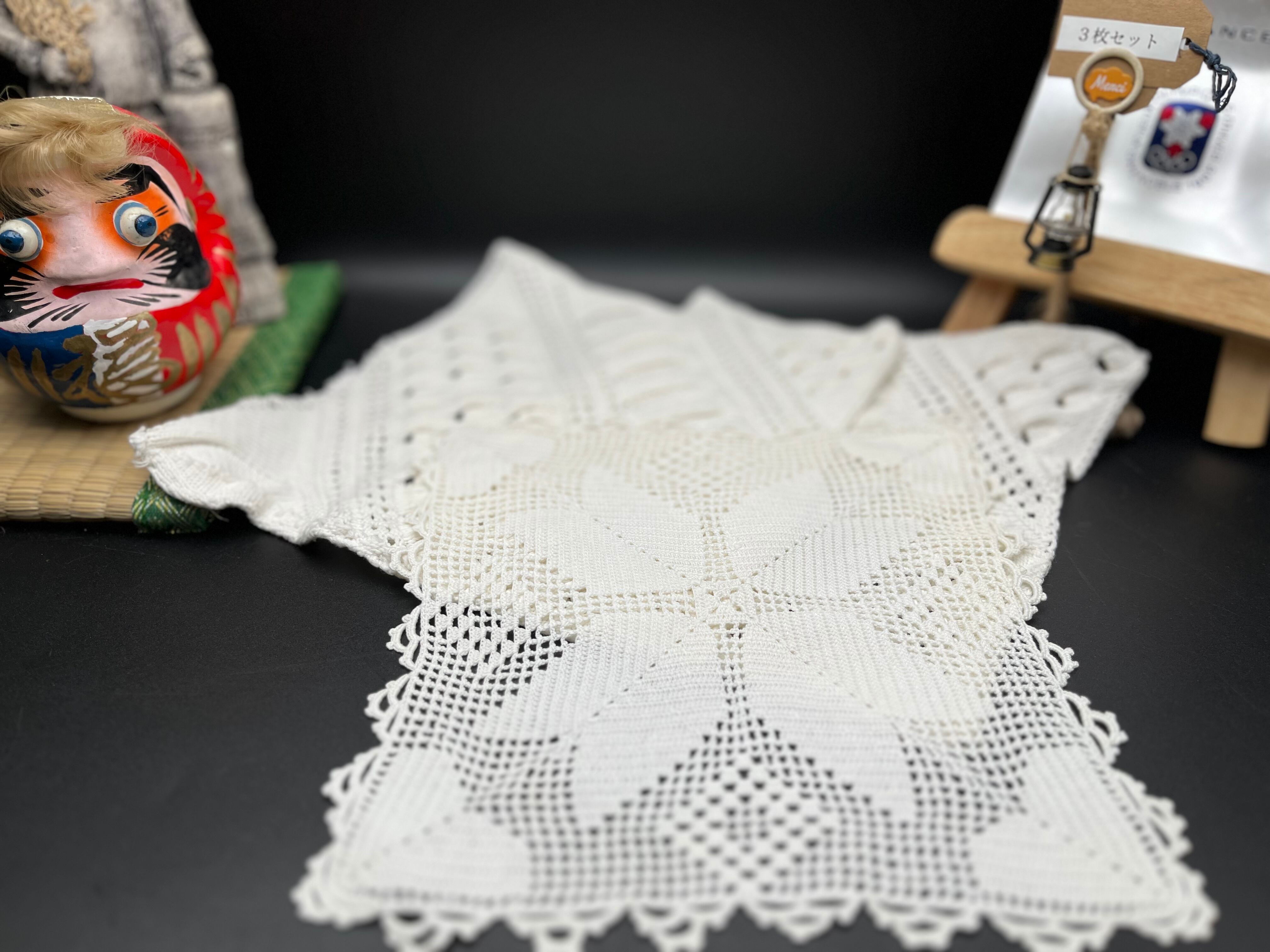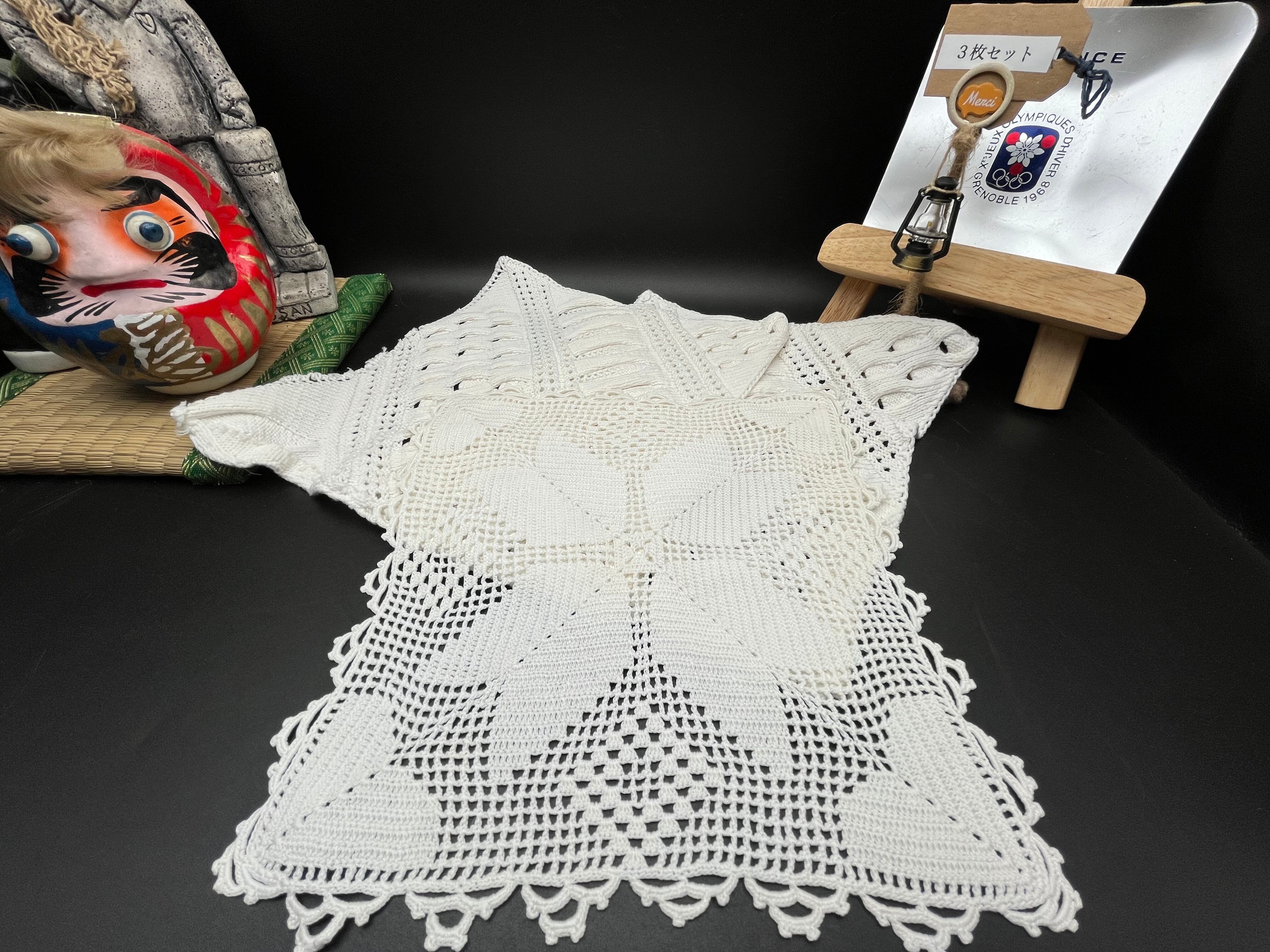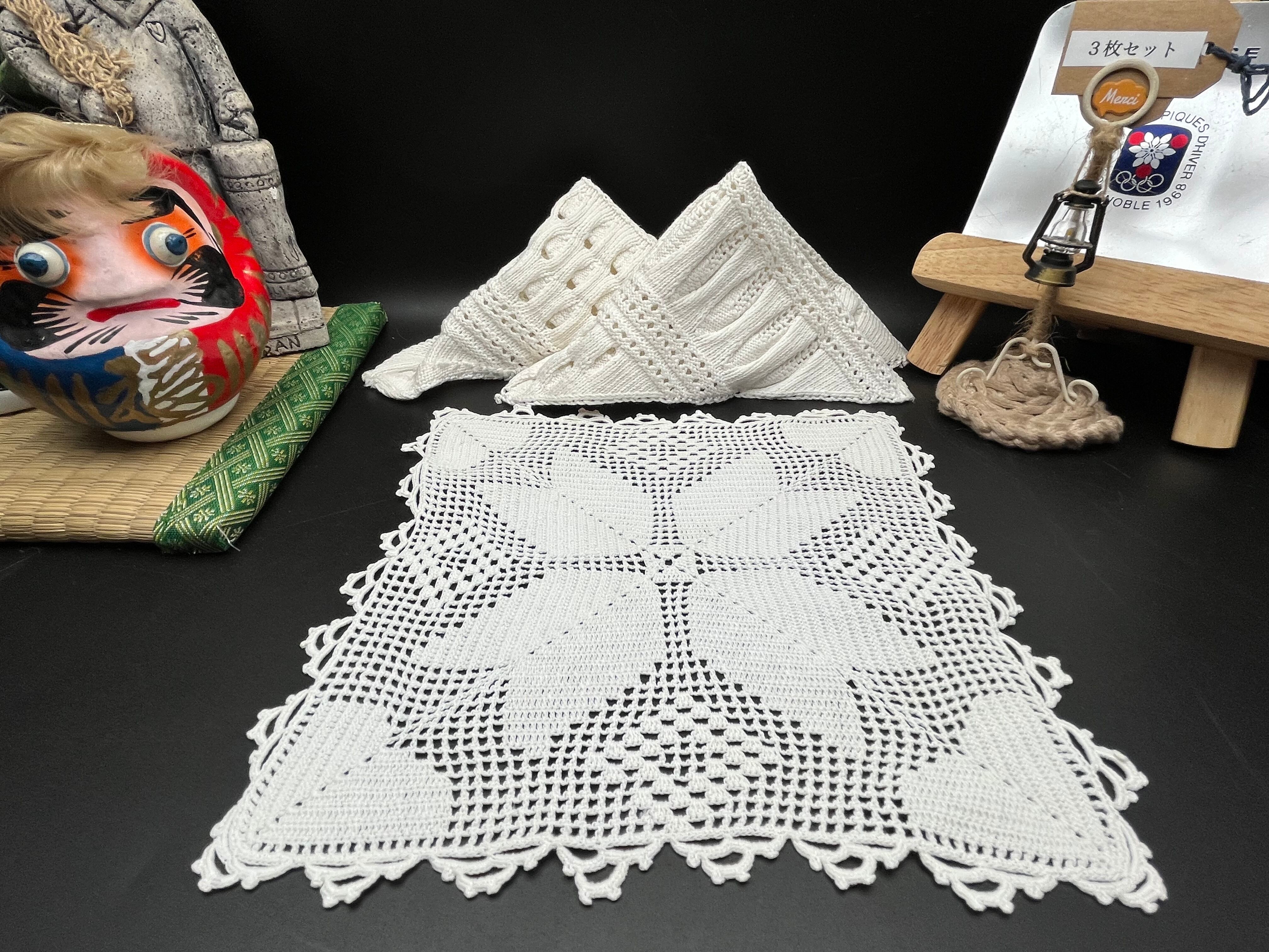 手編みのスクエア型クロシェレース(3枚セット)です。
