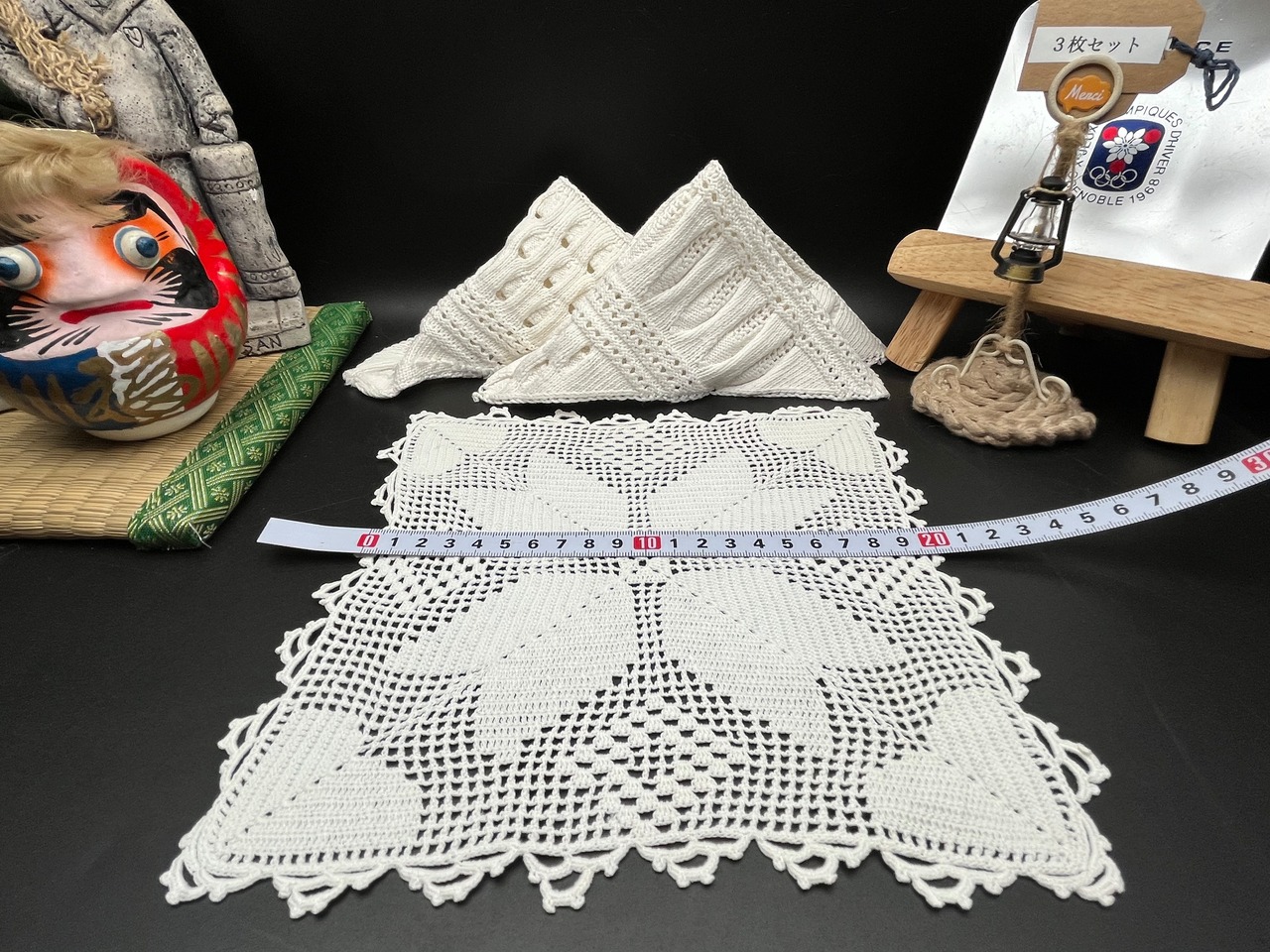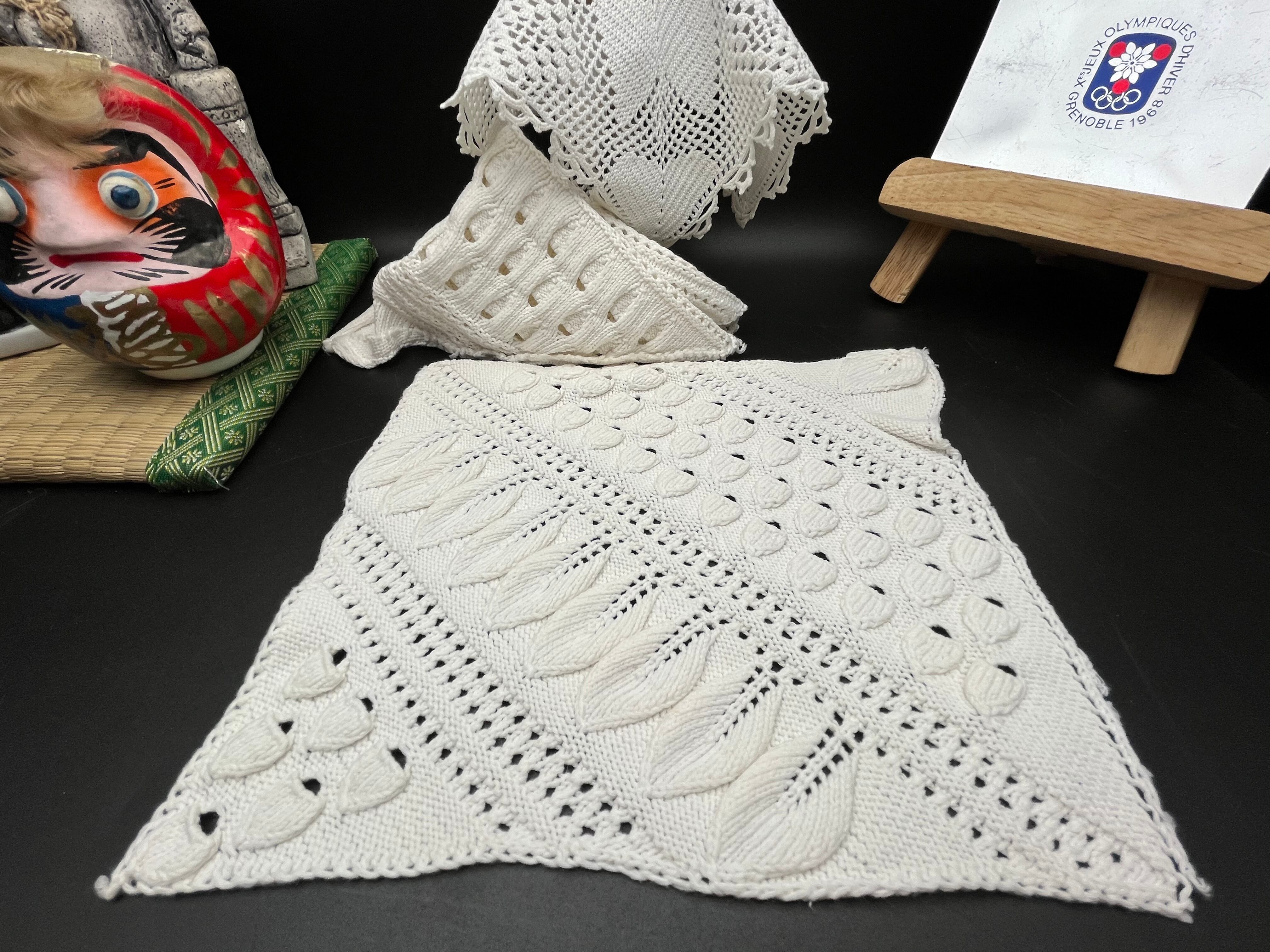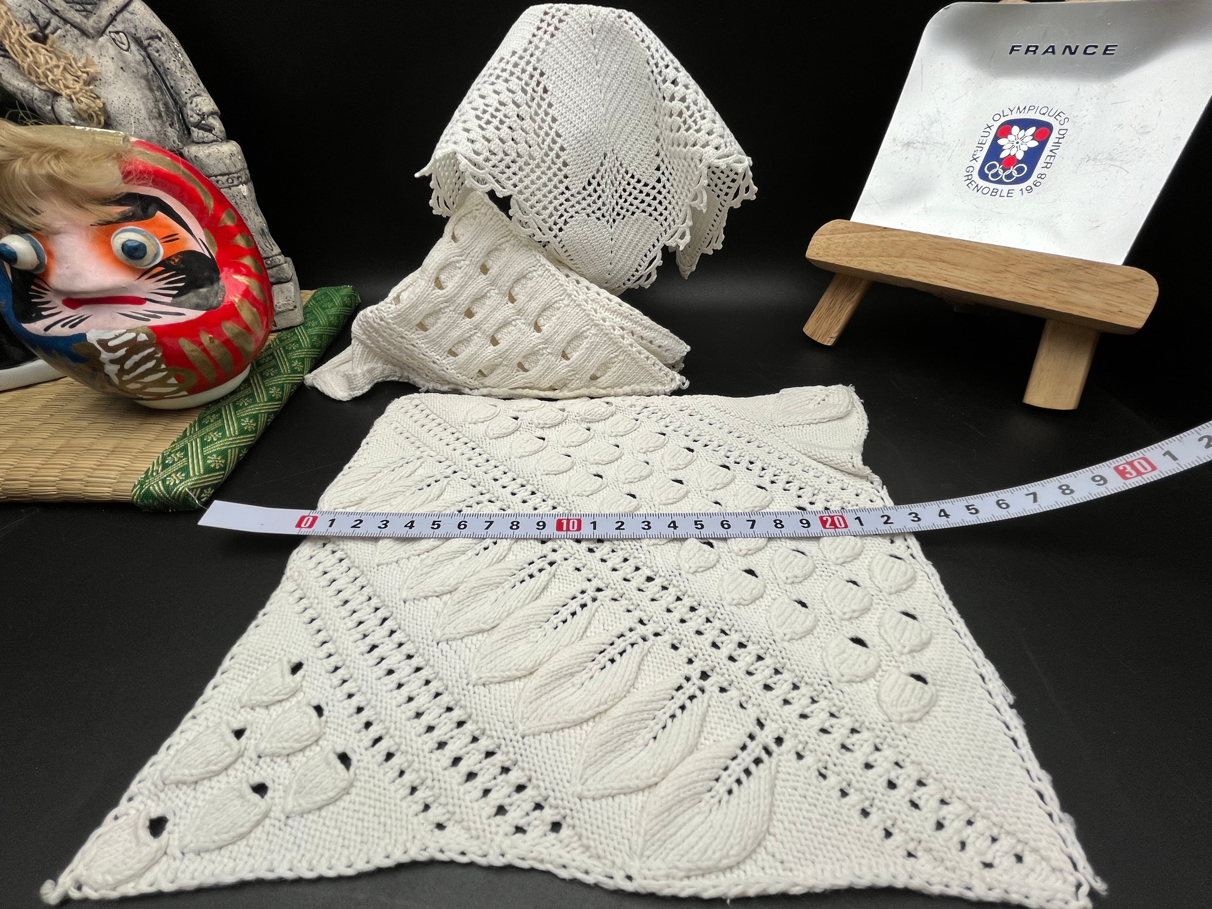 アンティーク手編みクロシェレーススクエア 3枚セット