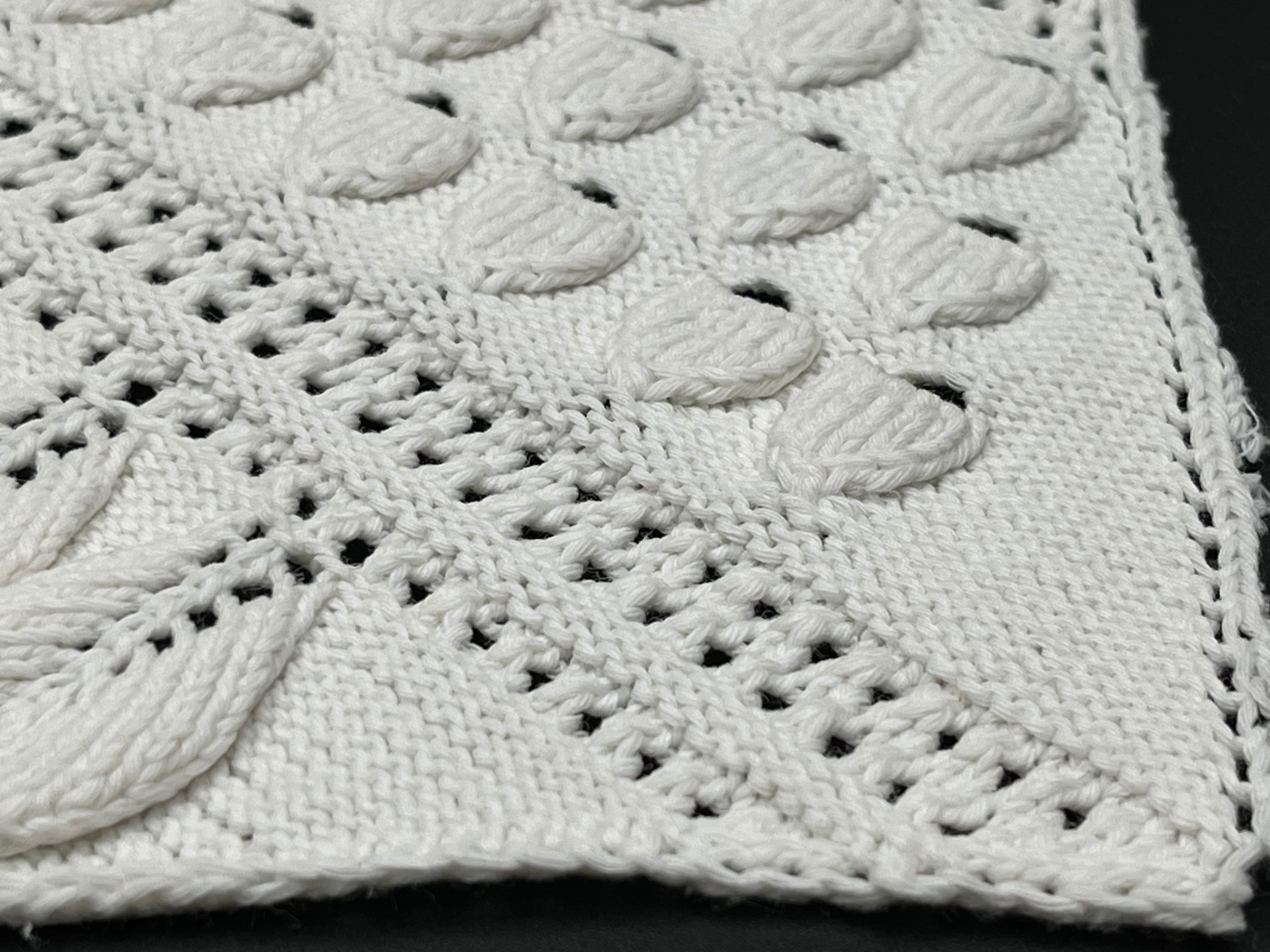 葉模様・花模様が立体的に編まれており、しっかりとした厚みのあるデザインが特徴です。