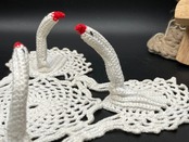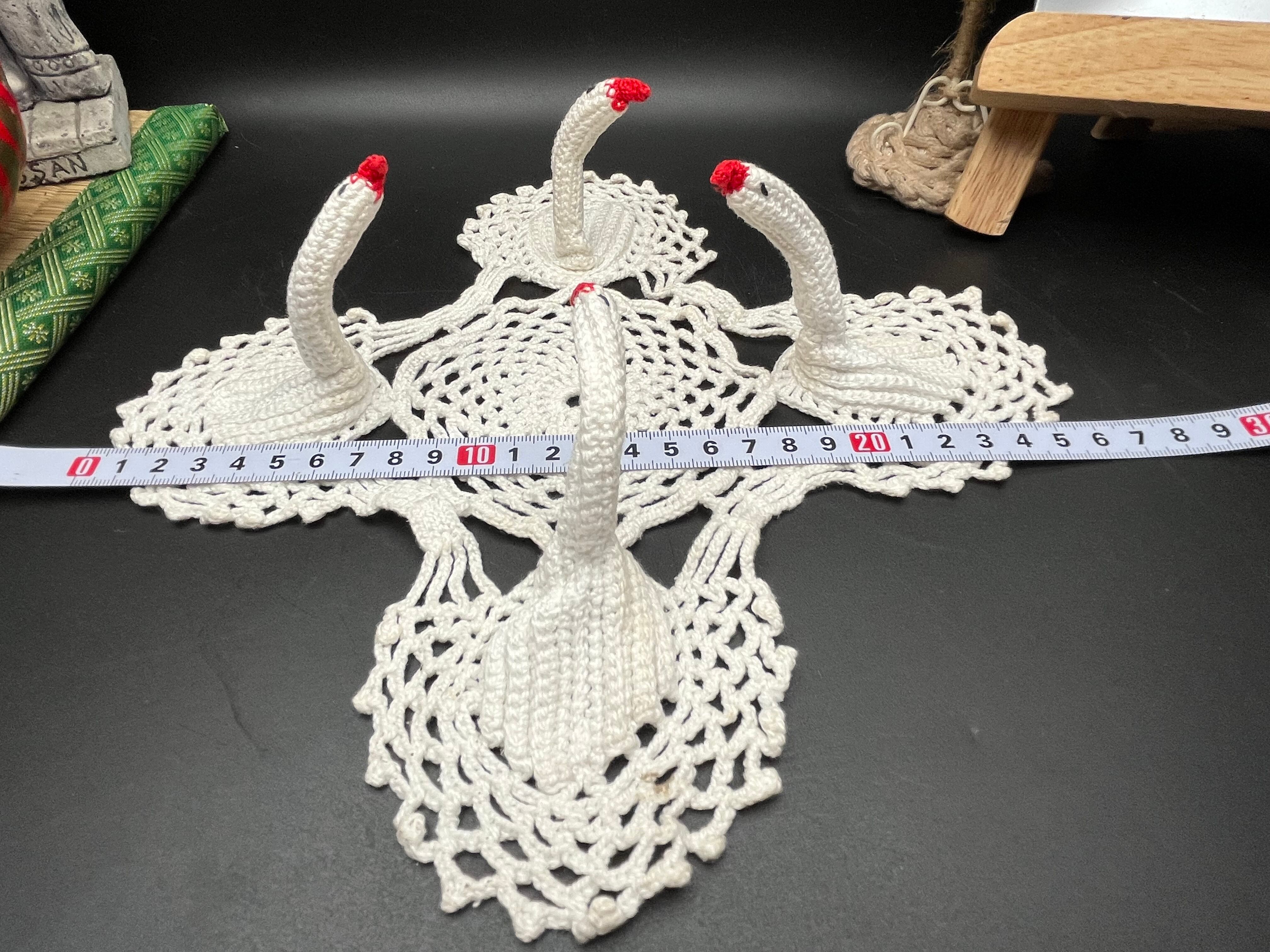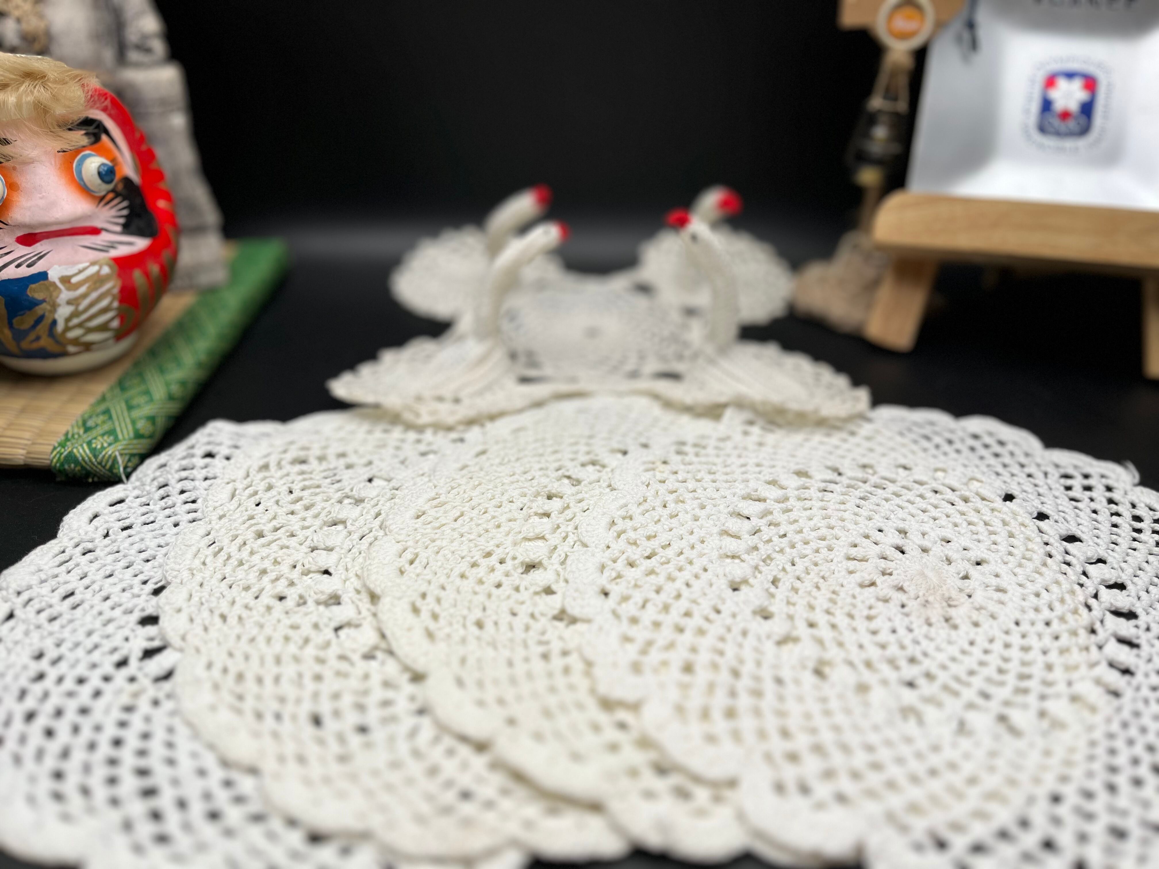 丸型ドイリーと、珍しい 立体の白鳥モチーフレース(4体) が揃った可愛らしいセットです。