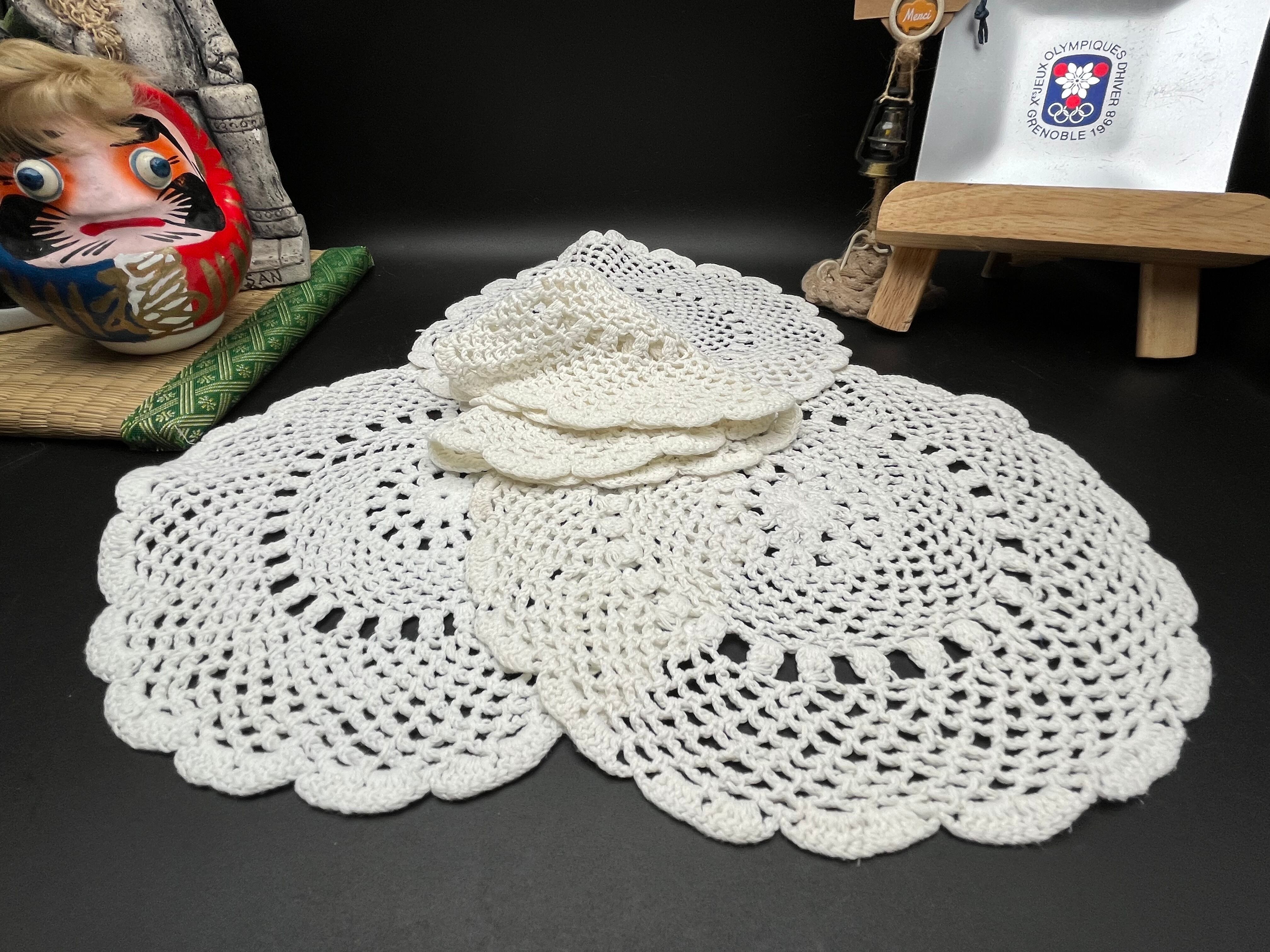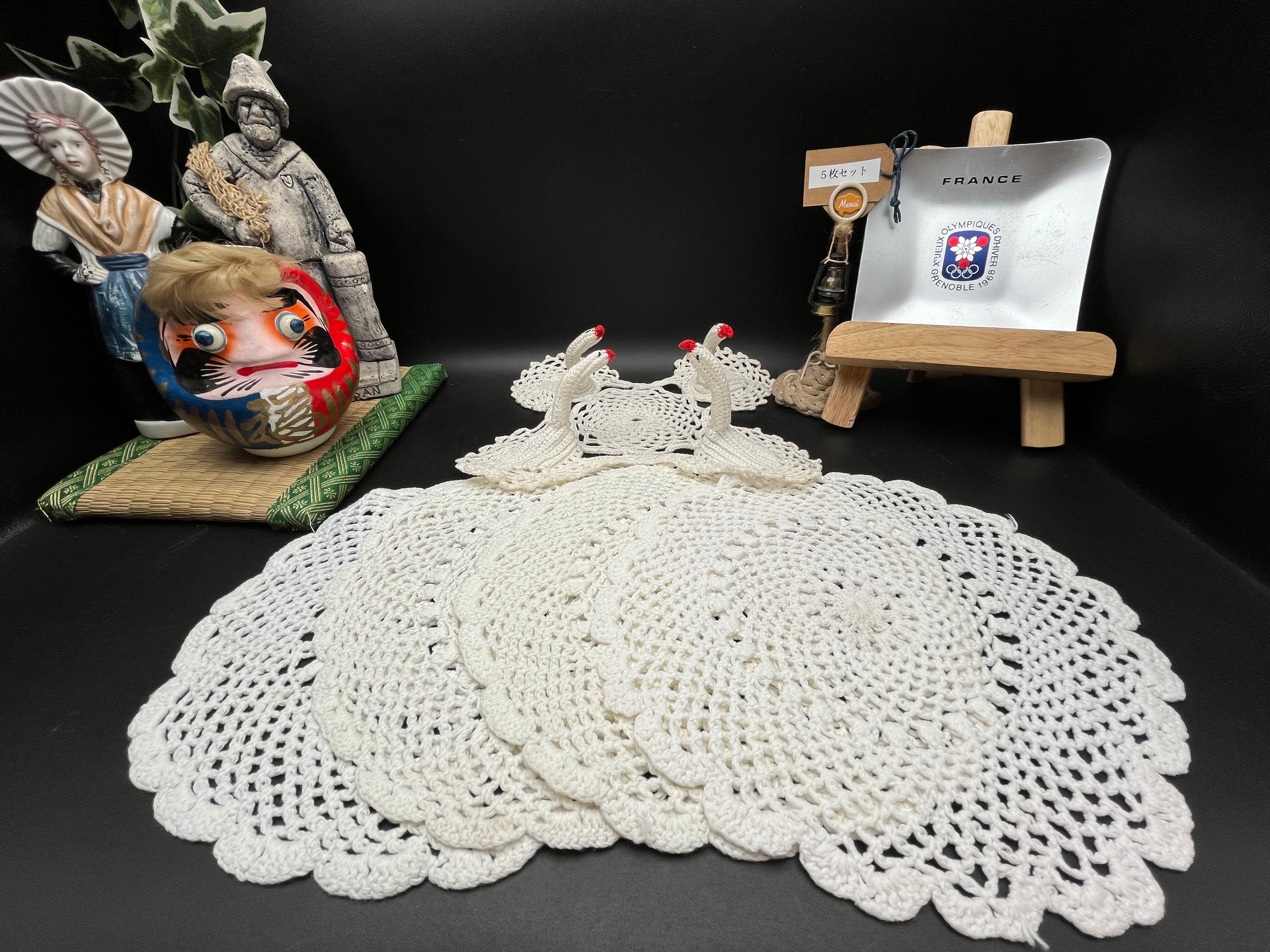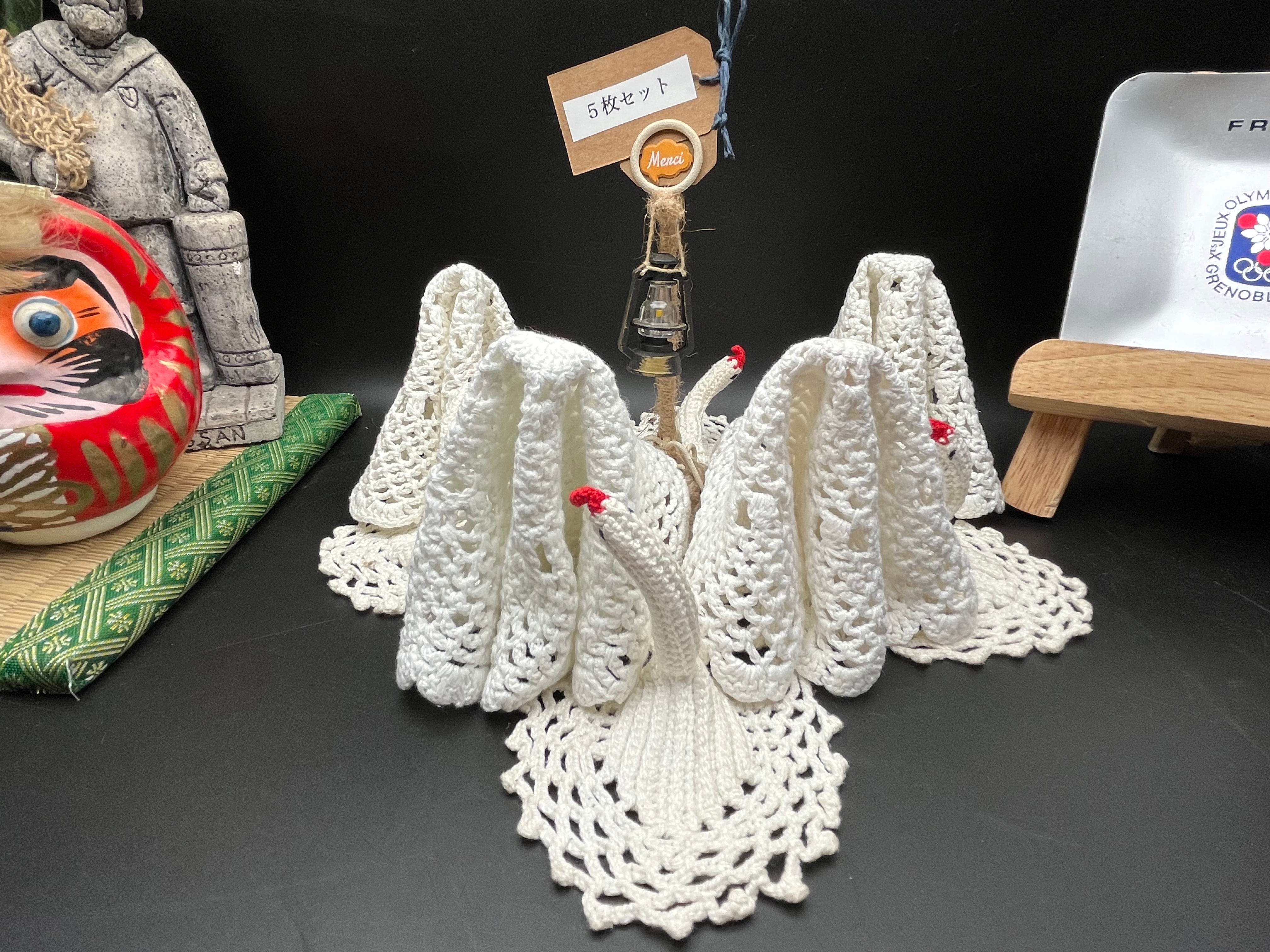 アンティーク手編みクロシェレース 5枚セット・白鳥モチーフ付きドイリーなど