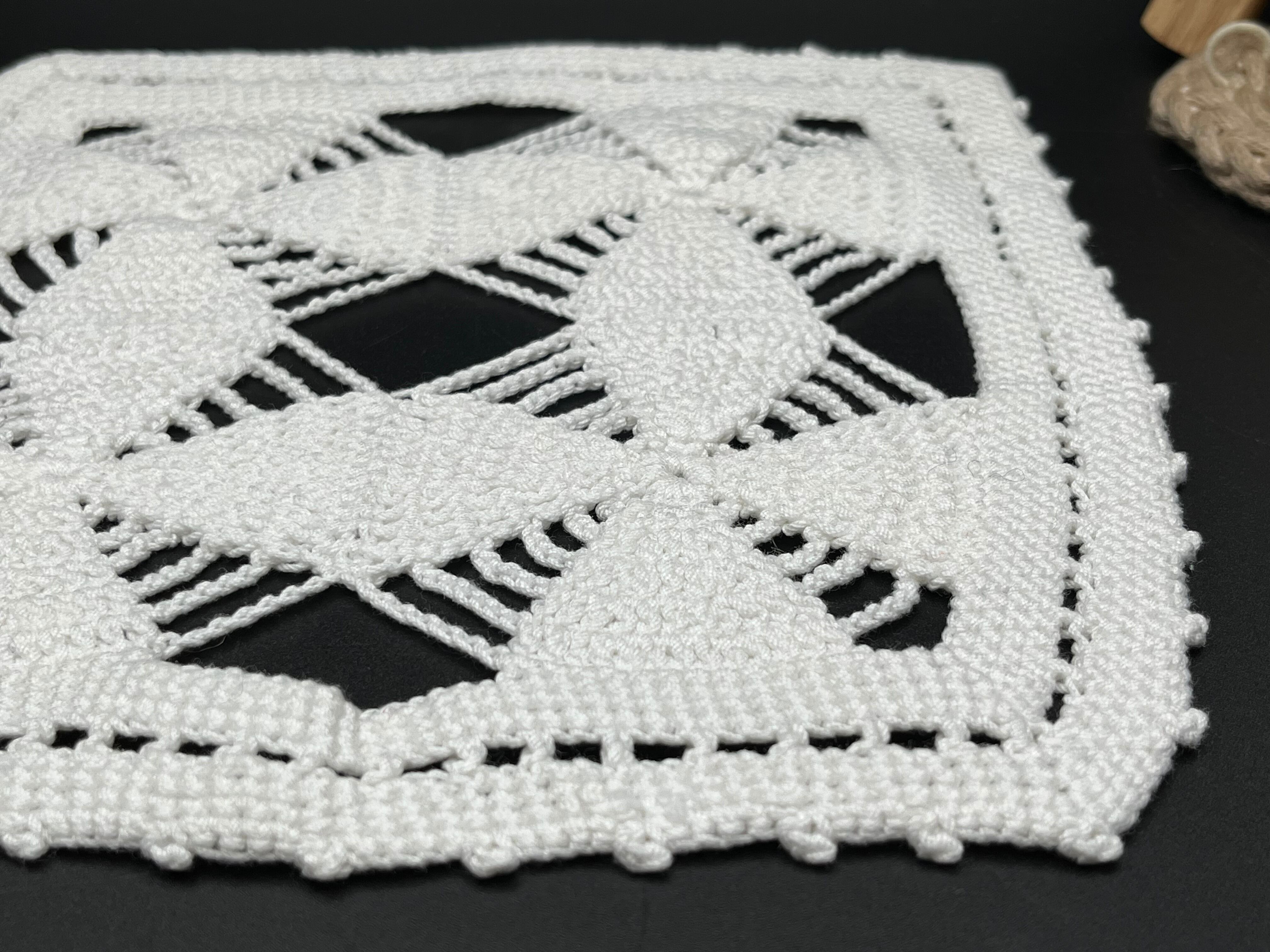 アンティーク手編みクロシェレーススクエアドイリー 3枚セット