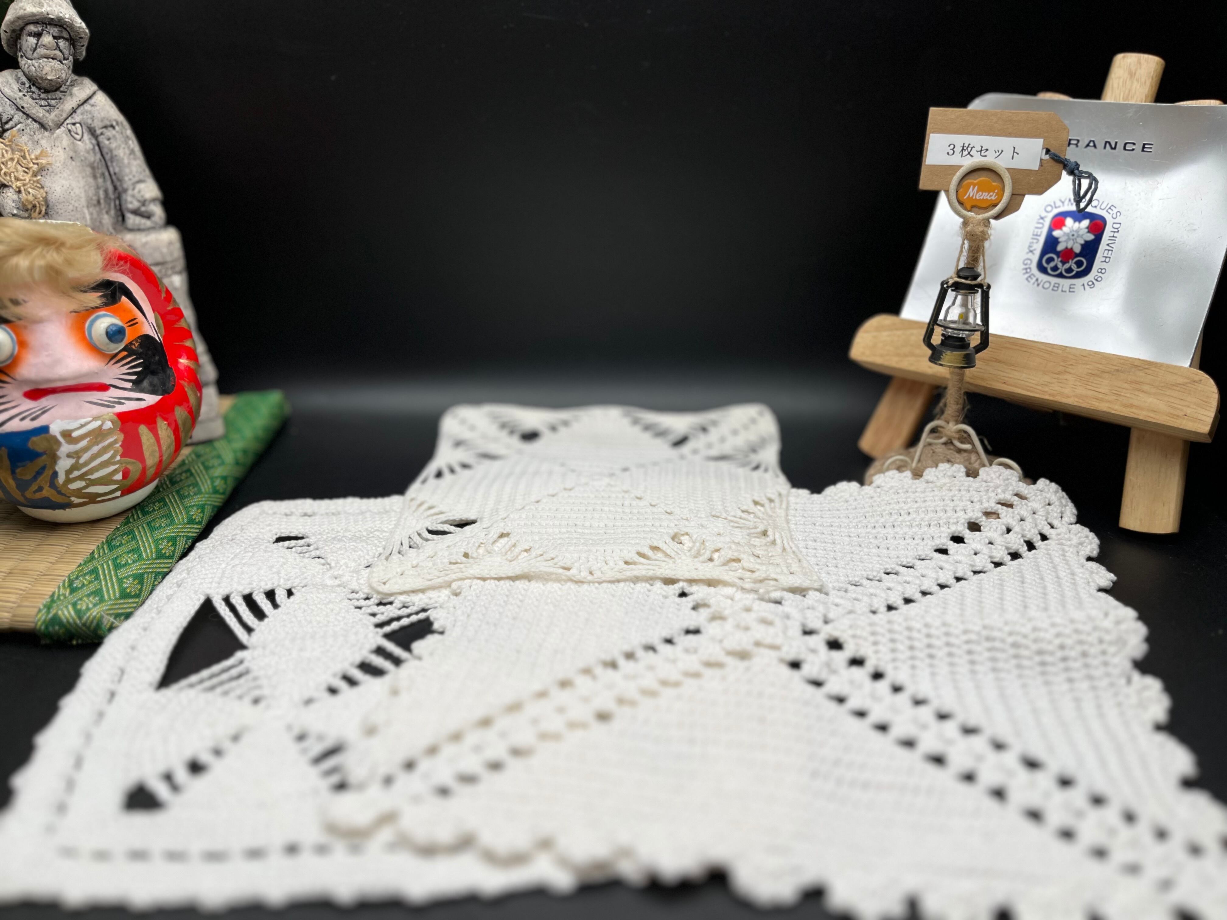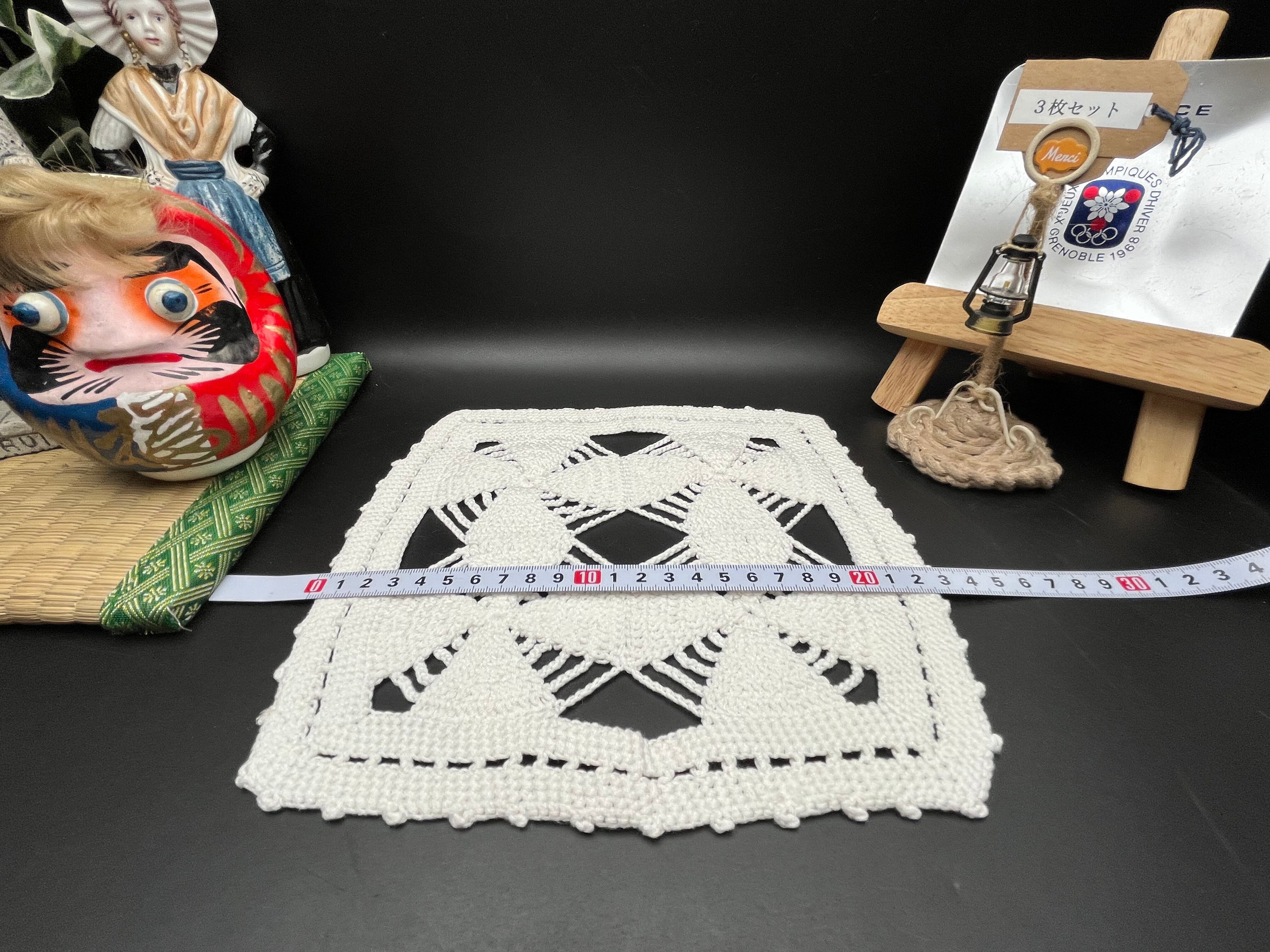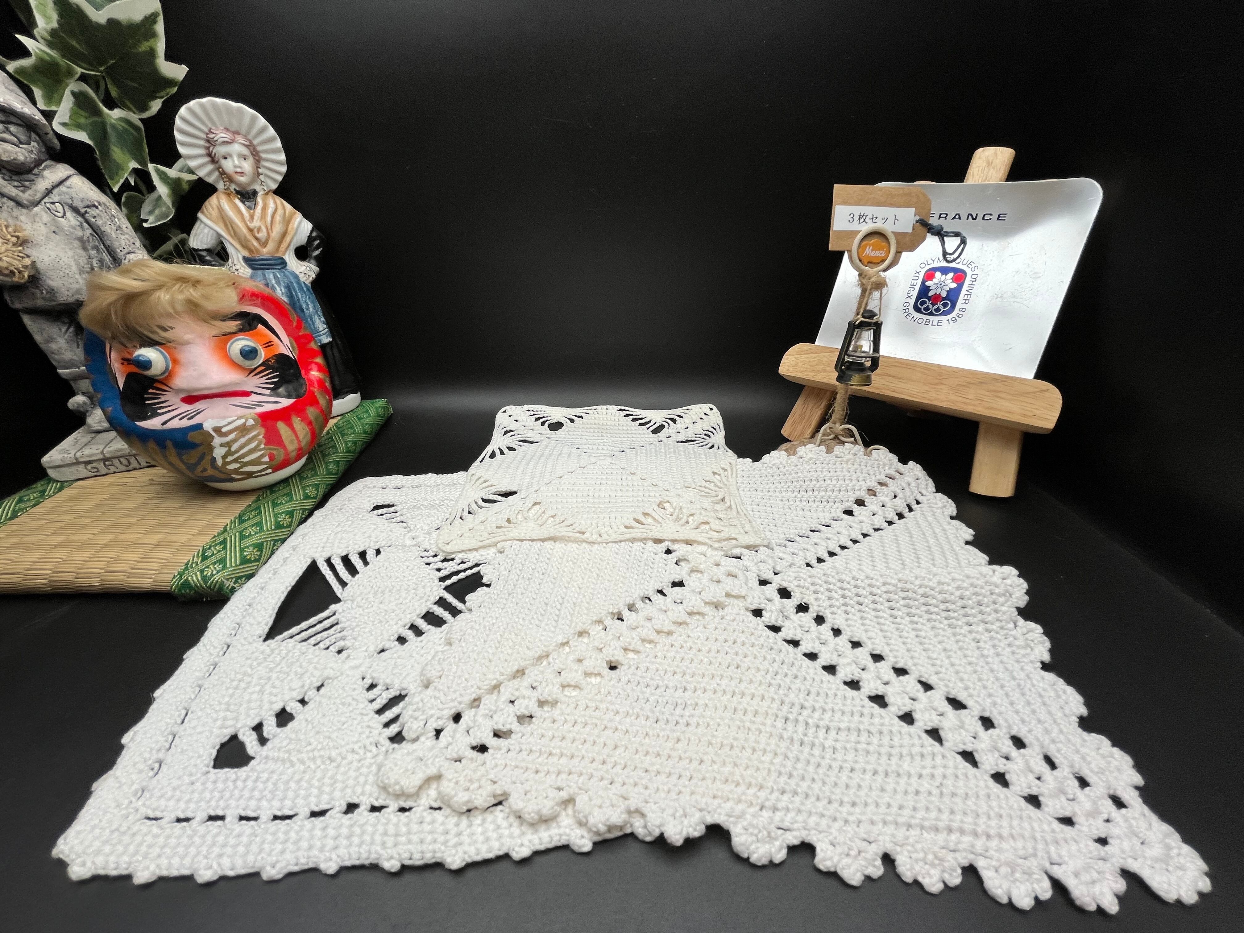 手編みの クロシェレース(かぎ針編み)3枚セット です。