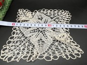 アンティーク手編みクロッシェスクエアレースドイリー 3枚セット