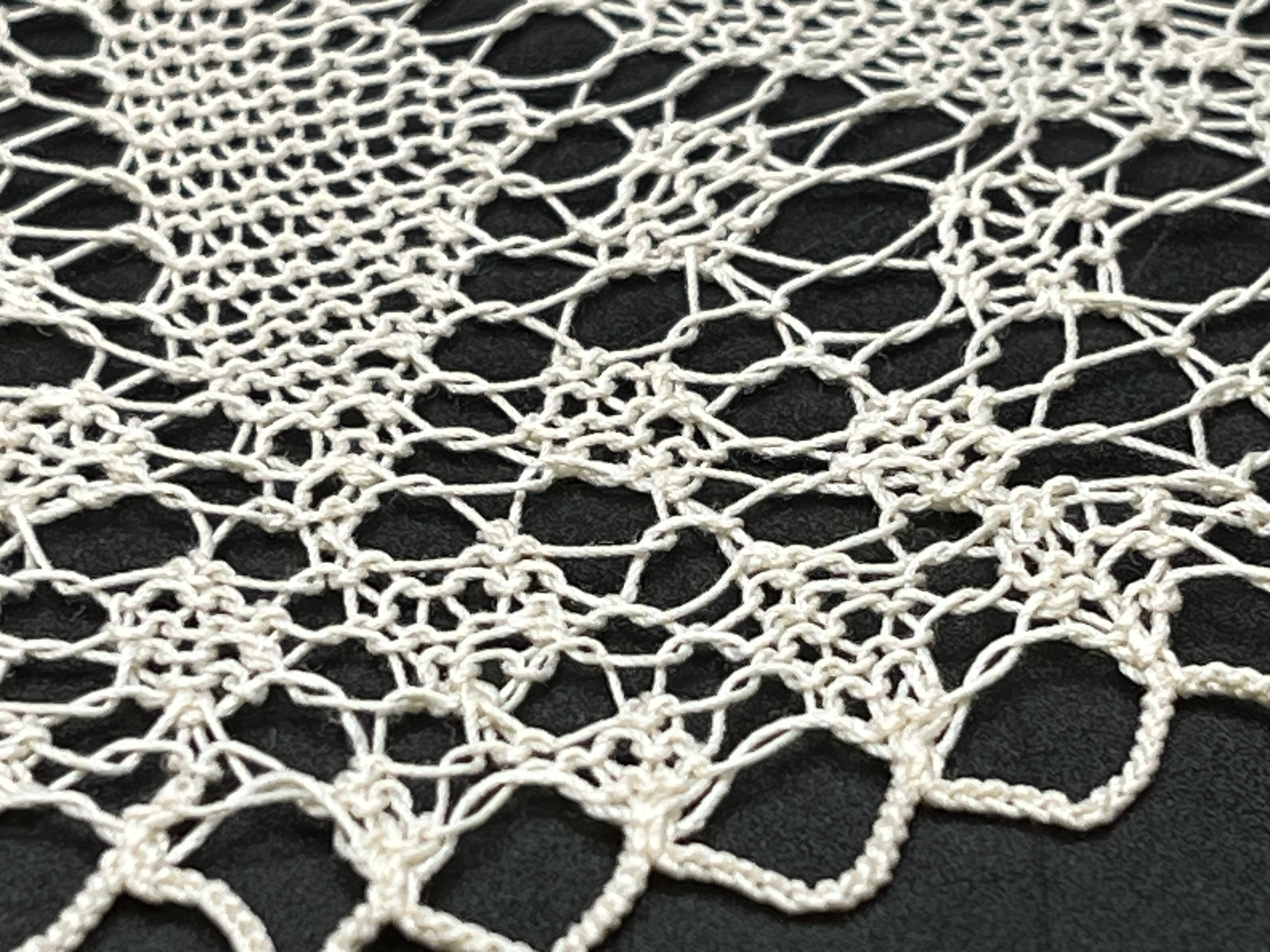 細糸で丁寧に編まれた放射状の葉模様が美しい一枚。