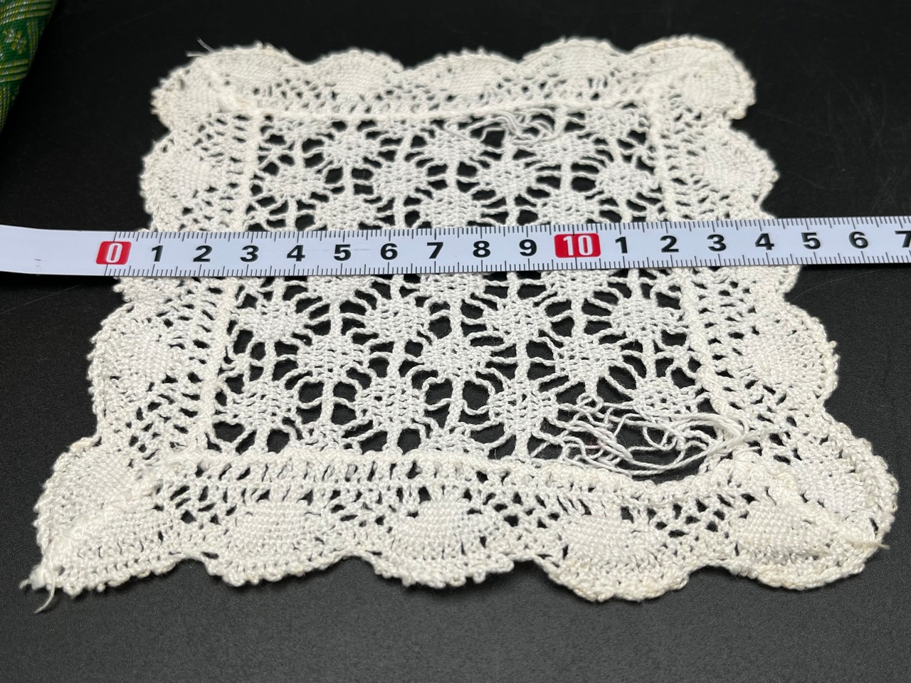 ② スクエアレース(花モチーフ×スカラップ縁) サイズ:約15cm