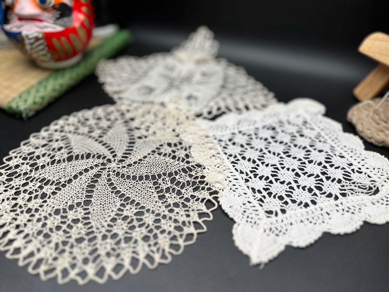 それぞれ編み方やデザインが異なり、敷くだけで小物や空間の雰囲気をやさしく引き立ててくれます。