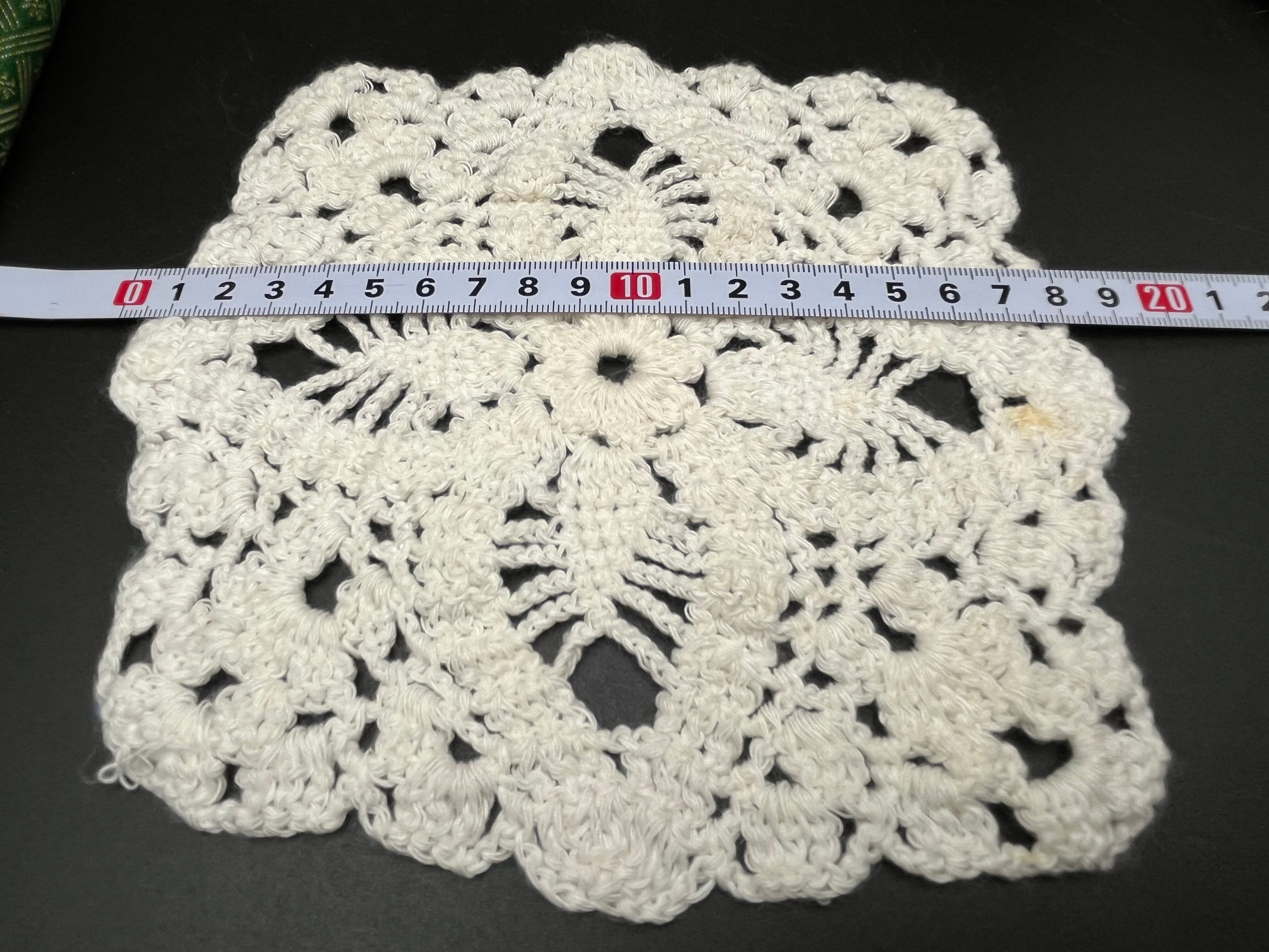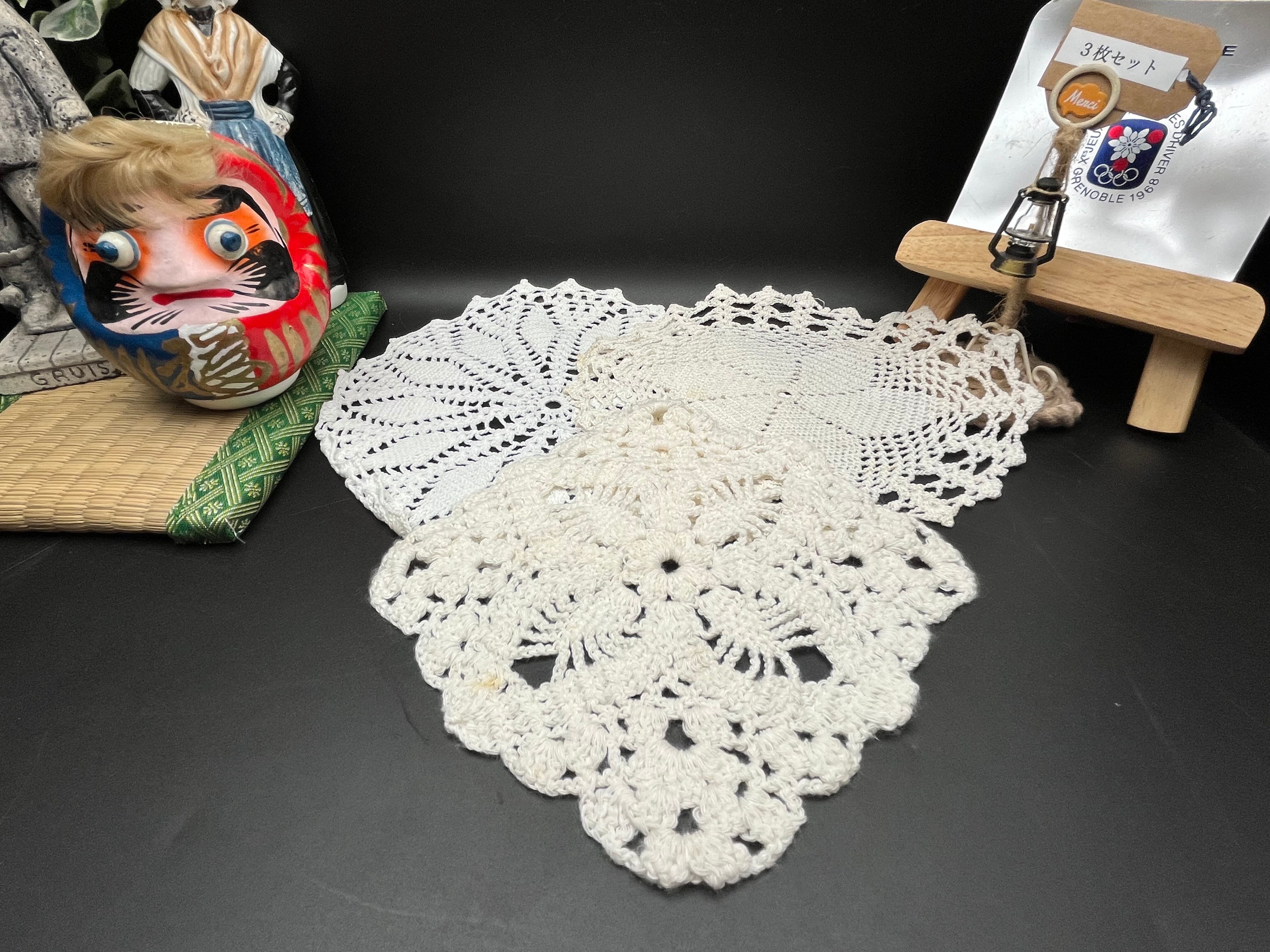 アンティーク手編みクロッシェレーススクエア&ラウンドドイリー 3枚セット