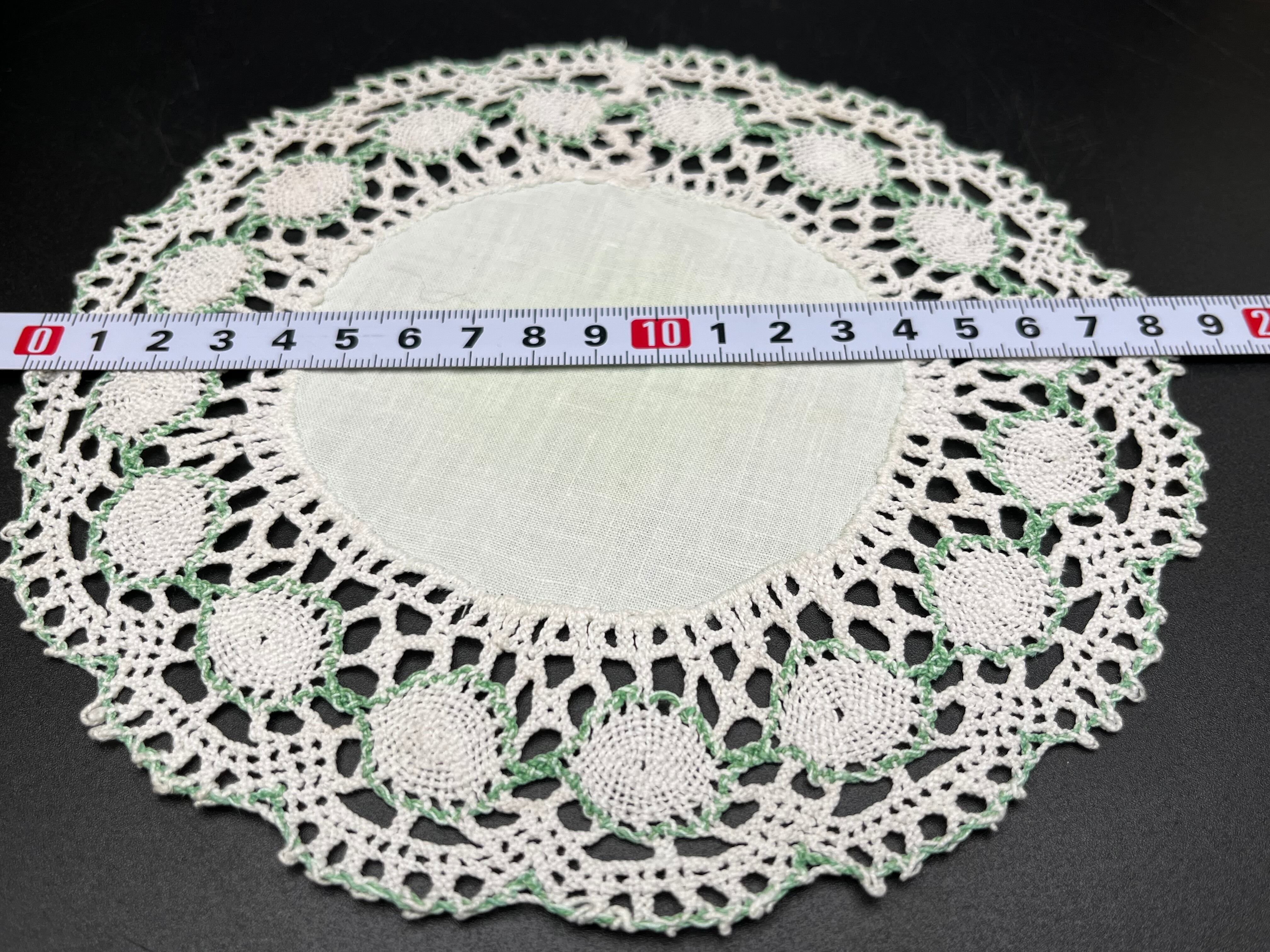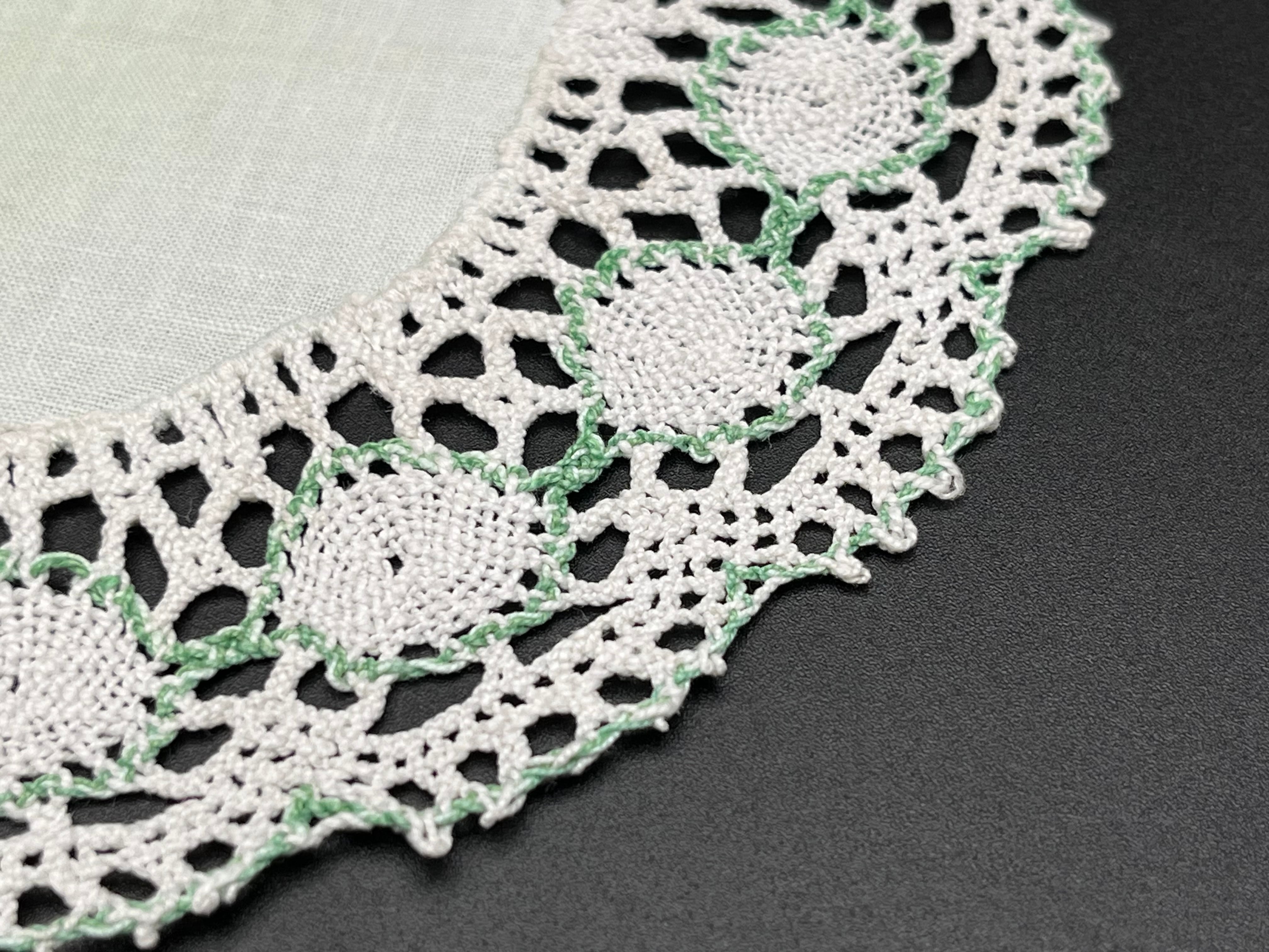 2. リネン×クロッシェレース(白×グリーン) 直径:約19~20cm