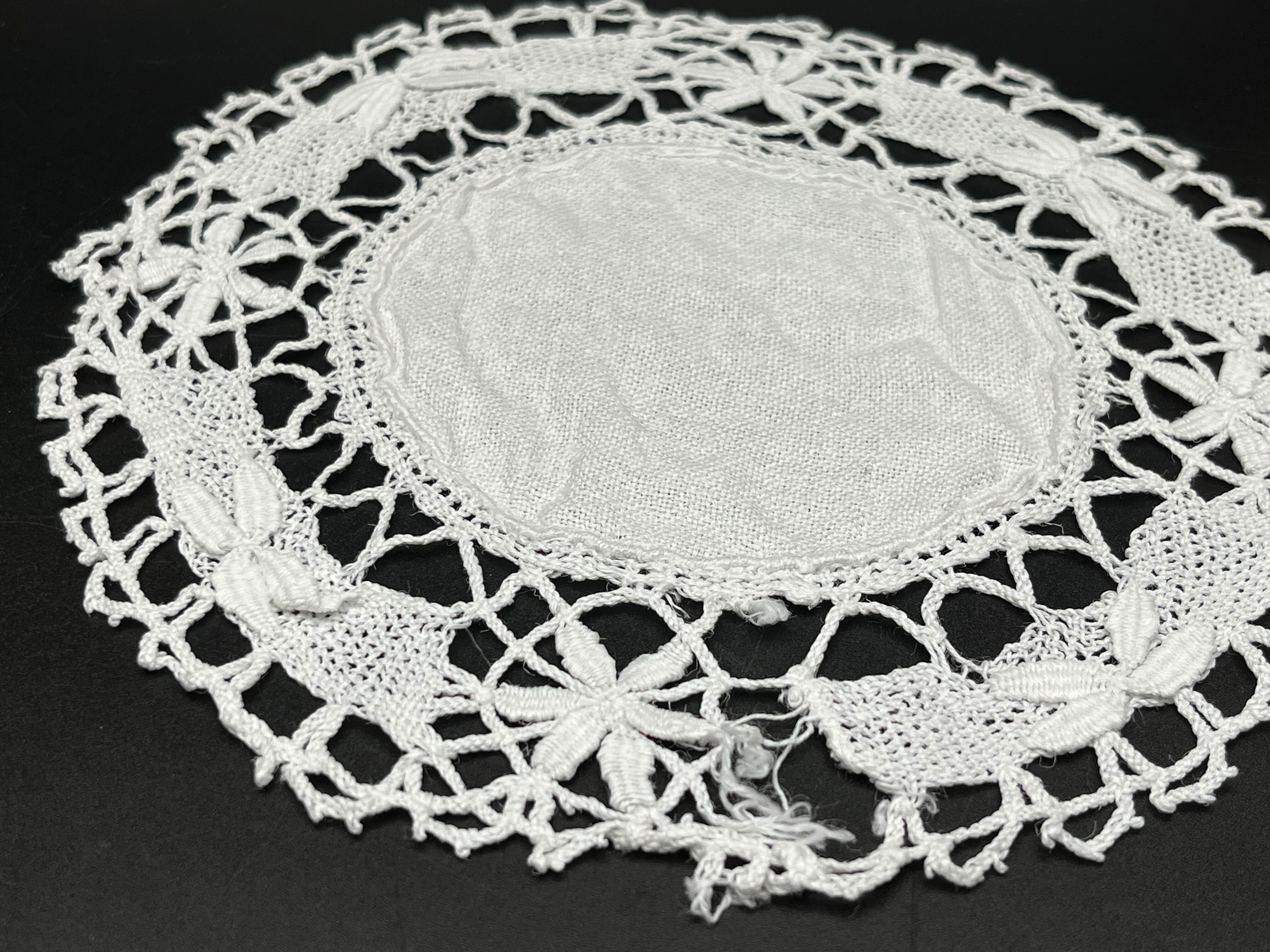 1. リネン×クロッシェレース(白) 直径:約19~20cm