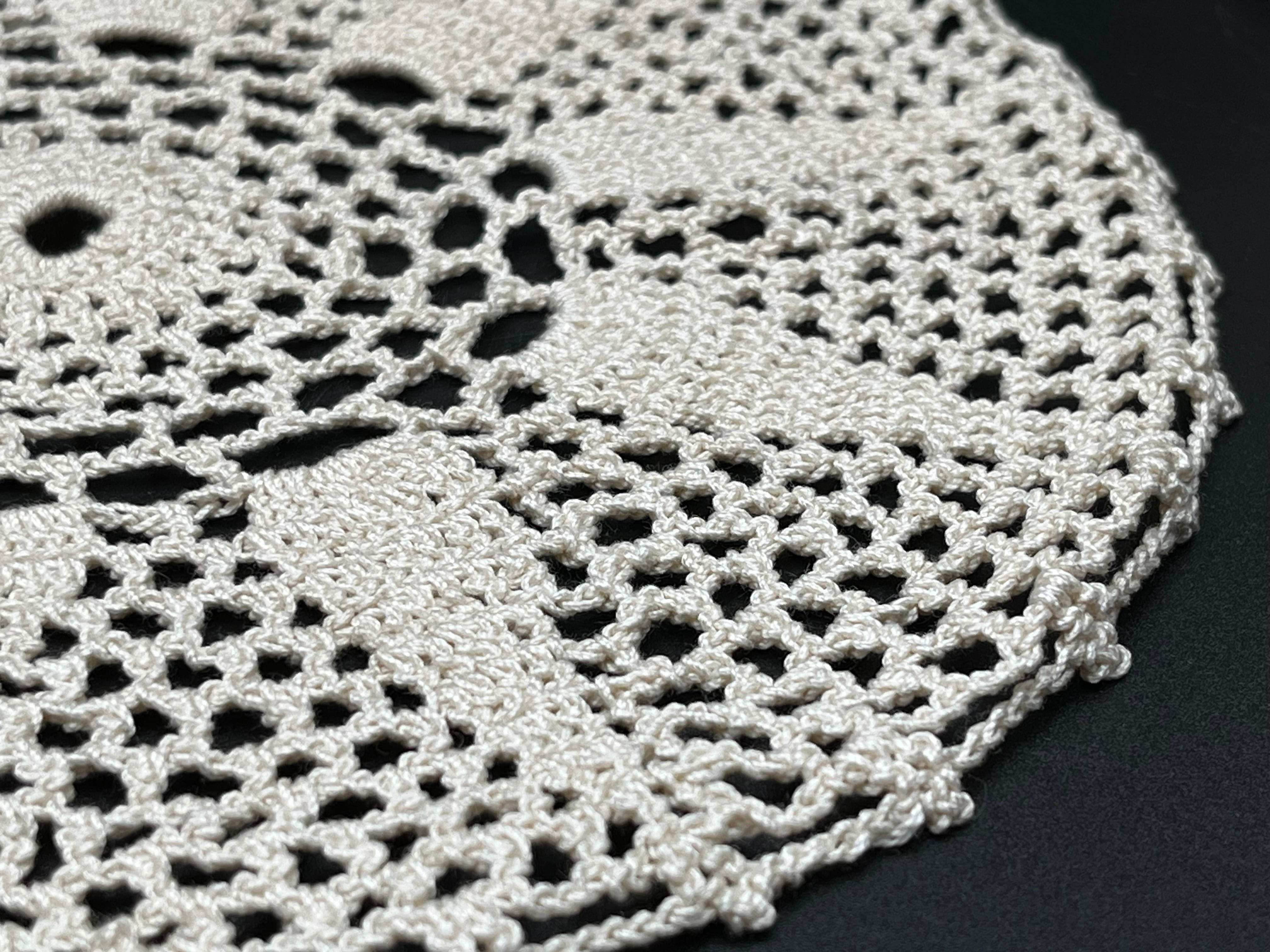 花びらのようなモチーフがぐるりと並ぶ、可憐な印象のドイリー。