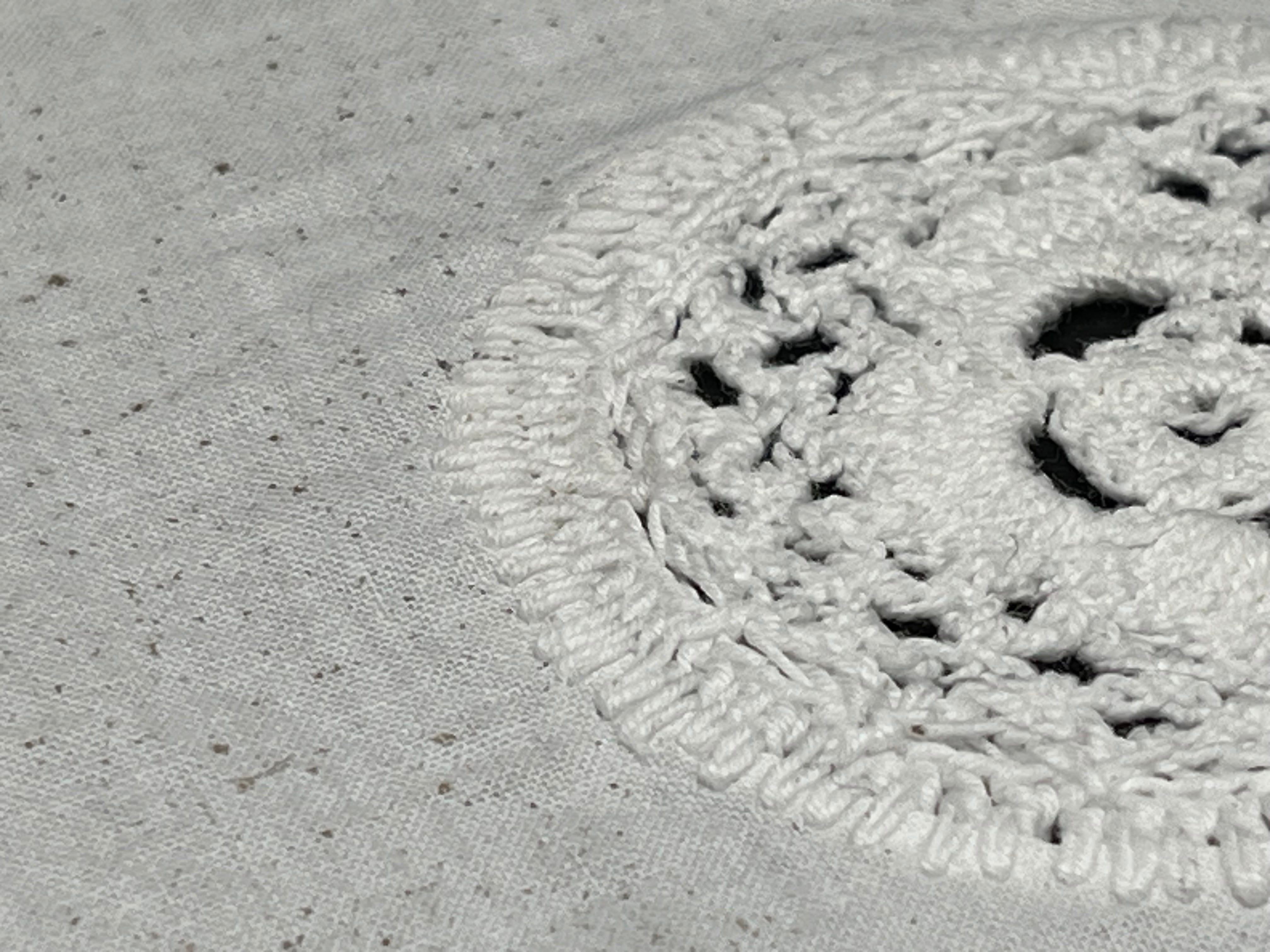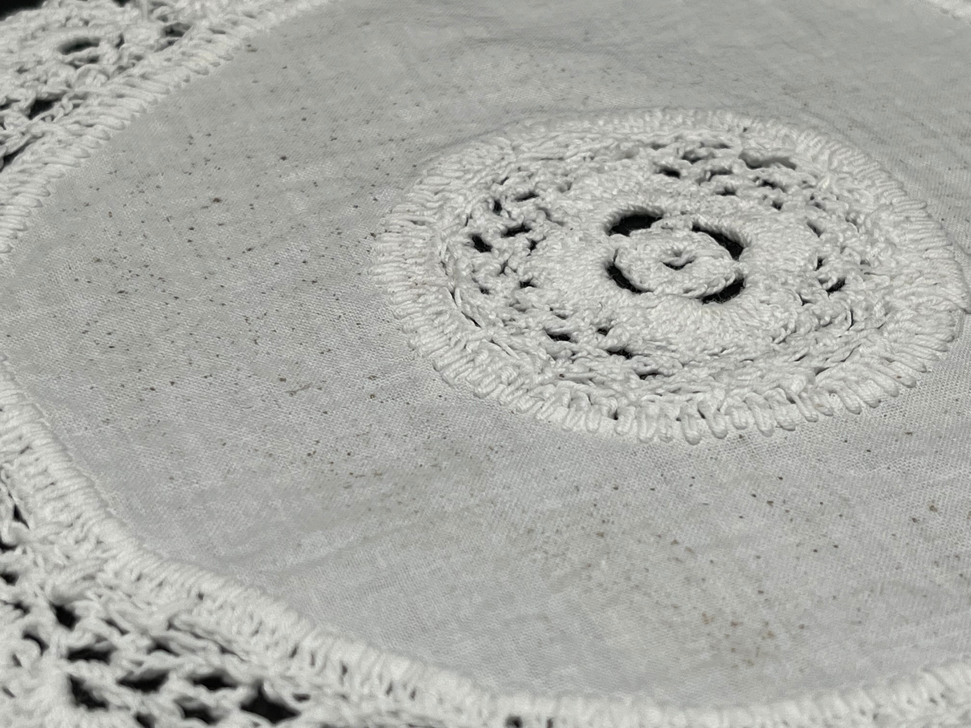 中央はさらりとした布地、その周りをクロッシェレースがぐるりと囲んだ1枚。
