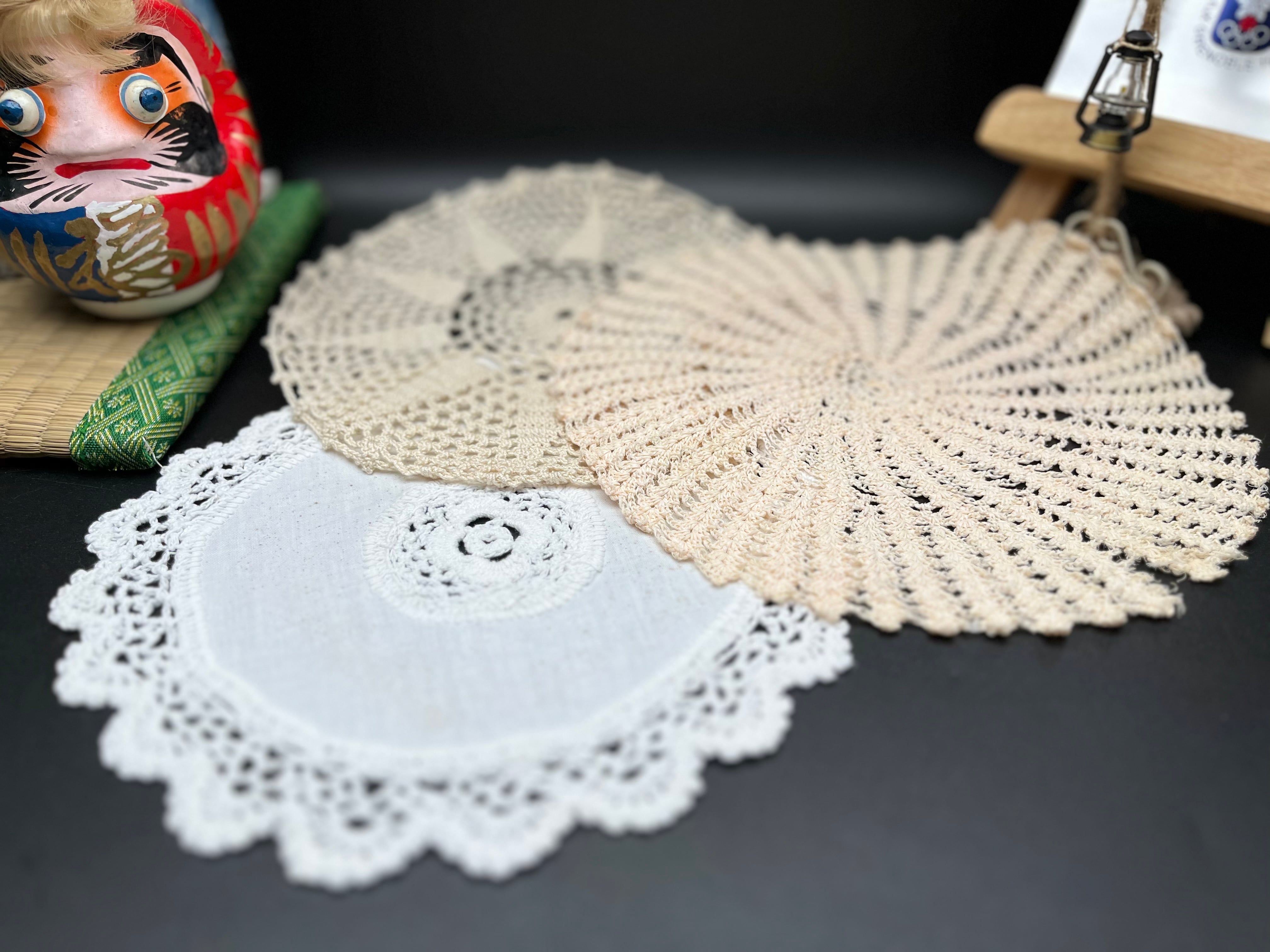 アンティーク手編みクロッシェレースドイリー 3枚セット