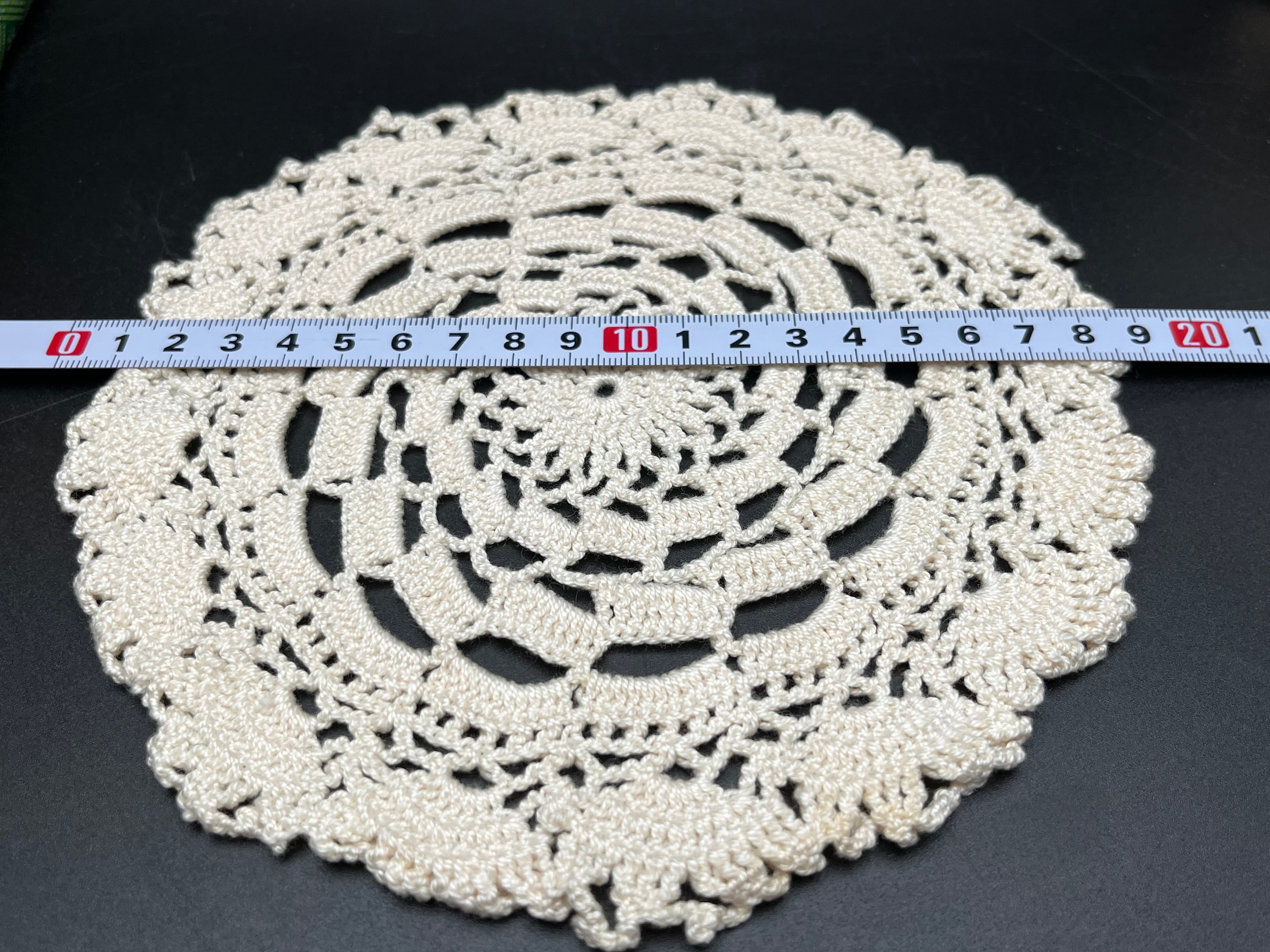• 生成りドイリーはビンテージ特有のわずかな糸の毛羽立ちあり。