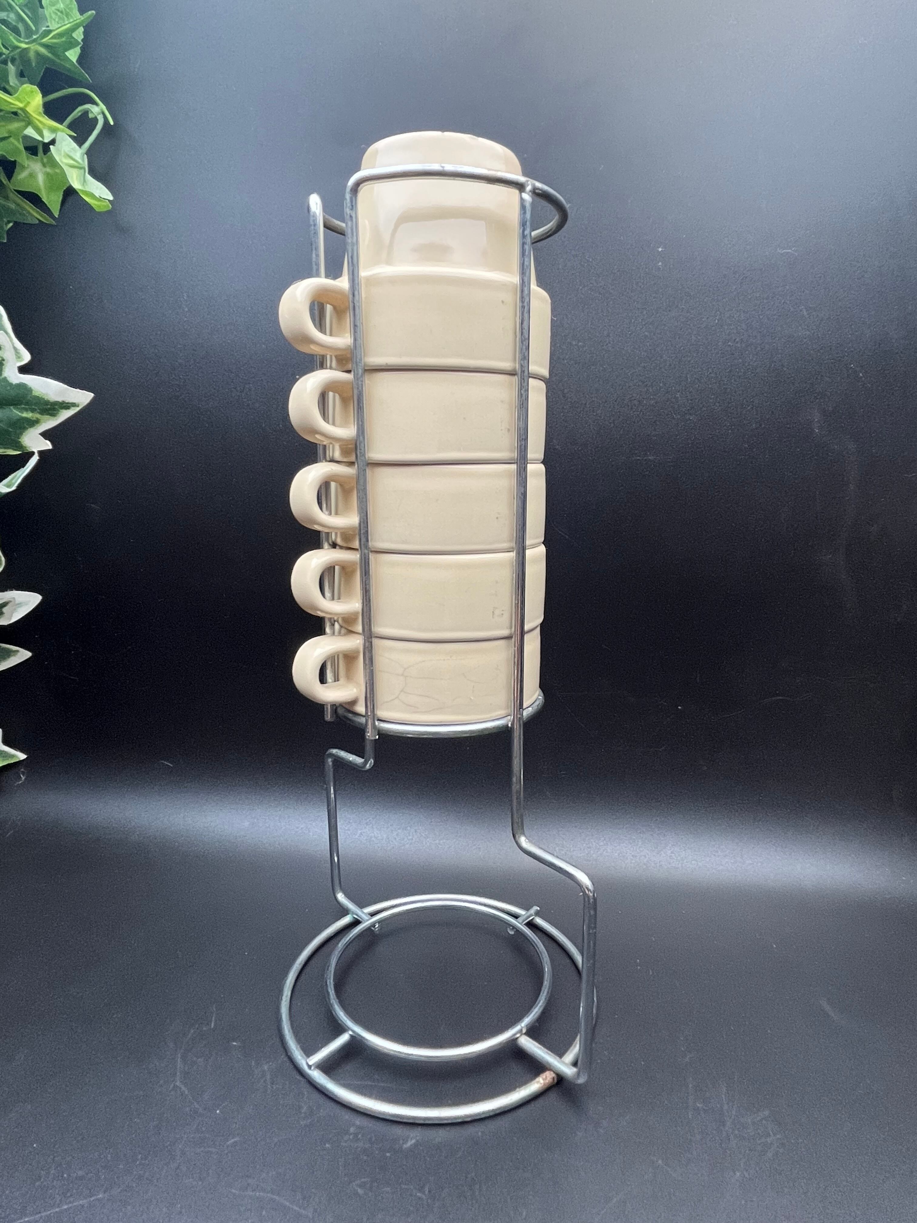 西洋ヴィンテージ スタッキングカップ 5客セット メタルスタンド付