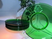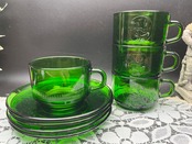 西洋ヴィンテージ エンボス紋章入り グリーンガラスカップ&ソーサー 4客セット