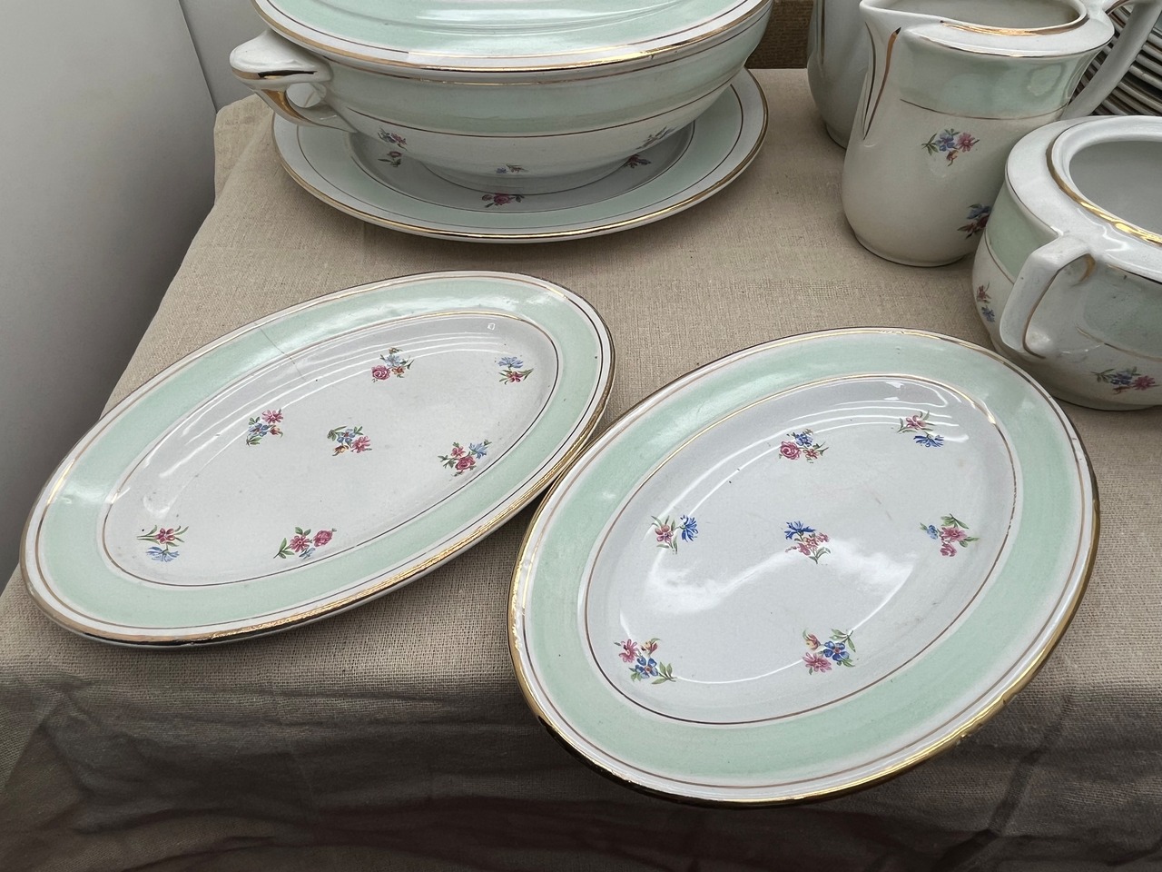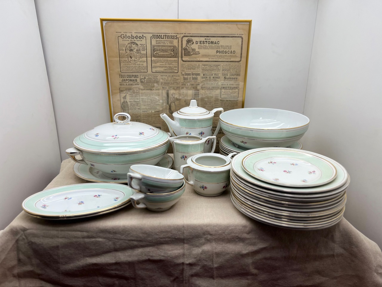 ティータイムからディナーまで対応できるフルセットであり、来客用、アンティークコレクション、または店舗のディスプレイにも最適です。