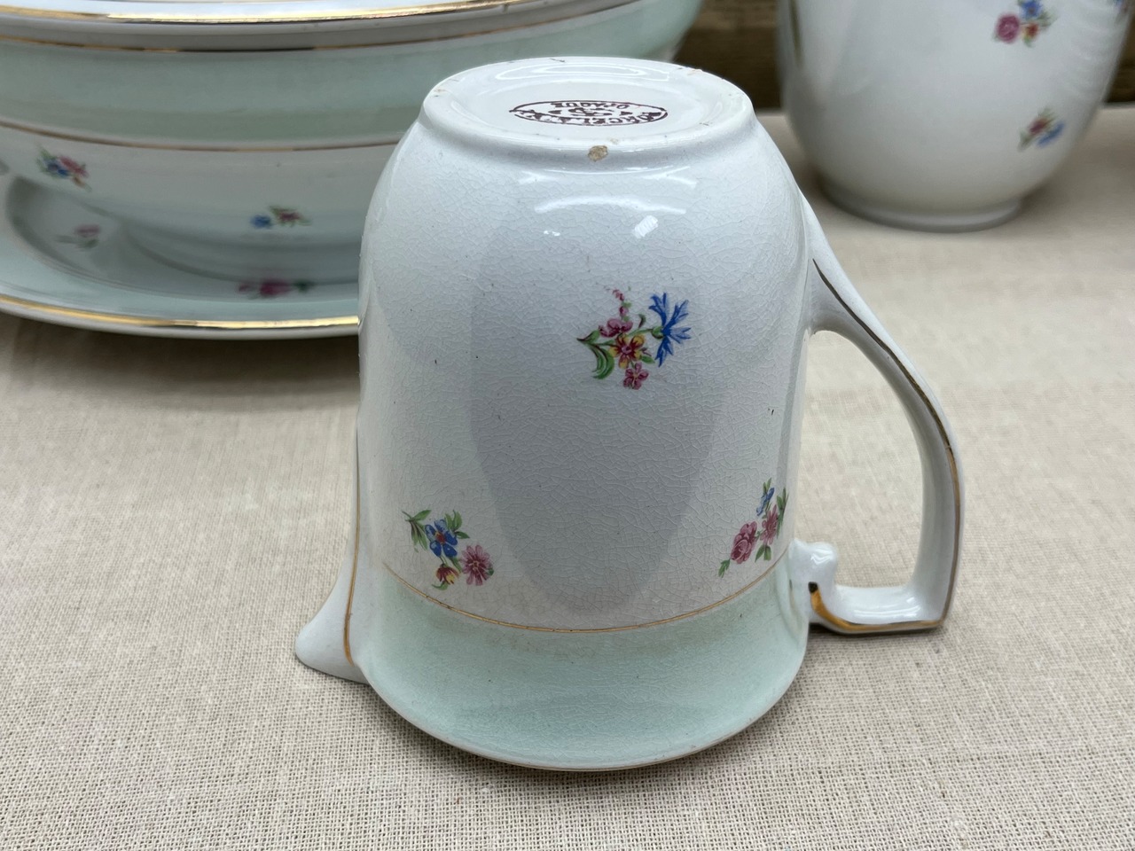 PORCELAINE OPAQUE は19世紀末~20世紀前半にかけてフランス各地で製造され、磁器と陶器の中間的な質感を持つ“オパーク磁器”の代表格です。日常使いに適した丈夫さを持ちながら、優美なデザインが特徴で、現在ではフランス・アンティーク市場でも人気の高い食器群です。